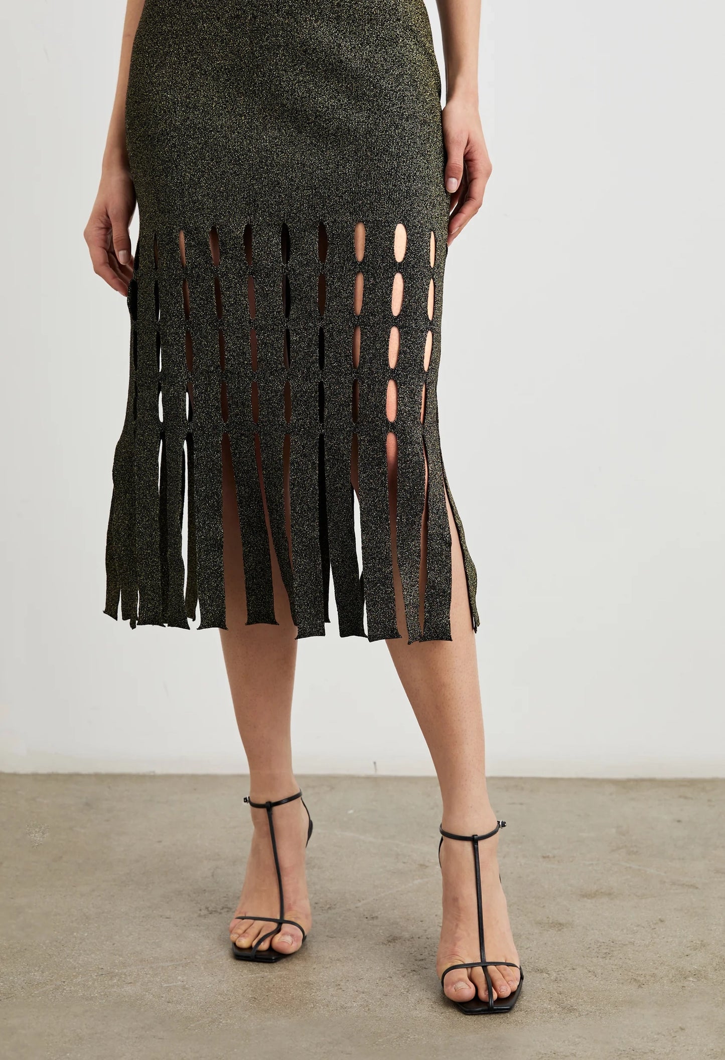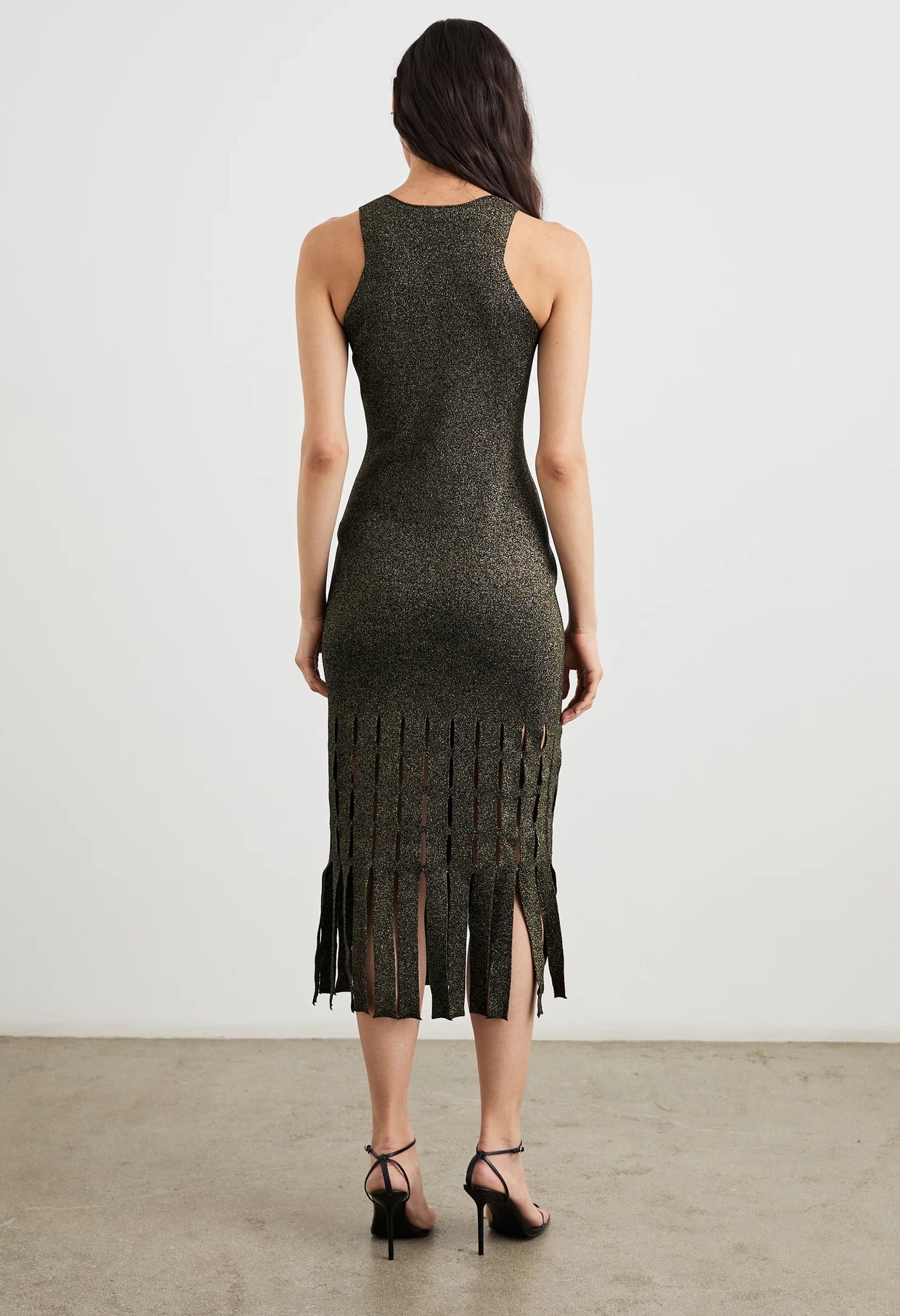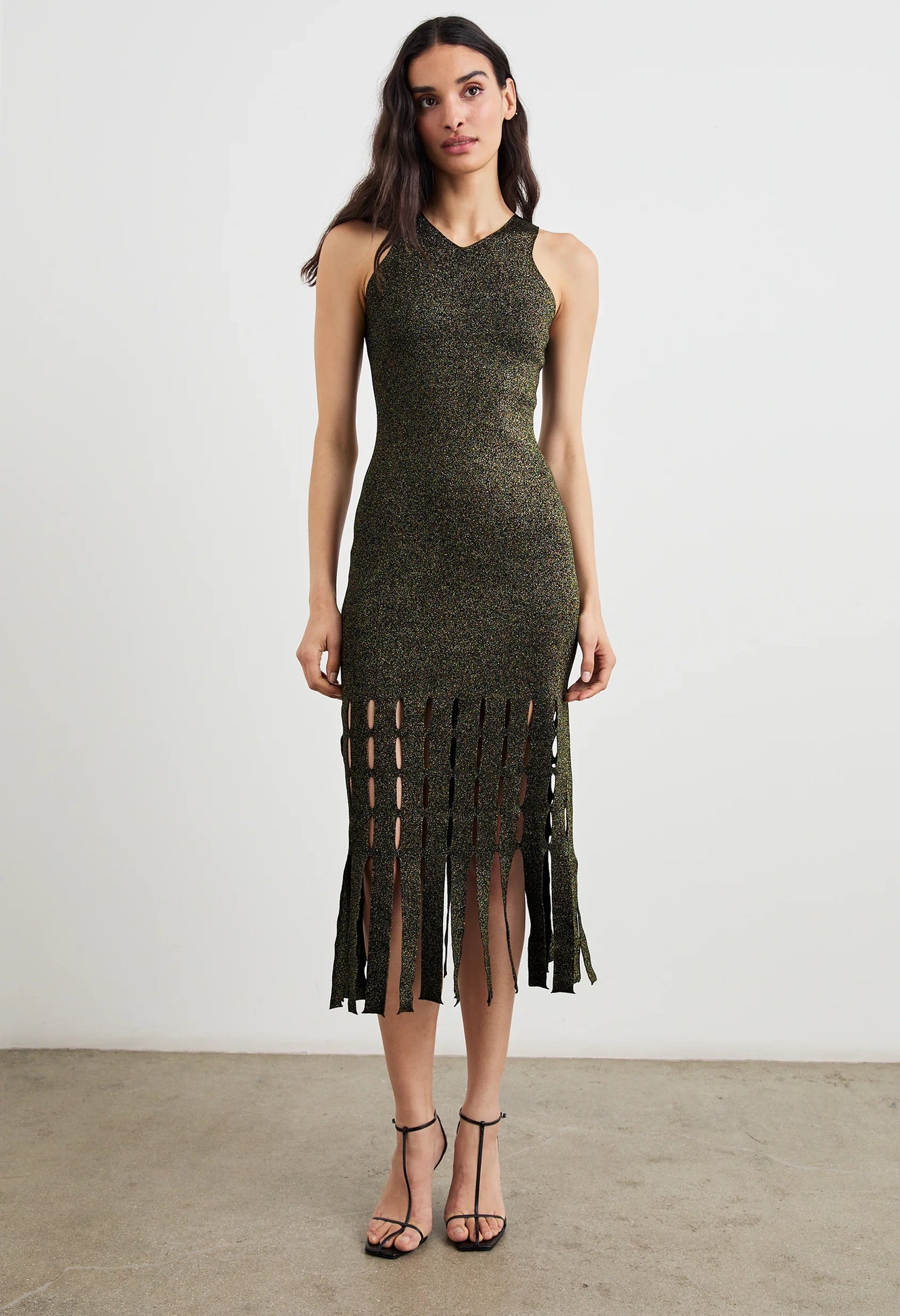 Designed to make a statement, the Kaia is anything but basic. Cut to perfection from novelty knit, this dress features a body-hugging fit and one-of-a-kind cutouts that drape beautifully over the legs.