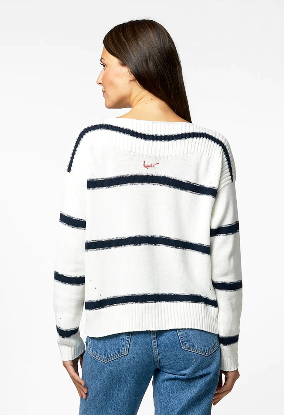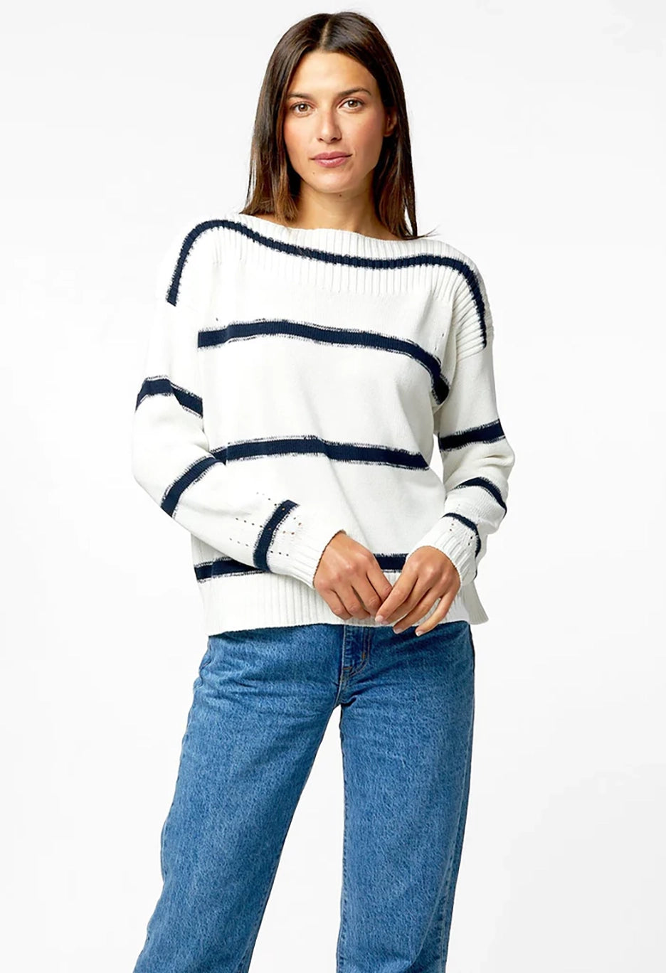 Meet the boatneck sweater of your dreams. Designed with an incredibly flattering neckline, intarsia stripes and a tiny embroidered 'Love' at the back, the cotton Kaia has a relaxed fit that's flattering on all body types. Great for every climate—this one will take you into Spring and on and on forever! That's LOVE!