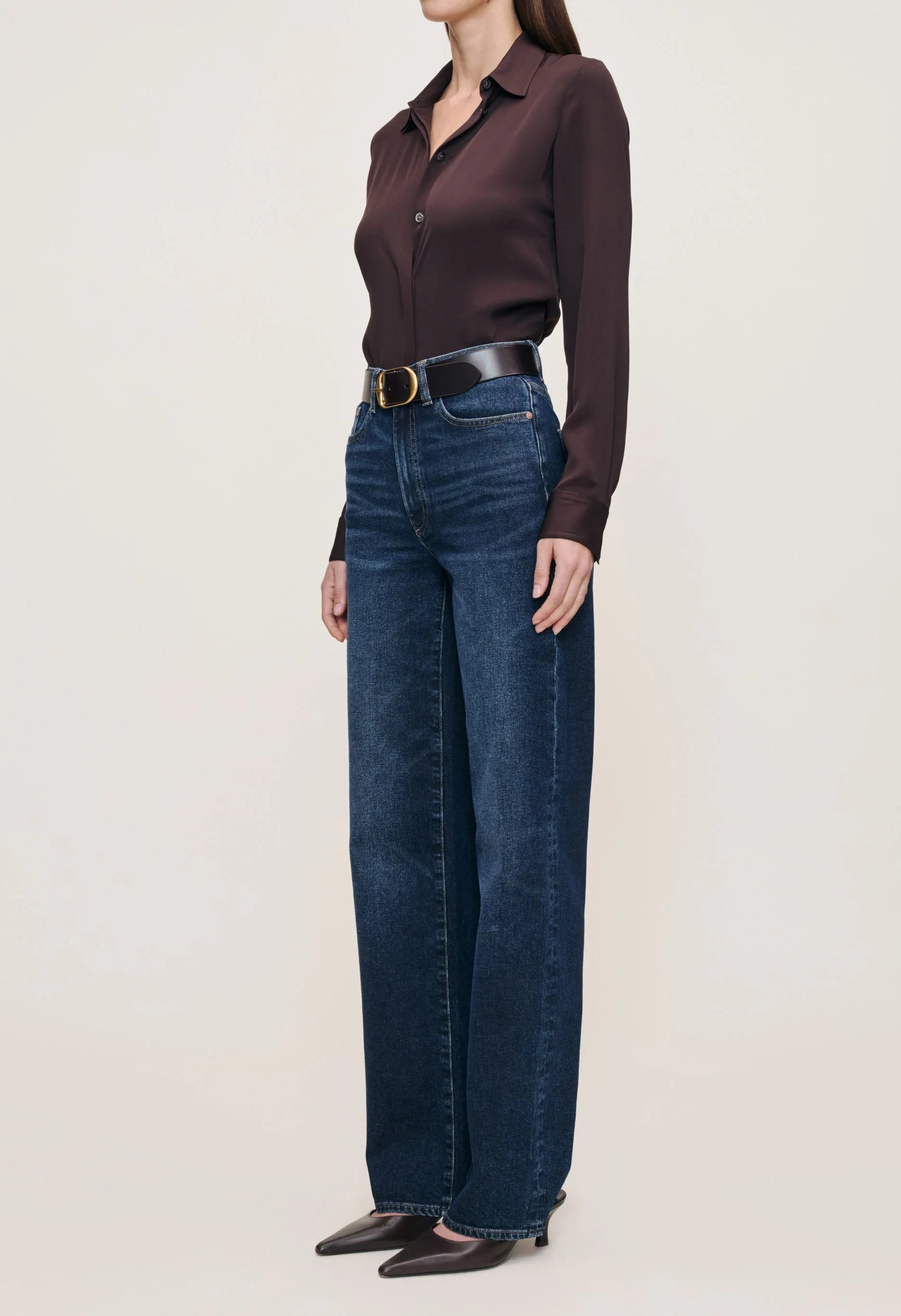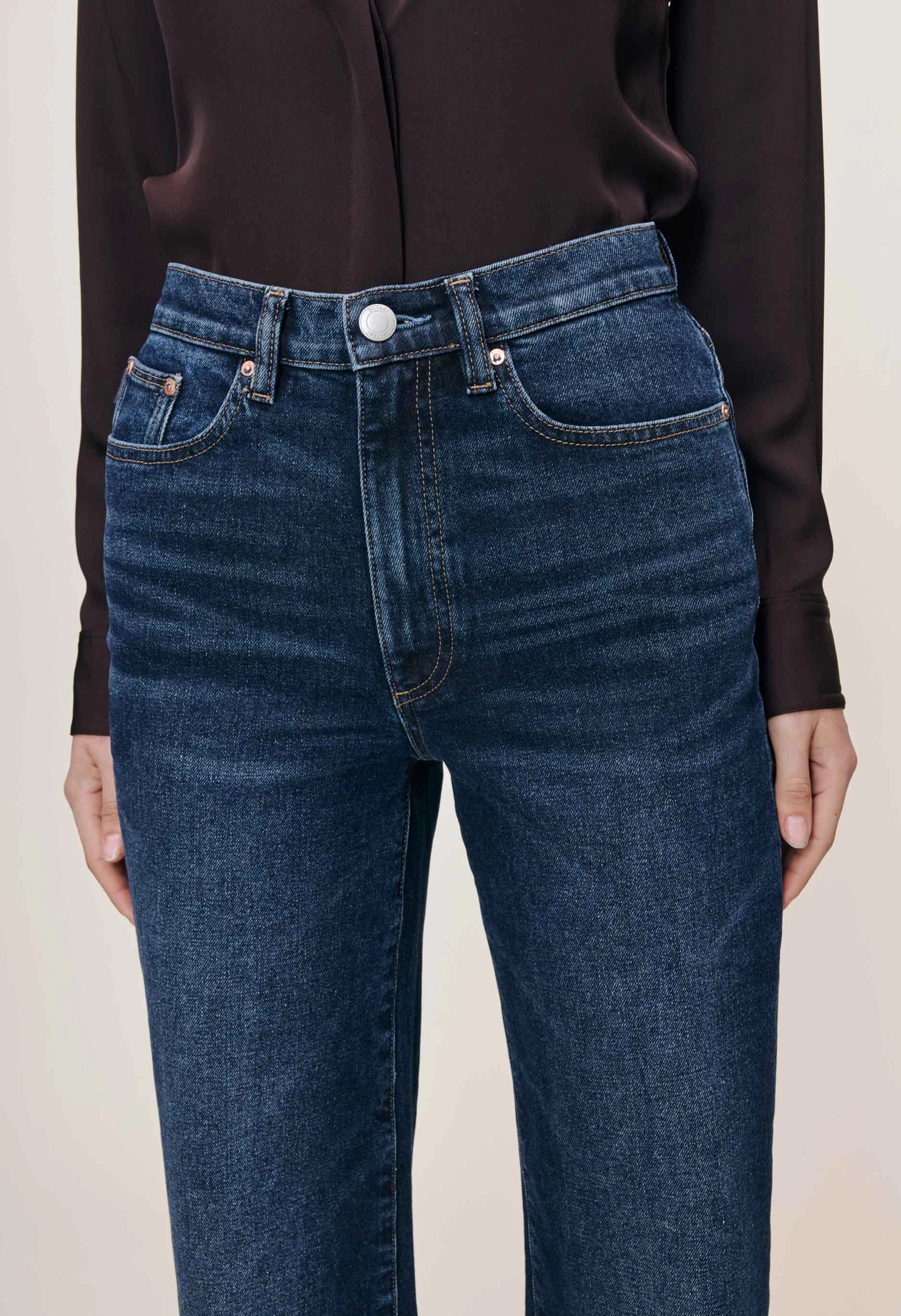 The Karmine Refined Wide Leg delivers effortless sophistication with its high-rise cut and straight silhouette. Designed with a 28" inseam, this polished pair features SculptSystem technology that contours your waist, seat, and thigh for a flattering fit. The Dark Sea wash showcases a rich indigo tone with subtle whiskering, complemented by silver hardware, copper rivets, and khaki stitching details. A clean hem and brown back patch complete this refined denim essential.