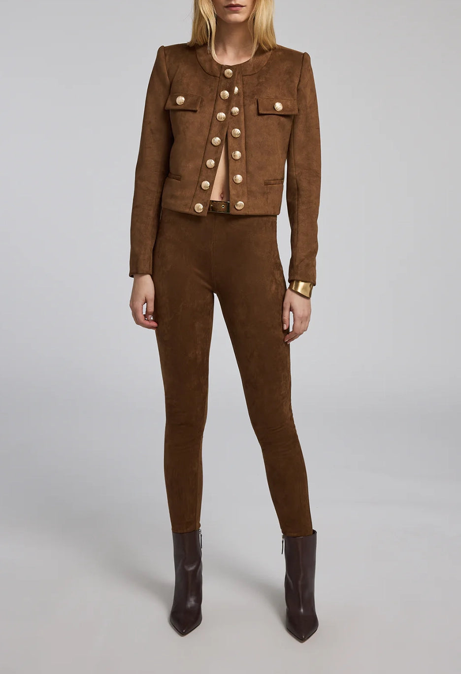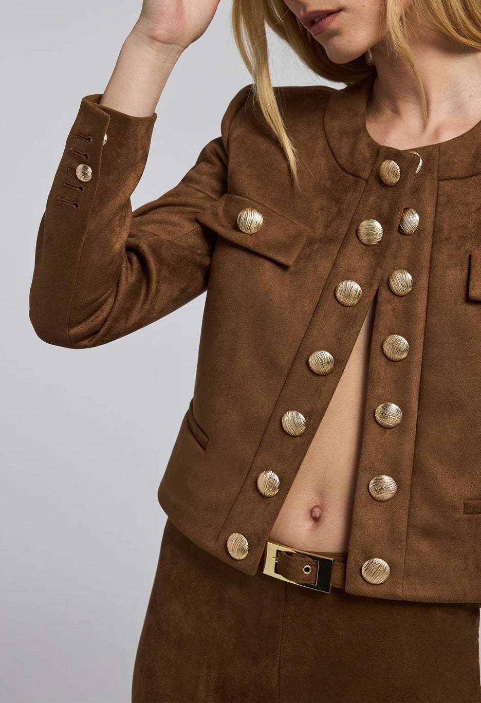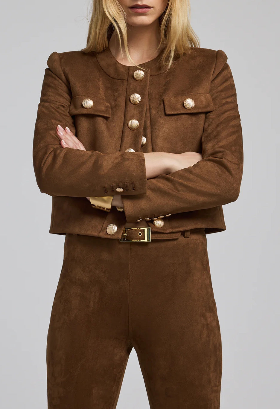 Stay trendy and cruelty-free with the Karson Vegan Suede Jacket. Made with luxurious vegan suede, this cropped jacket is the perfect addition to any outfit. With its on-trend style and sustainable materials, feel good about looking good.