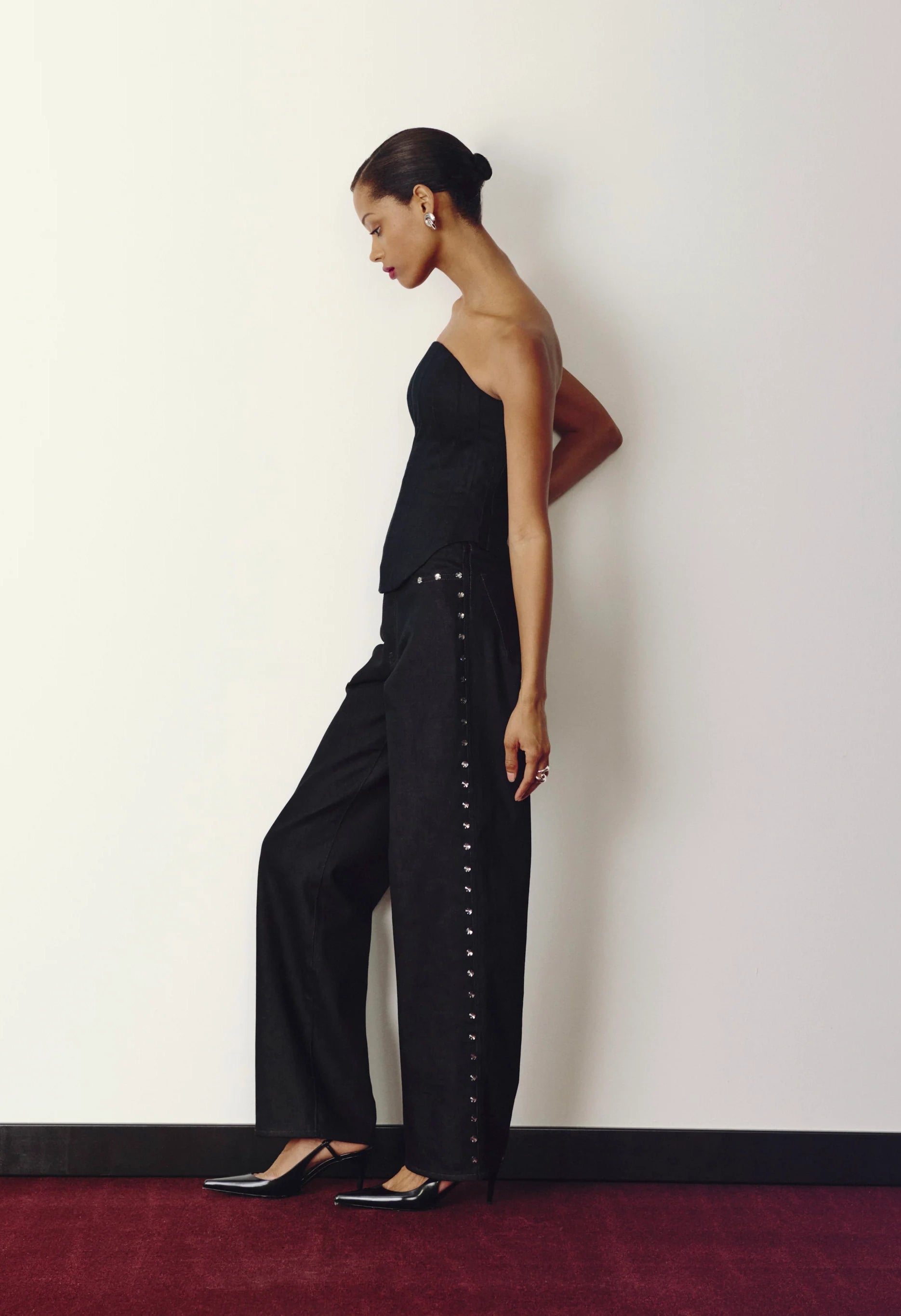 High-rise jeans designed to sculpt and flatter. The Kaylen features SculptSystem technology that cinches your waist and curves through the hip and thigh. Eternity Embellished wash offers rich indigo with warm brown tones and rhinestone side seam details. Black hardware and tonal stitching complete the polished finish.