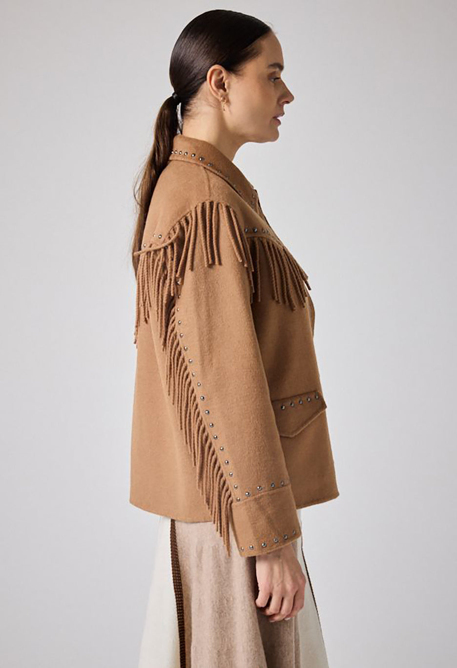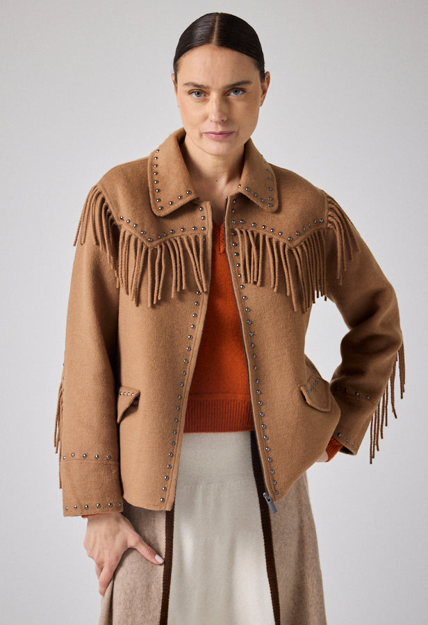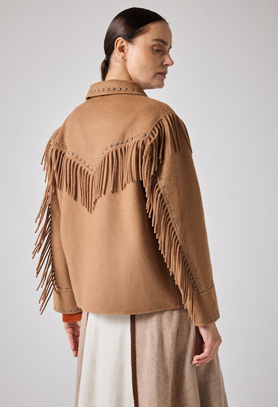 The Kimberly jacket offers a refined western-inspired look, featuring authentic fringe detailing for added movement and style. Crafted to combine classic design with contemporary appeal, this jacket provides a standout layer that complements both casual and dressier outfits with subtle flair. Perfect for those who appreciate timeless western elements in versatile outerwear.
