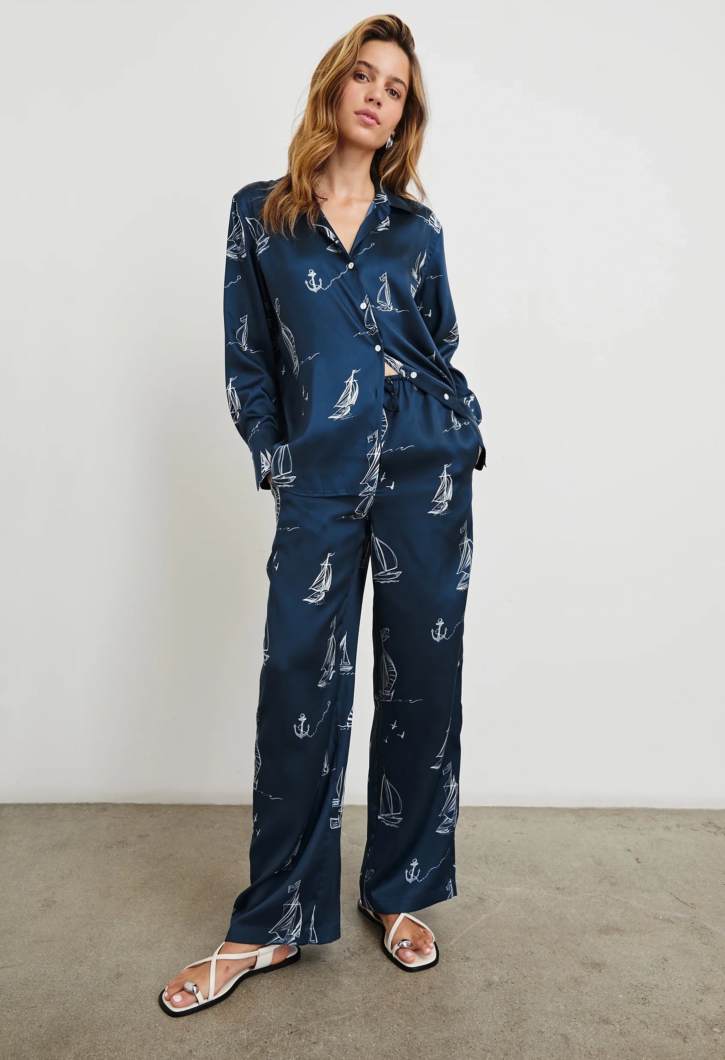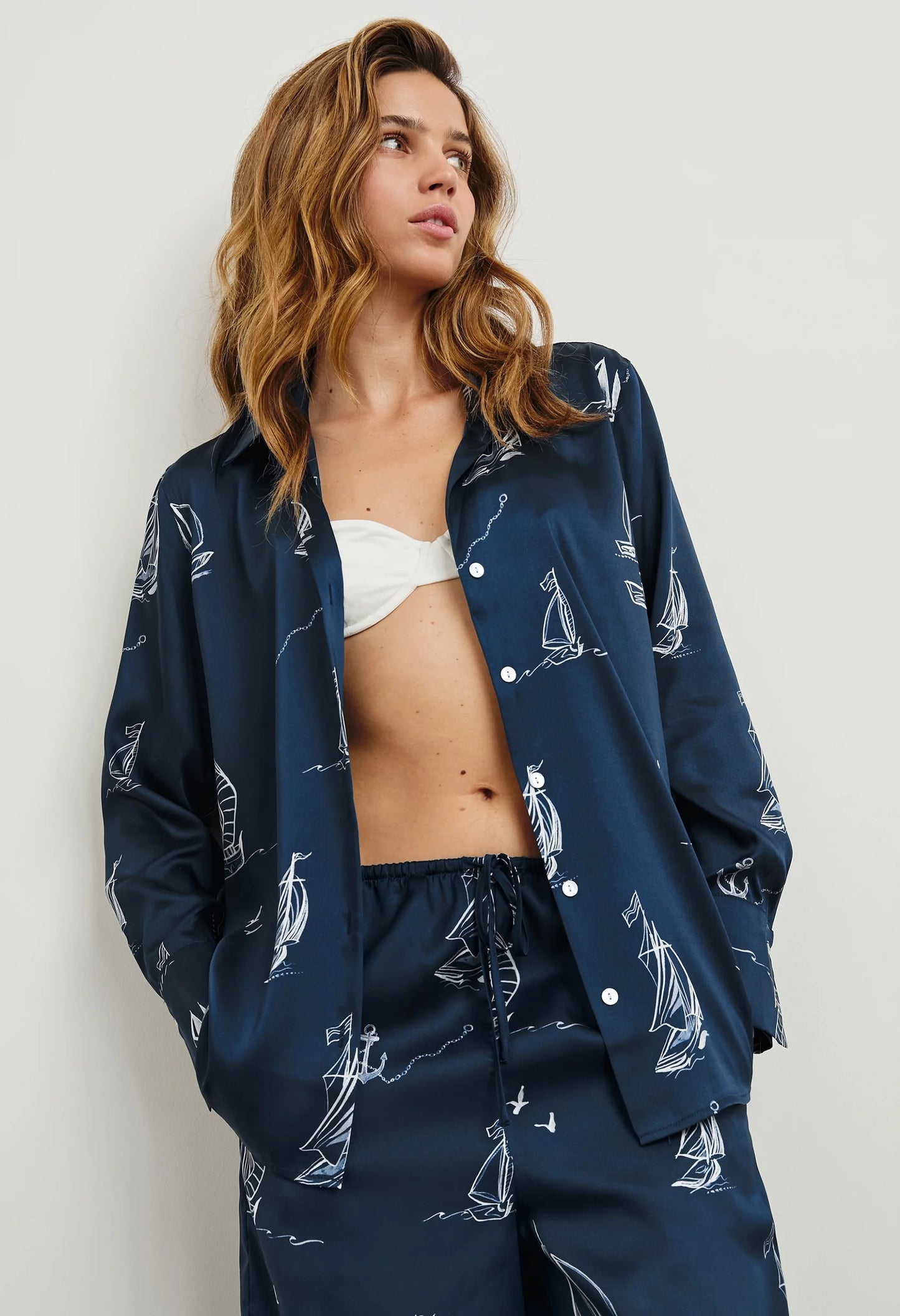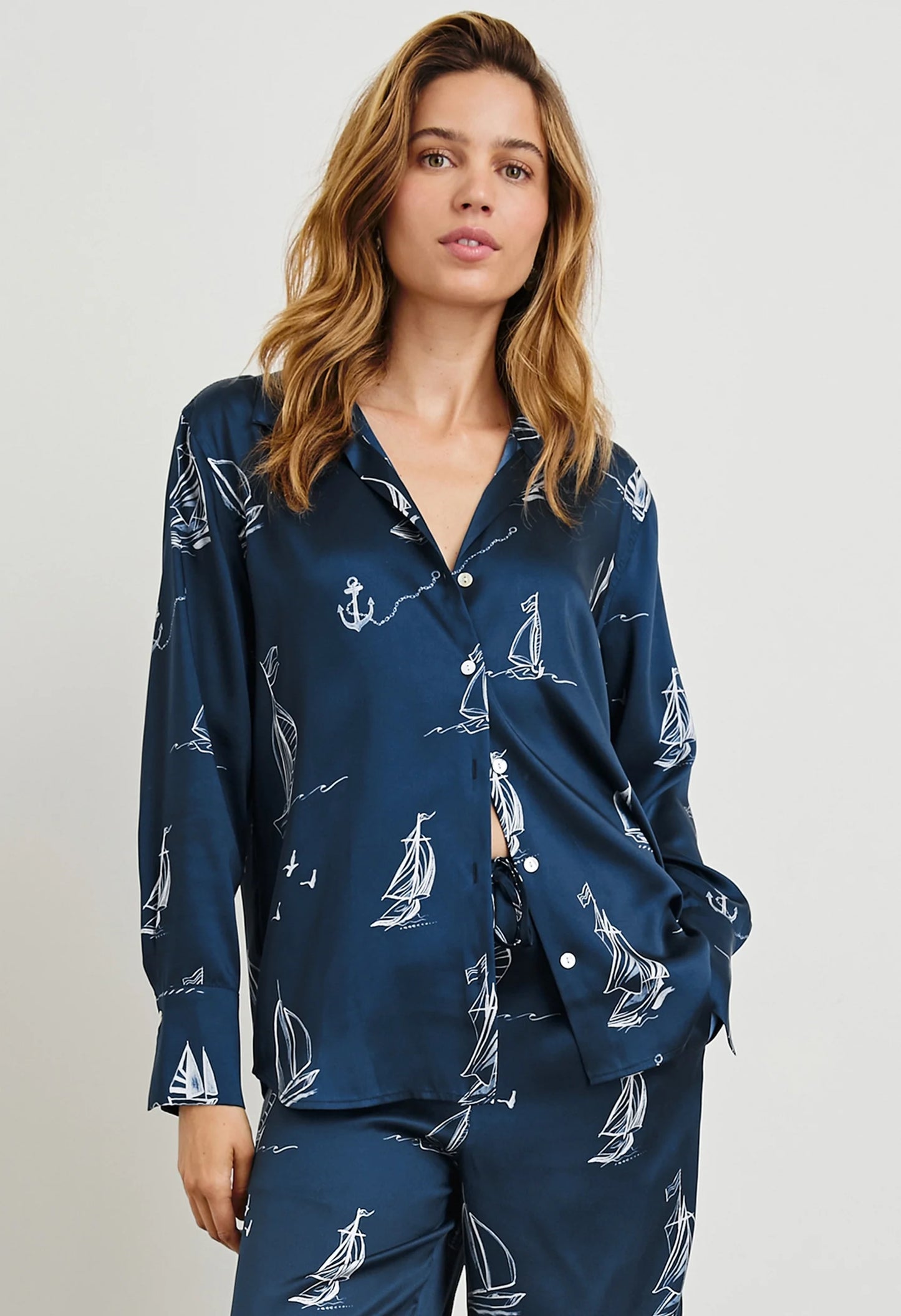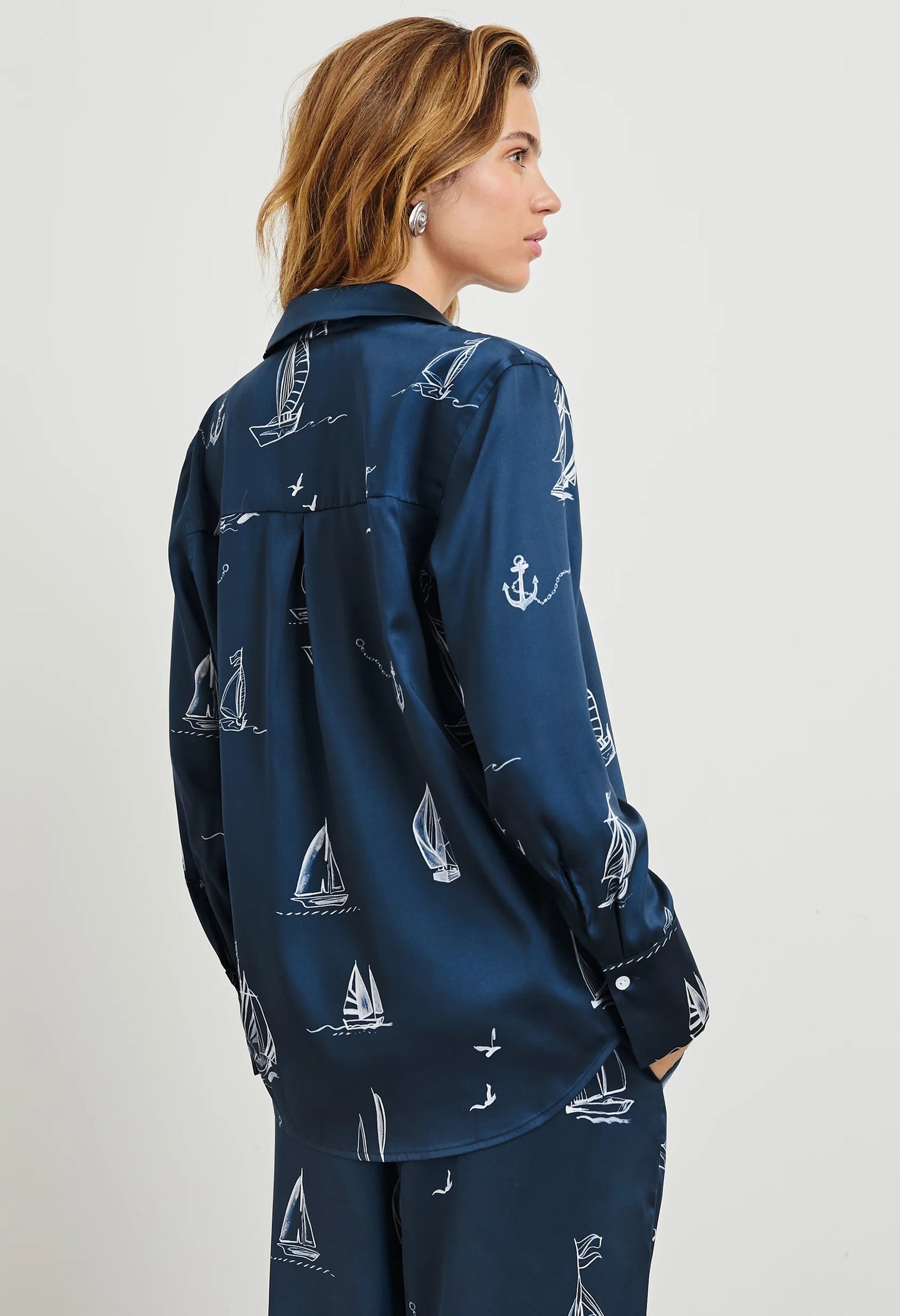The Ledger shirt is a sophisticated button-down made from shiny twill. It boasts elongated statement cuffs, natural shell buttons, and eliminates a chest pocket for a clean appearance.