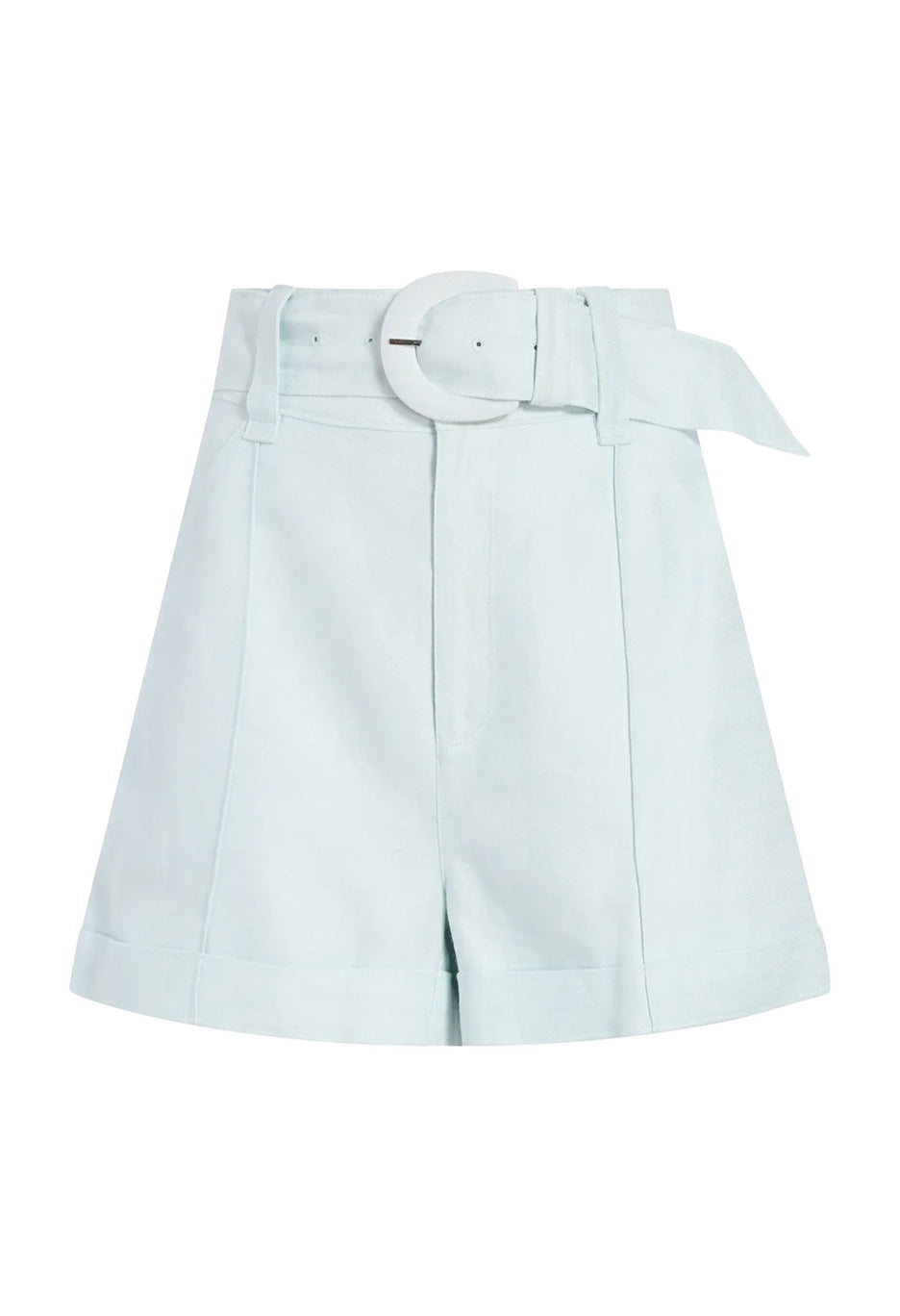 The Linen Aldi Short is a must-have for any fashion-forward individual. Crafted from lightweight linen fabric, these blue shorts offer a flattering mid rise and customizable fit with a belted waist. The intricate pintuck detail adds a touch of sophistication to this effortlessly stylish piece.