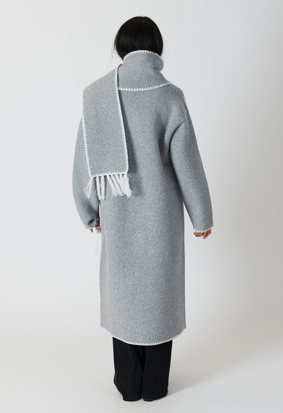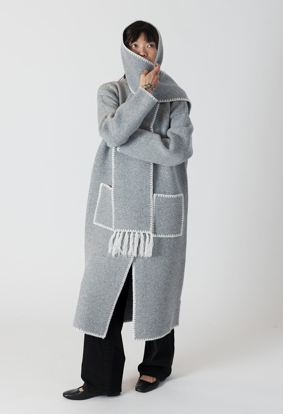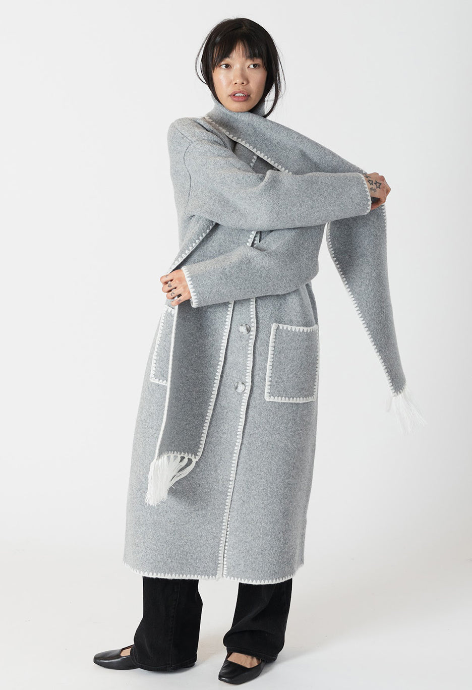Indulge in luxury with the Delany Long Coat. Crafted from high-quality materials, this coat will keep you warm and stylish all winter long. With a detachable scarf, you can easily switch up your look to fit any occasion. Elevate your wardrobe with this sophisticated and exclusive piece.