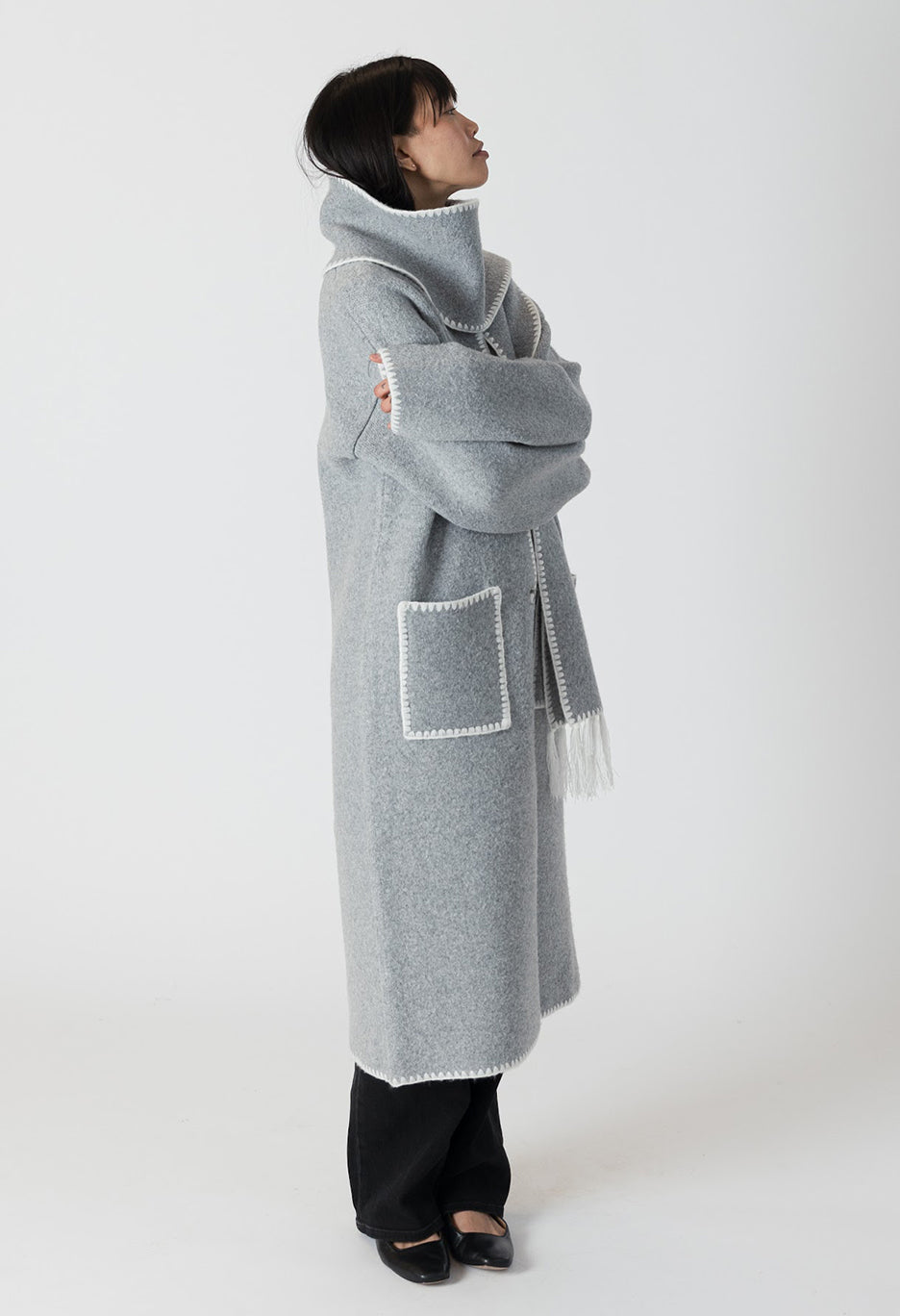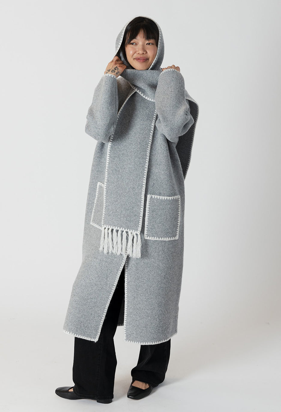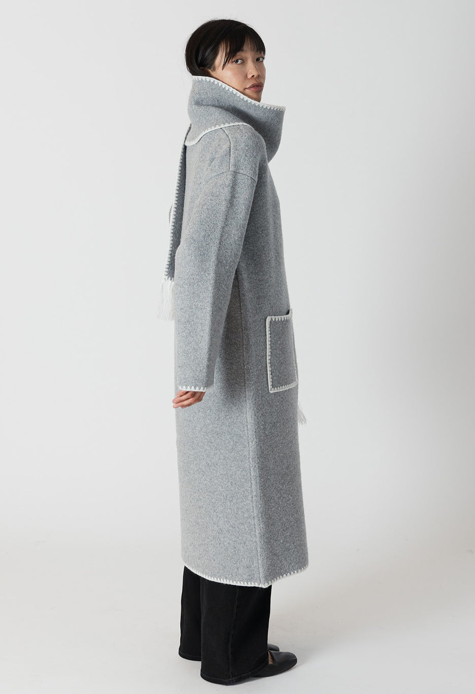Indulge in luxury with the Delany Long Coat. Crafted from high-quality materials, this coat will keep you warm and stylish all winter long. With a detachable scarf, you can easily switch up your look to fit any occasion. Elevate your wardrobe with this sophisticated and exclusive piece.