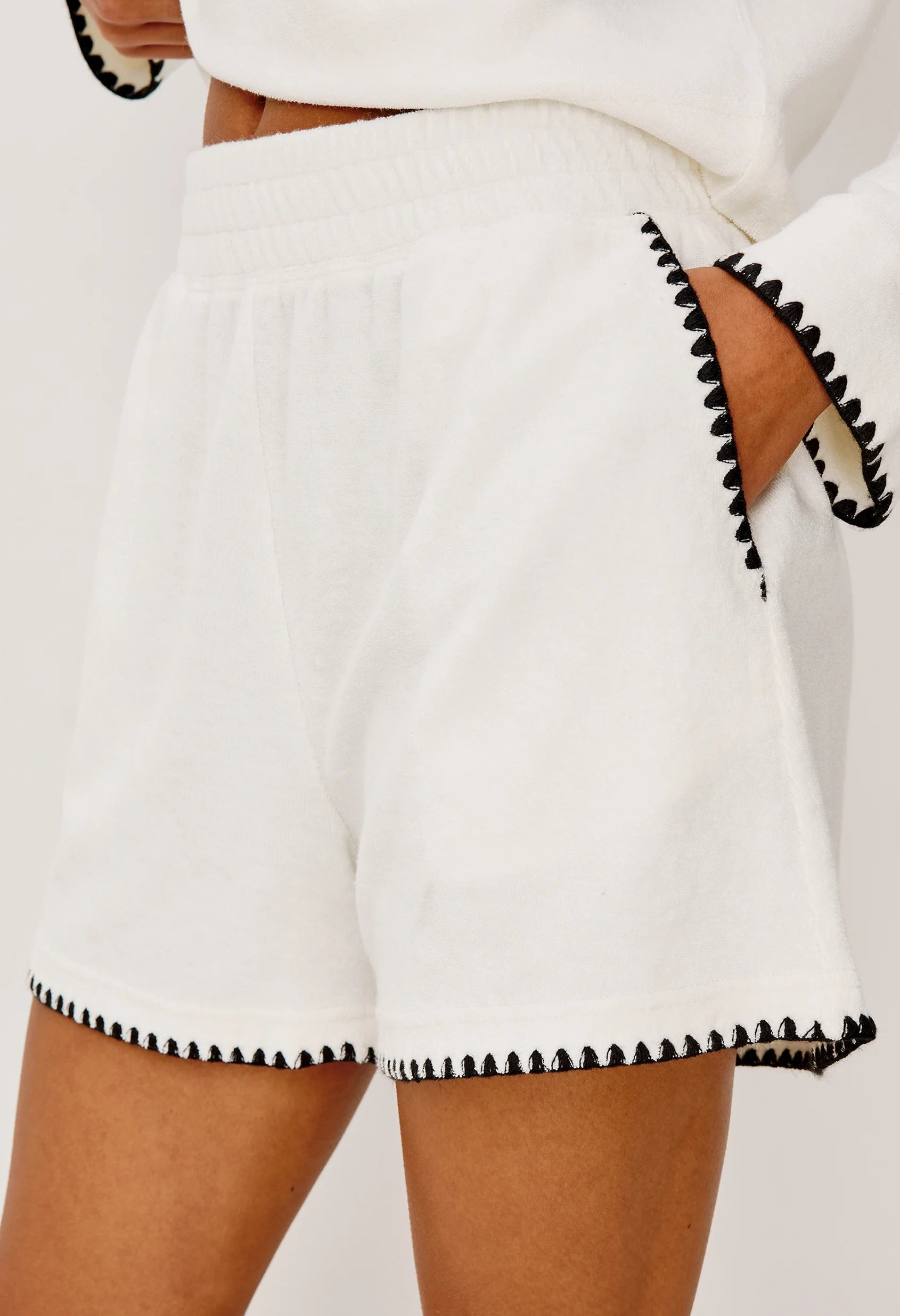 Effortlessly chic and comfortable, the Lunas short combines relaxed styling with thoughtful details. A high-rise elastic waistband provides a flattering fit, while functional side pockets and a single back pocket keep essentials within reach. Finished with distinctive contrast blanket embroidery, this loose-fitting short delivers understated sophistication for everyday wear.