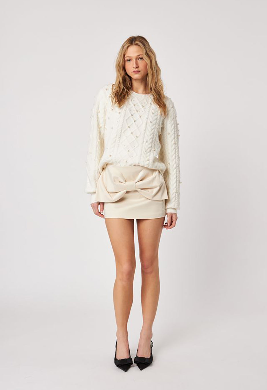The Lux long sleeve sweater features elegant pearl appliqué detailing that adds a refined touch to a classic design. Crafted for both comfort and style, this sweater offers a sophisticated option for cooler days, combining timeless appeal with a subtle, luxurious accent. Ideal for dressing up or layering, it elevates your wardrobe with understated elegance.