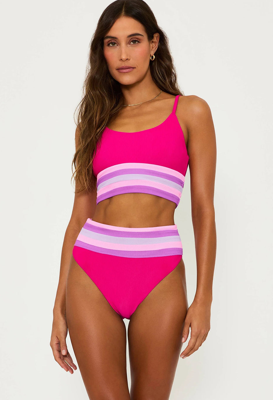 Indulge in the luxury of the Mae Top. Made with a ribbed fabric, this versatile bikini top is perfect for both swim and workout. Its adjustable straps and removable bra pads provide ultimate comfort and support. Elevate your style with this must-have piece.