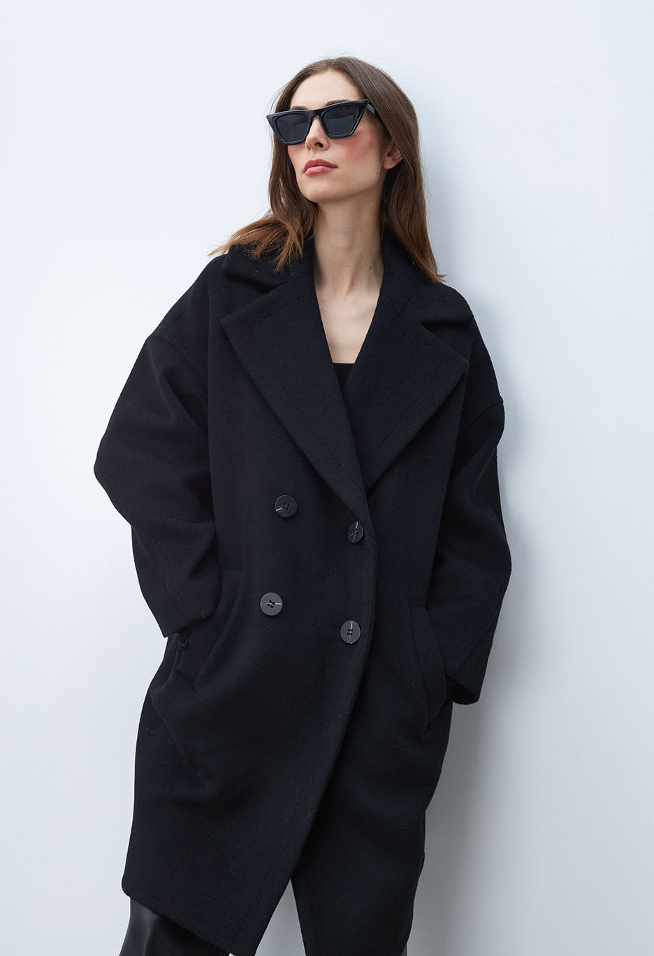 Stay in style this season with the Maxine Coat. This oversized coat is made from a luxurious wool blend, designed for comfort and warmth. Its unique fit lends to a timeless elegance, making it the perfect statement piece for any wardrobe.