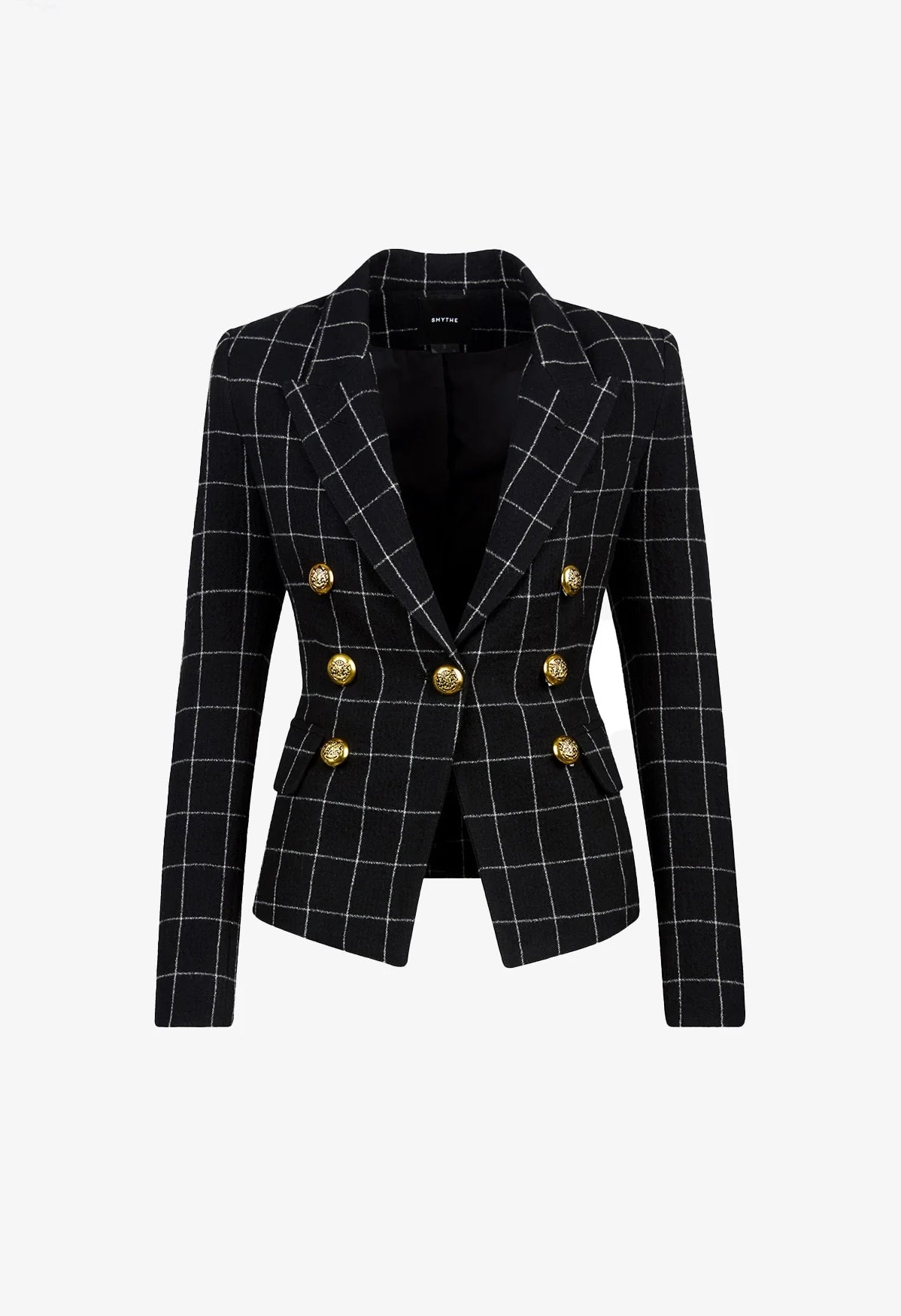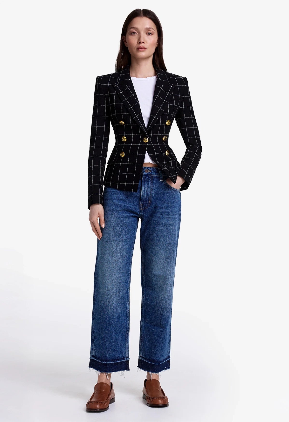 This Mini Not A DB Blazer offers a modern, cropped take on the classic Not a DB Blazer design, ending at the high hip for a sleek silhouette. Tailored for a flattering fit, it stays true to size, providing polished style without compromising comfort or ease of wear. Perfect for adding a refined touch to any outfit.