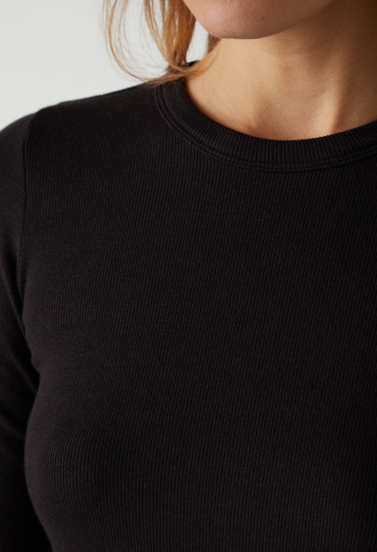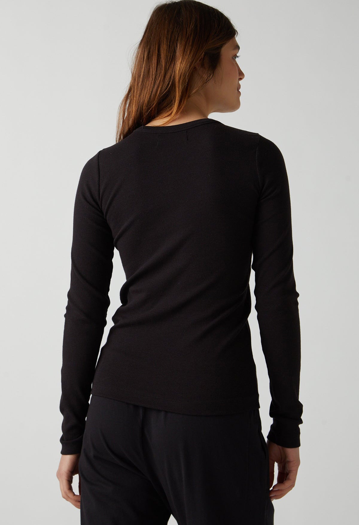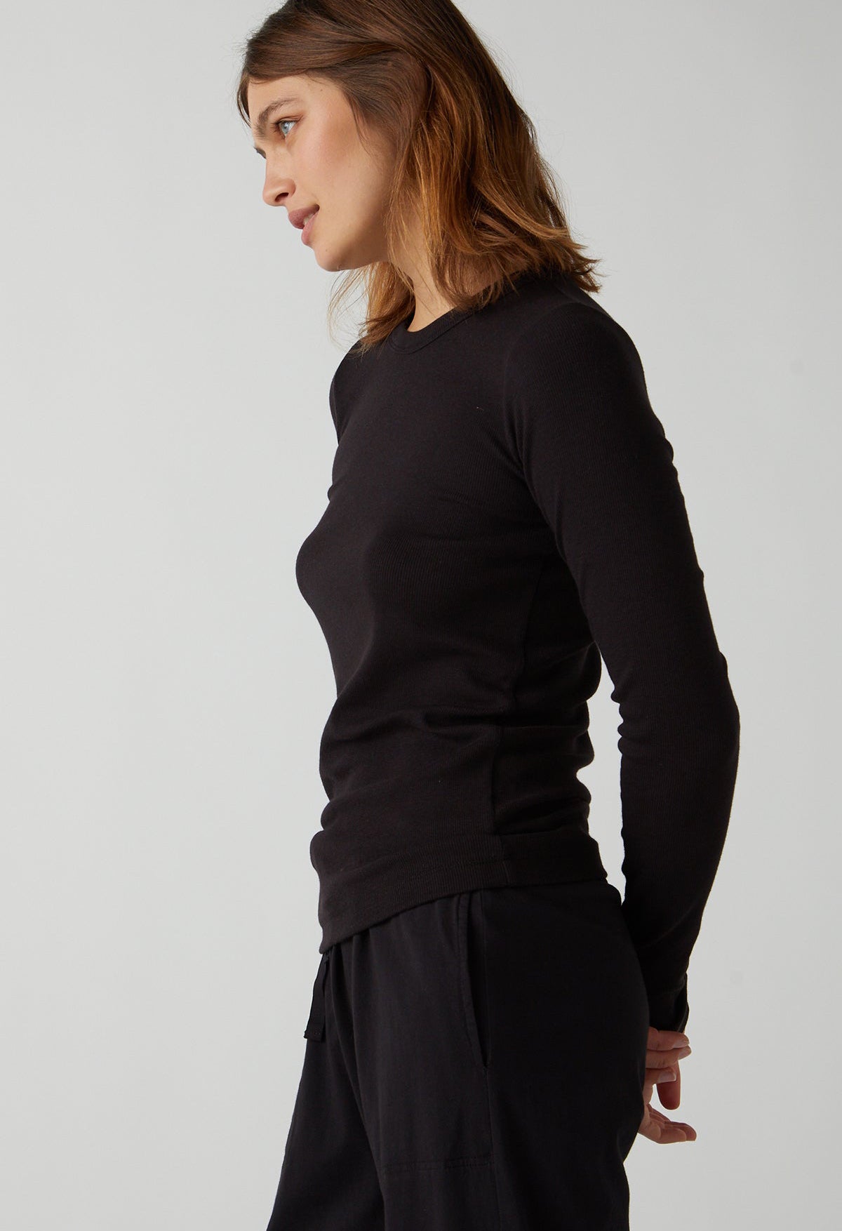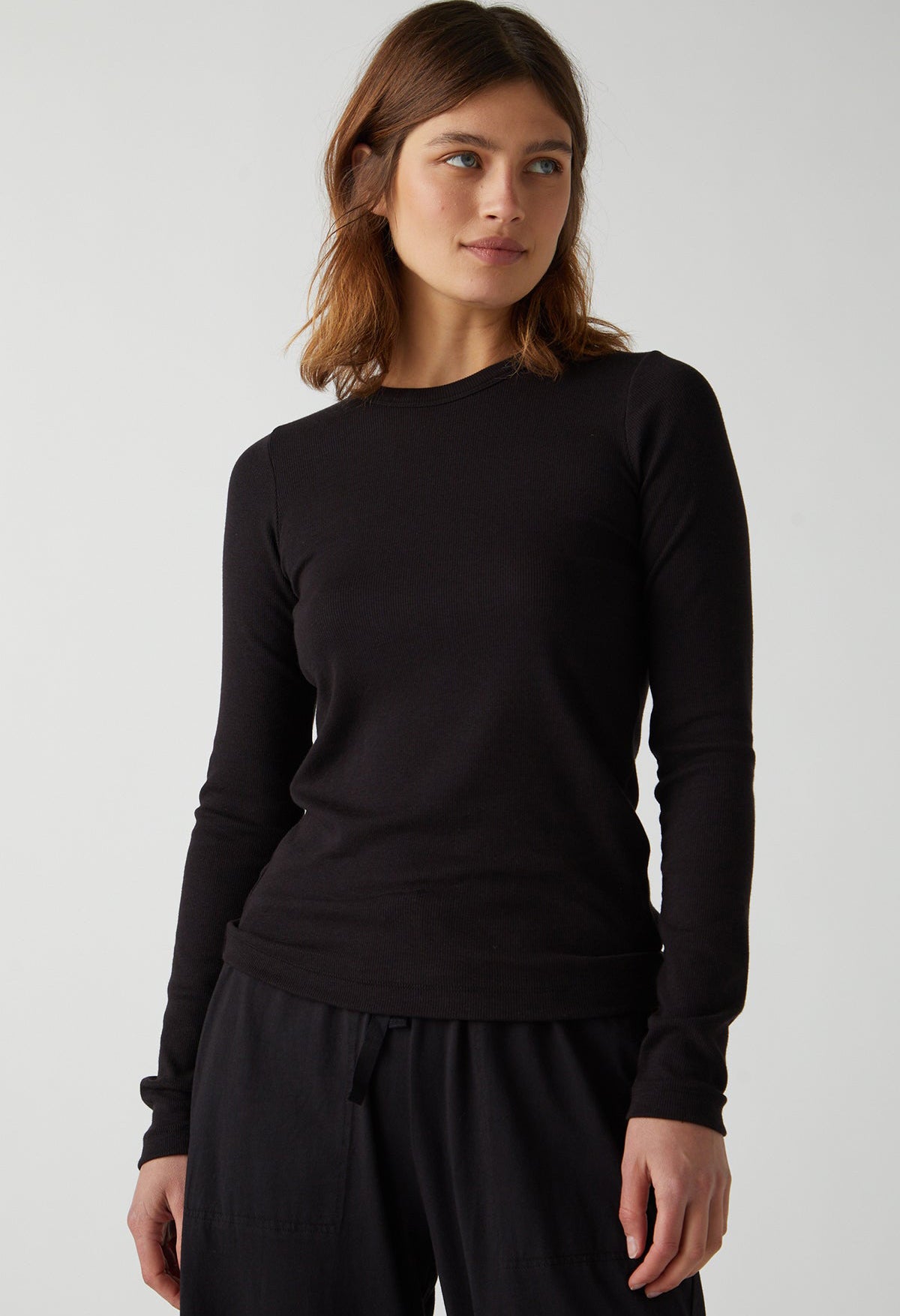 This modal rib feels super soft against the skin and is designed with a slimmer fit so it can effortlessly layer under knits or a blazer. Featuring a neck binding with a flat stitch finish for ultimate comfort and double stitch cuffs and hemline. Versatile, chic and truly timeless.
