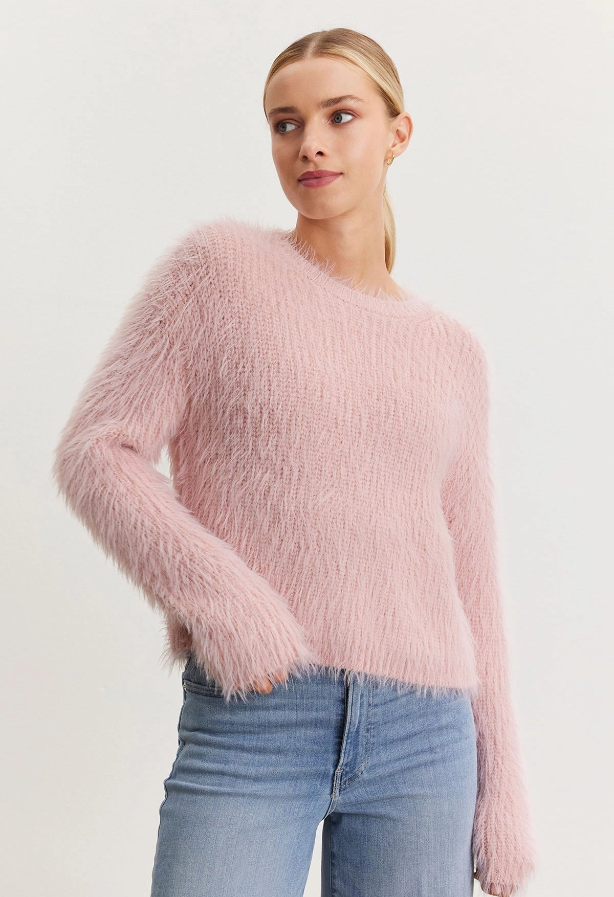 Introducing the Maylie Novelty Feather Yarn Sweater, designed with long sleeves and ultra-soft feather yarn for optimal comfort. Ideal for cooler weather, this sweater offers both warmth and style. Crafted for a luxurious feel, it's the perfect addition to your wardrobe.