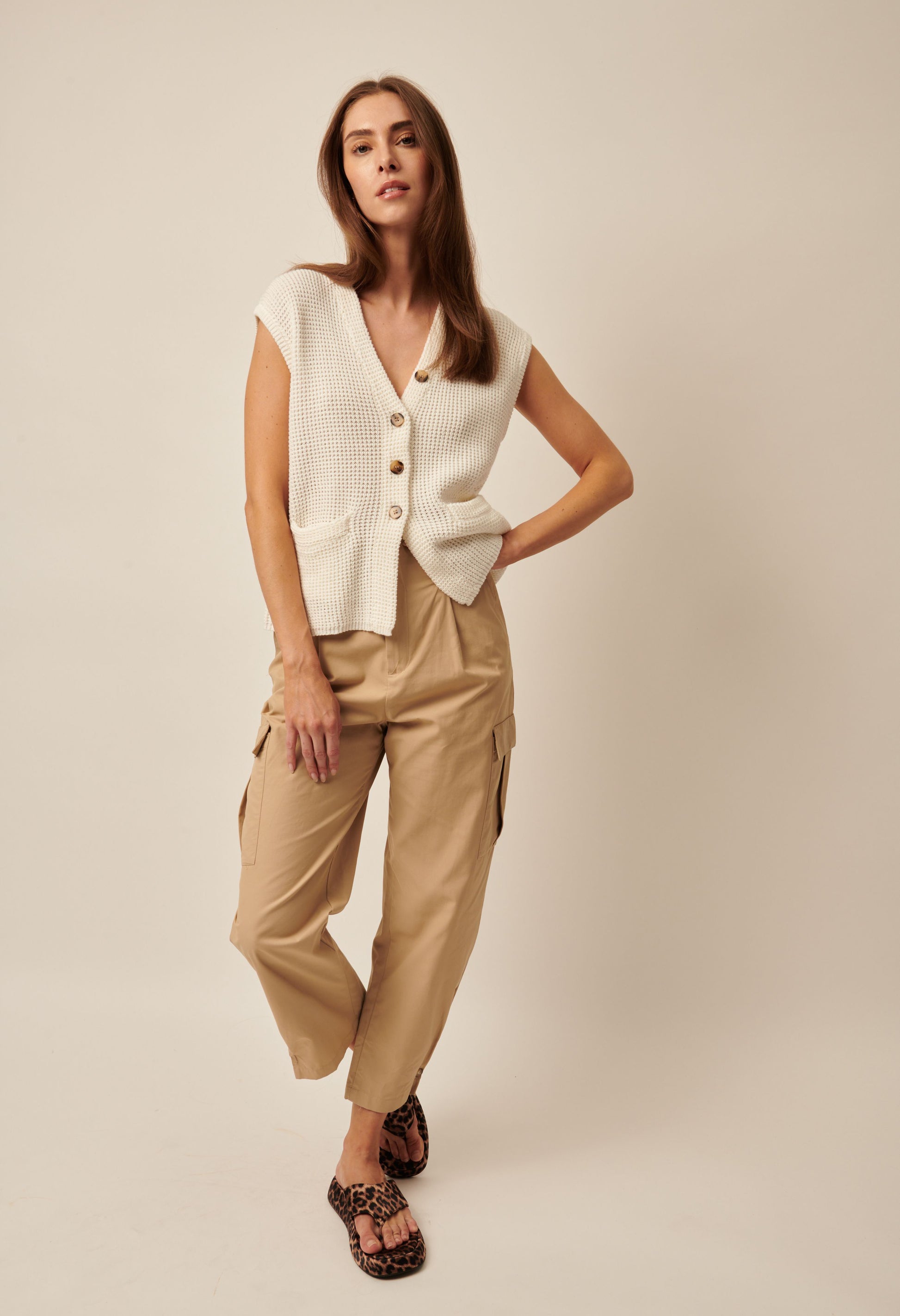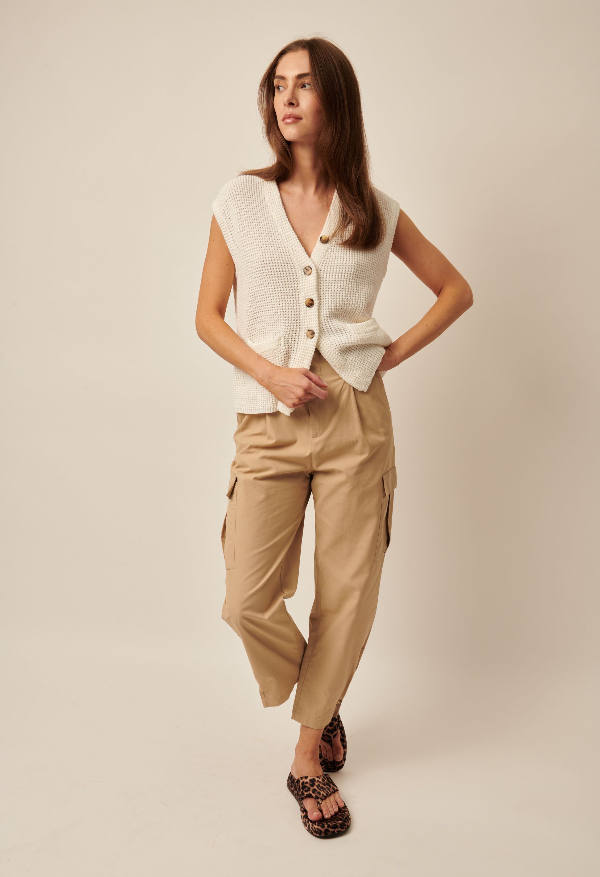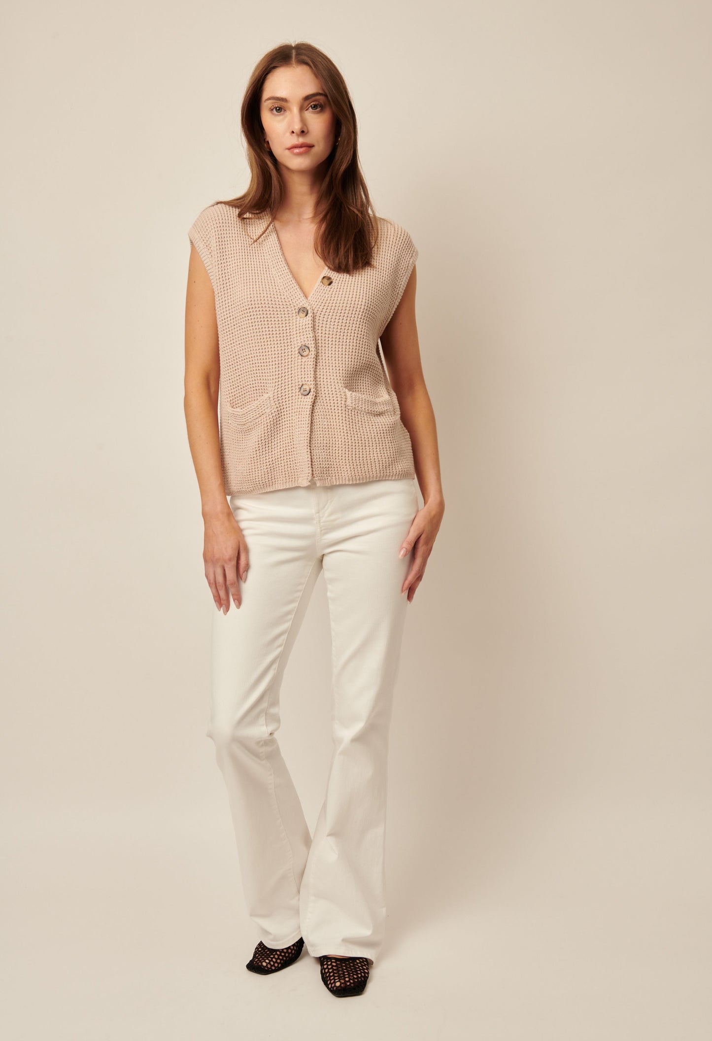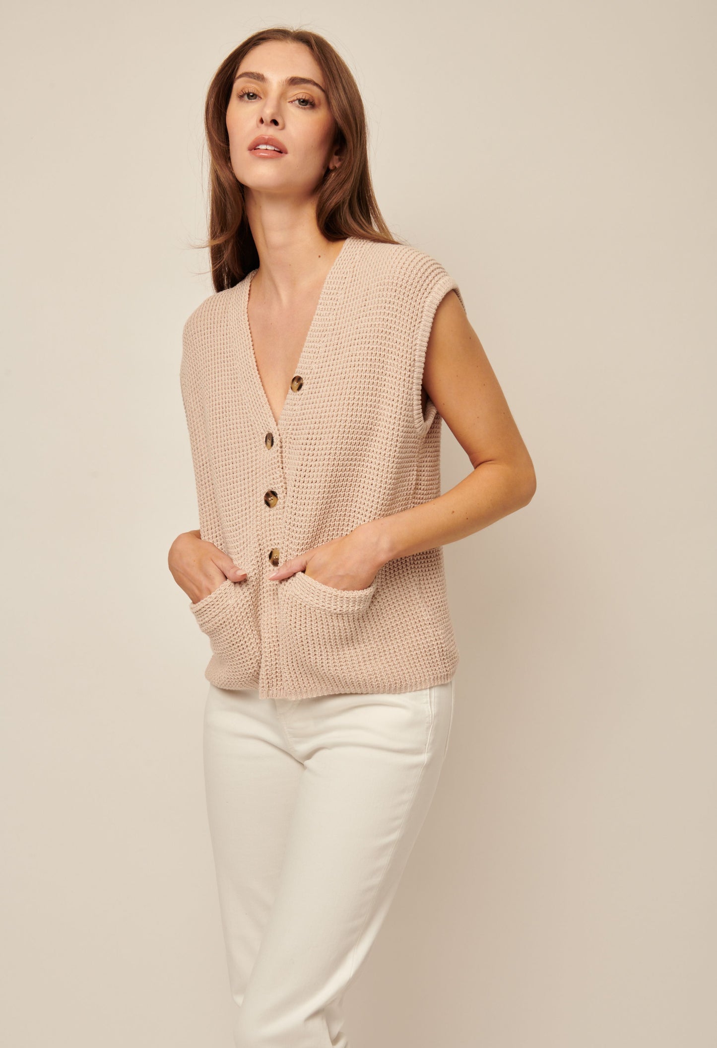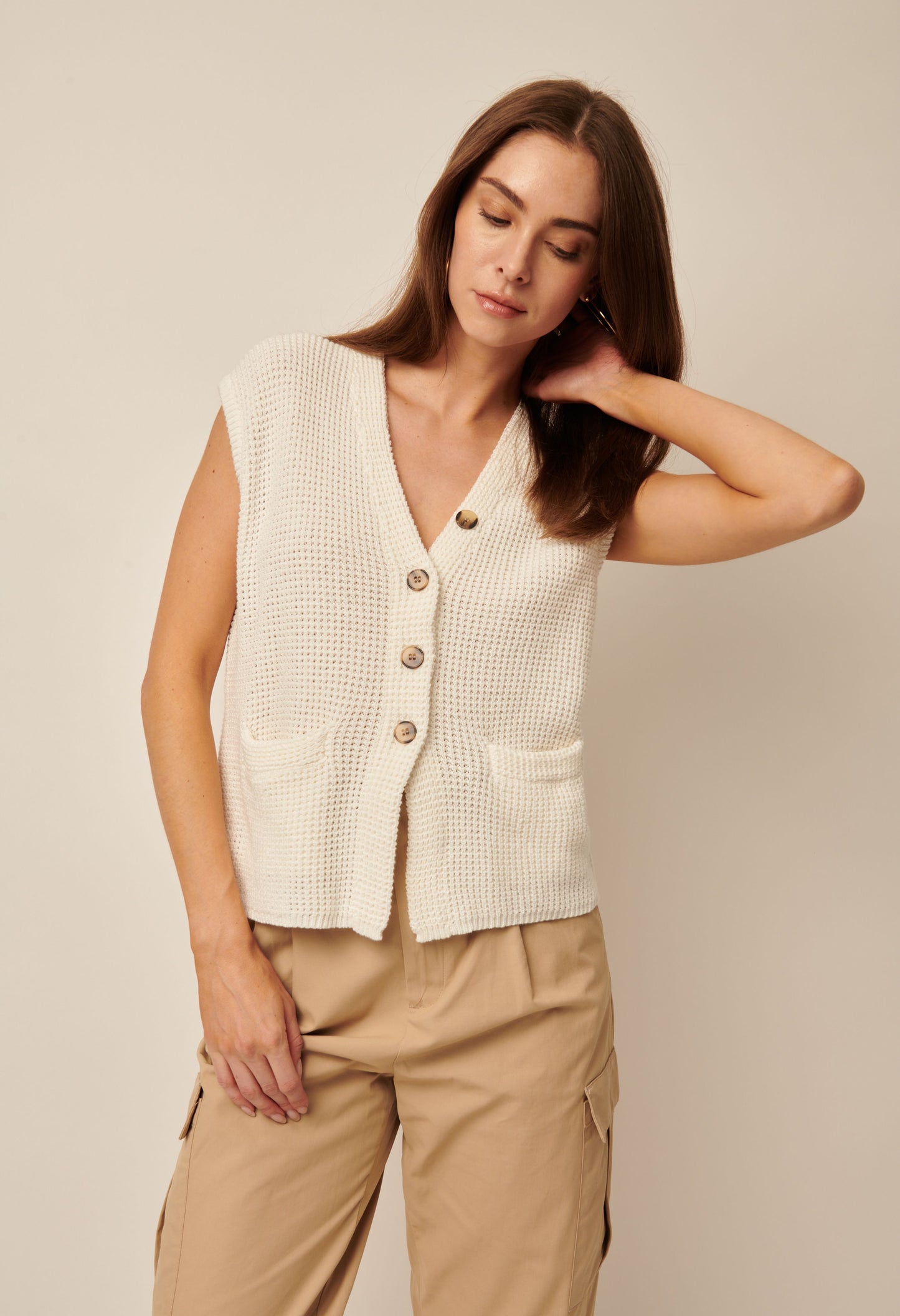 Upgrade your wardrobe with the Olive sweater vest cardigan. This versatile piece boasts a sophisticated design with pockets, perfect for keeping your essentials close. Stay cozy and stylish all day long in this essential addition to your clothing collection.