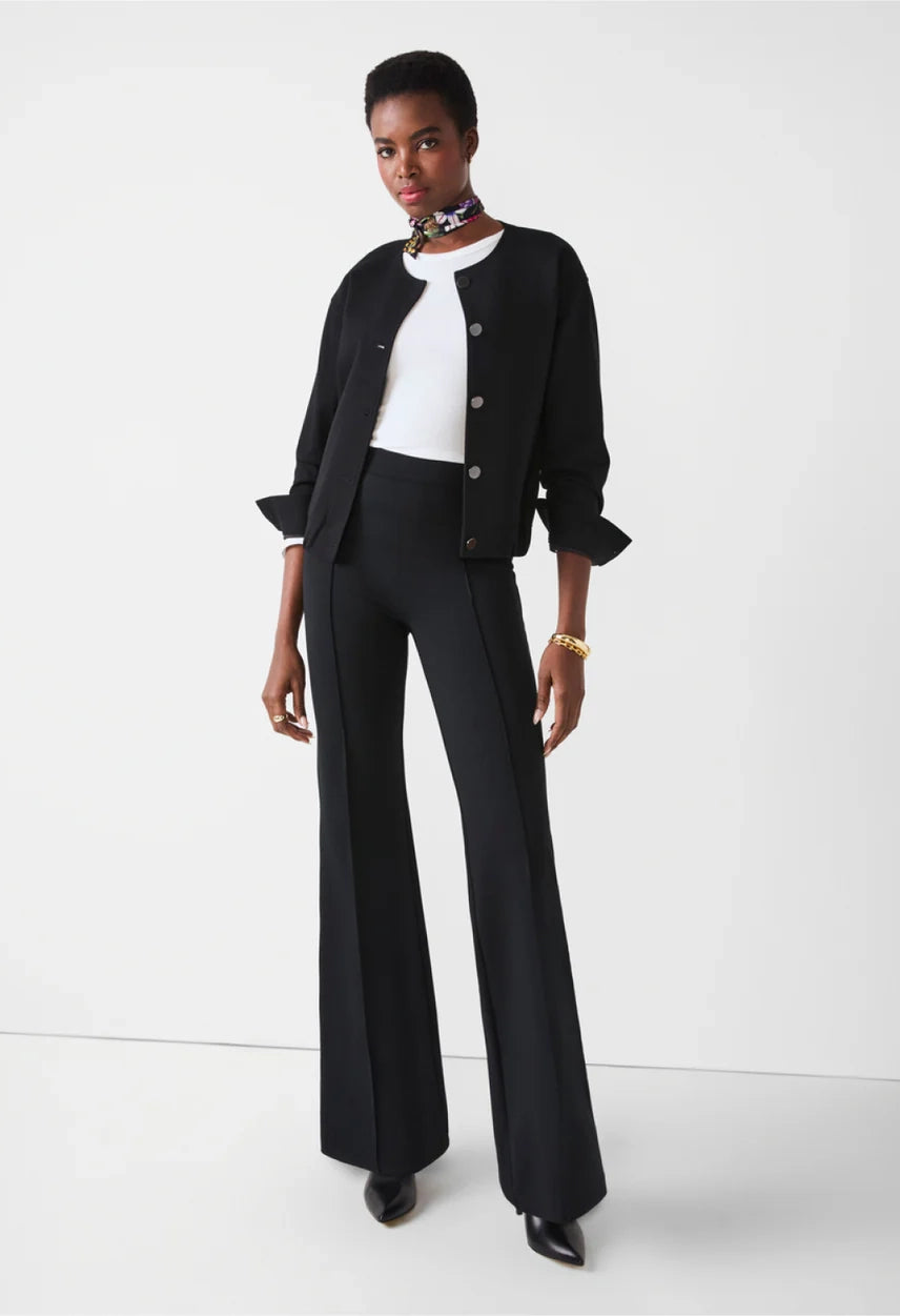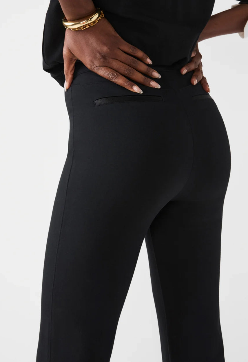 This smoothing pant comes in premium ponte fabric with targeted compression built in, powered by SPANX CoreSure Tech™. With comfortable 4-way stretch, these curve-hugging flares provide the PerfectFit, every time. All you have to do is simply pull them on. No zippers, no buttons, and no pockets (so no bulk!) at the hips—all for the ultimate smoothing effect.