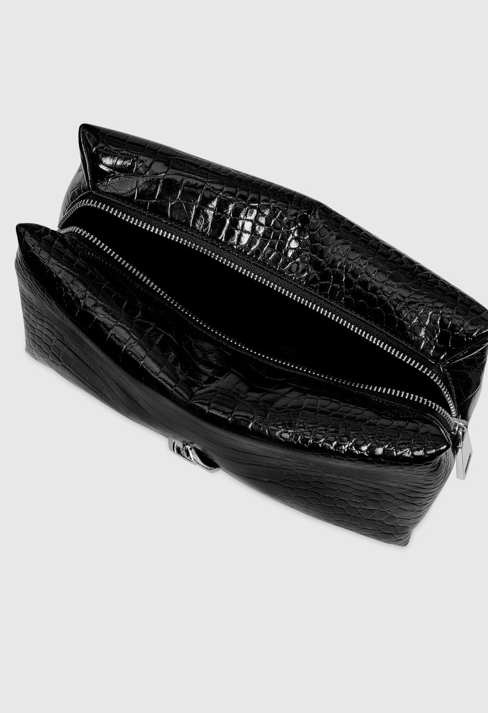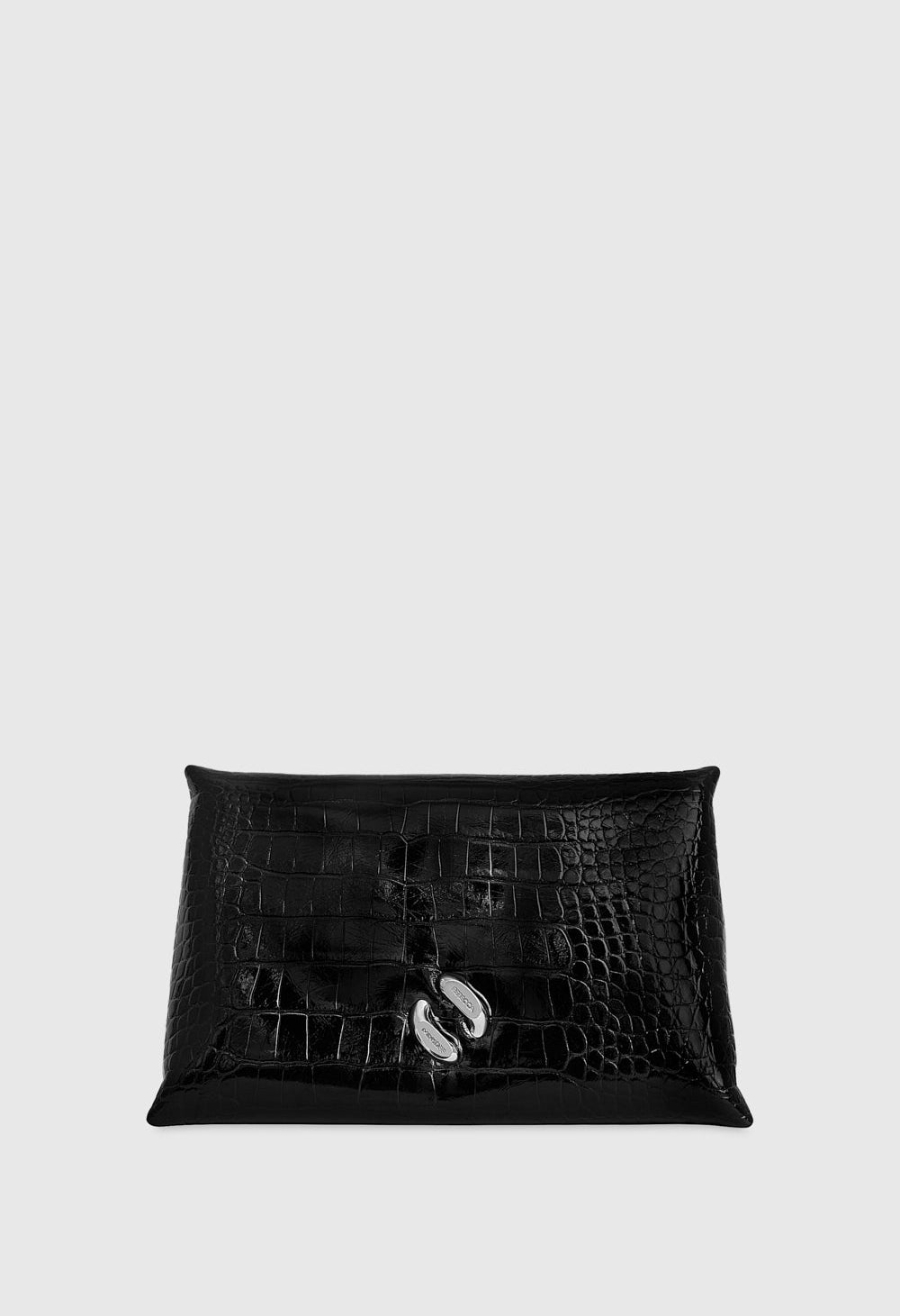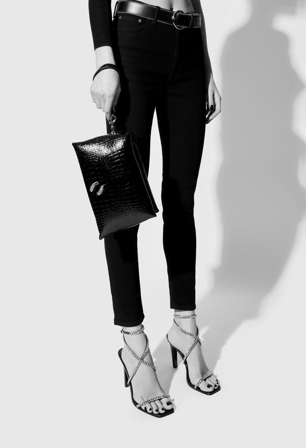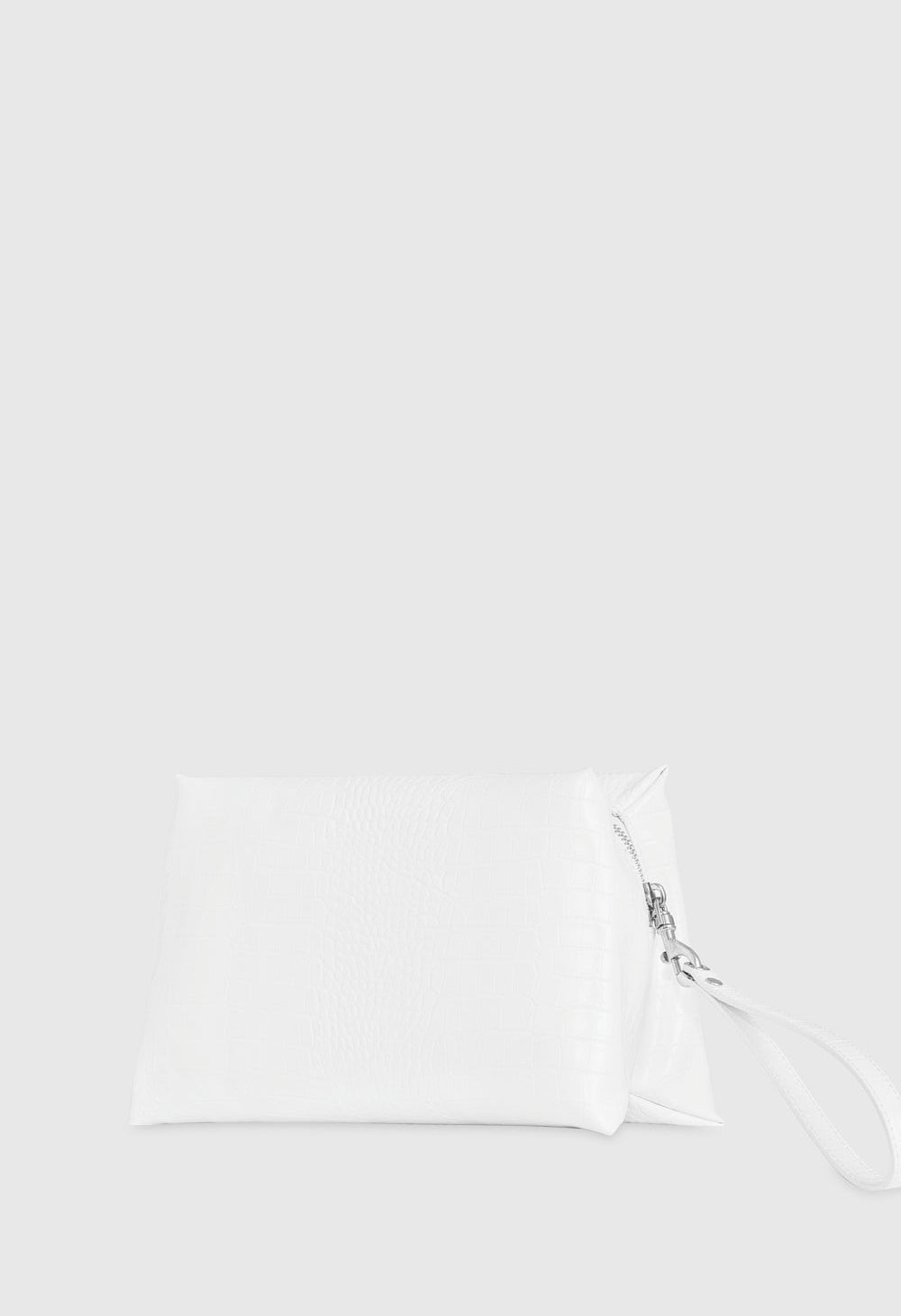 Grab and go glam. This stunning clutch with croco texture features a sleek silhouette accented by shiny silver hardware. It's finished with a zip closure and an interior zip pocket that keeps your smaller items easy to find.