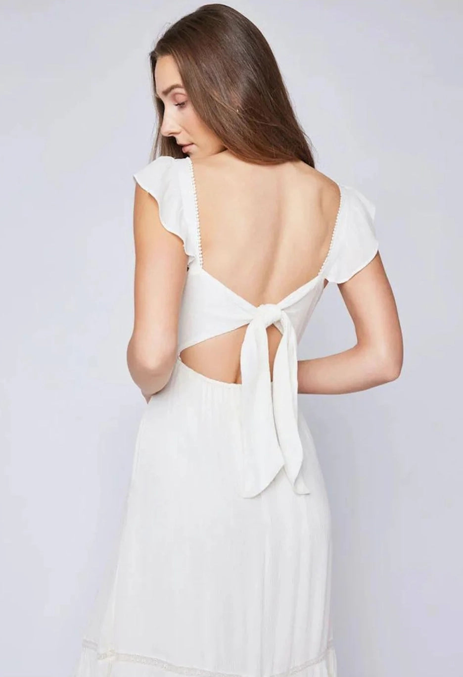 Crafted with rayon for a luxurious feel, the Gentle Fawn Quinn Dress in white is a must-have addition to your wardrobe. It's soft and breathable fabric offers comfort and drapes beautifully, making it perfect for any occasion. Featuring a cute bow back detail.