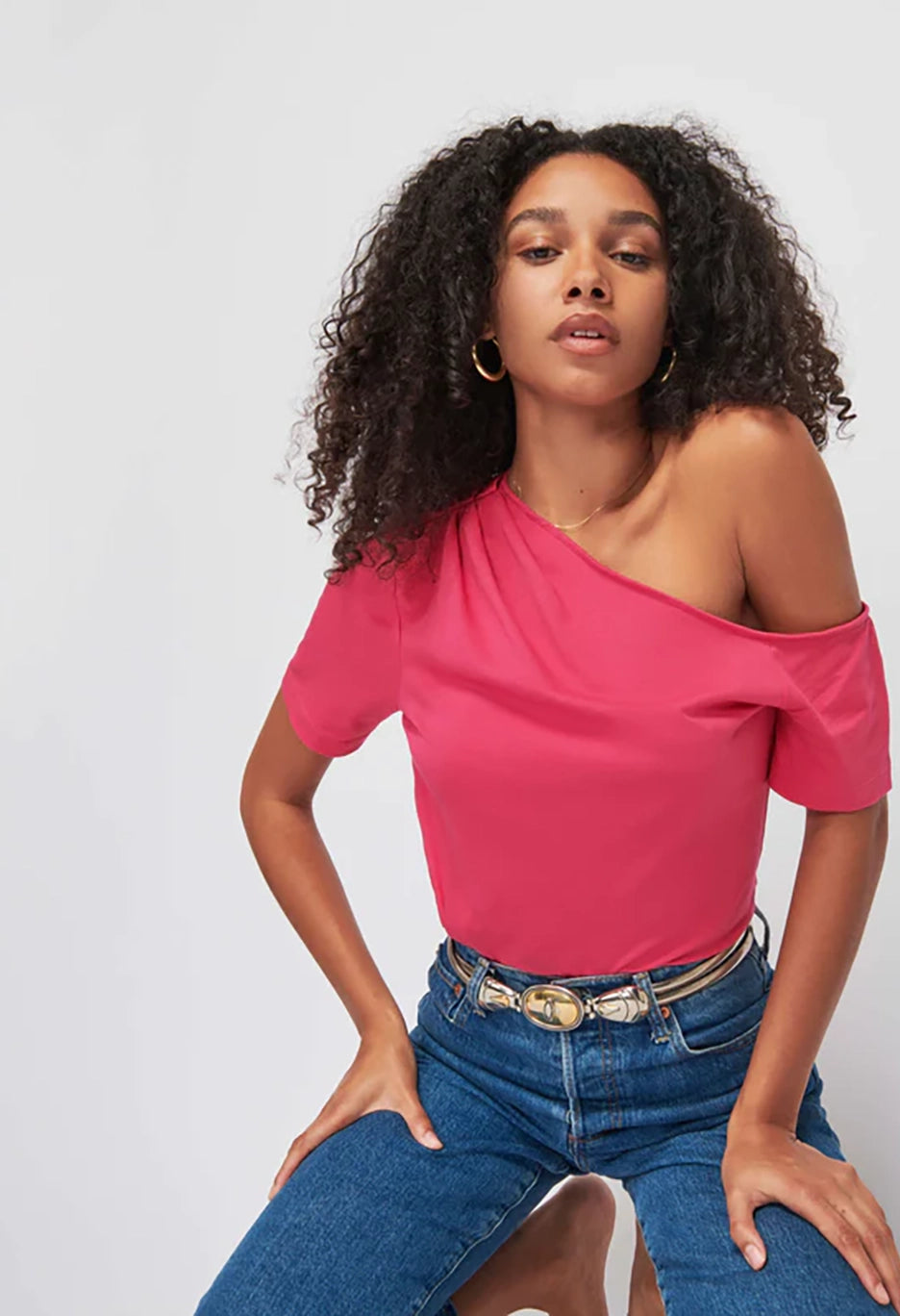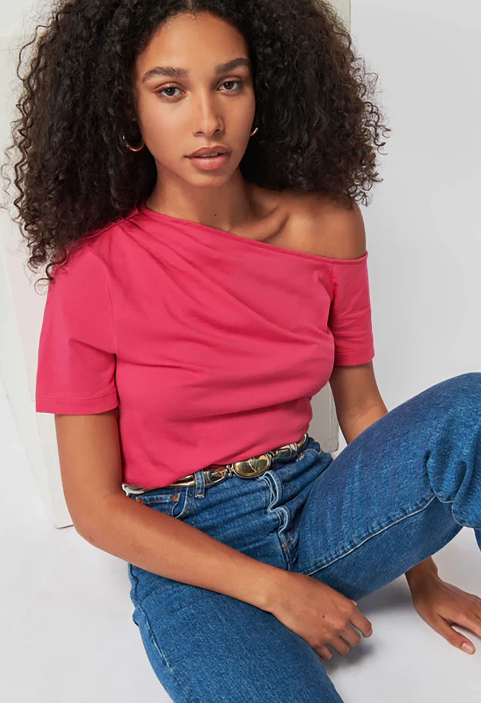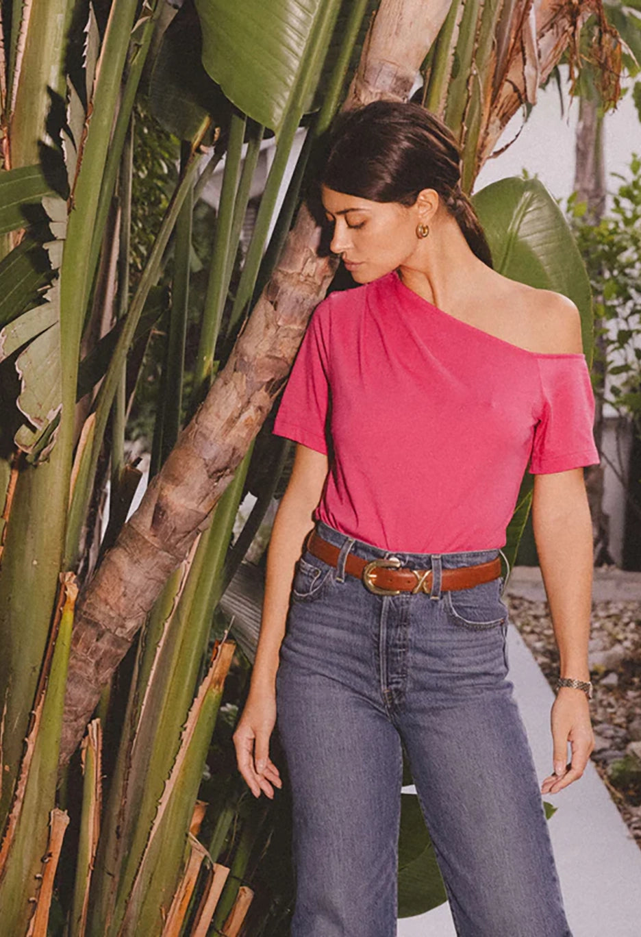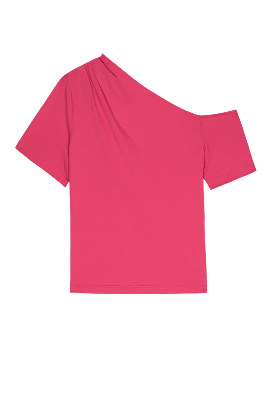 Your go-to tee got a chic upgrade. It’s a short sleeve tee in soft, lightweight Organic Cotton with pintucked details and an asymmetrical neckline that's perfect for showing some shoulder. If you’re into that. (This one comes in Hibiscus.)