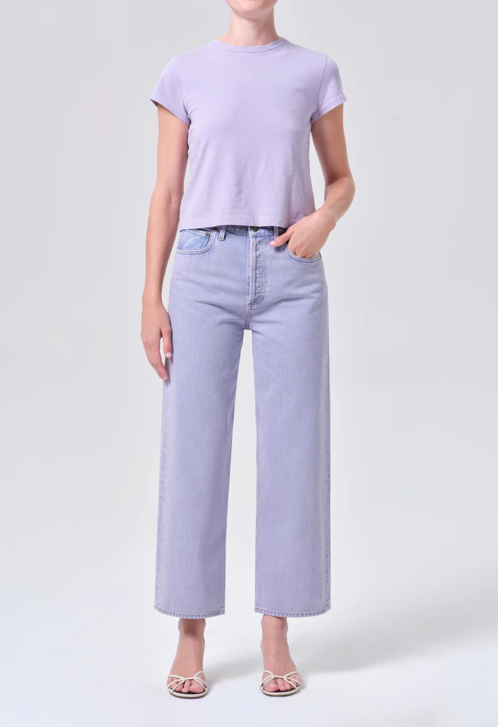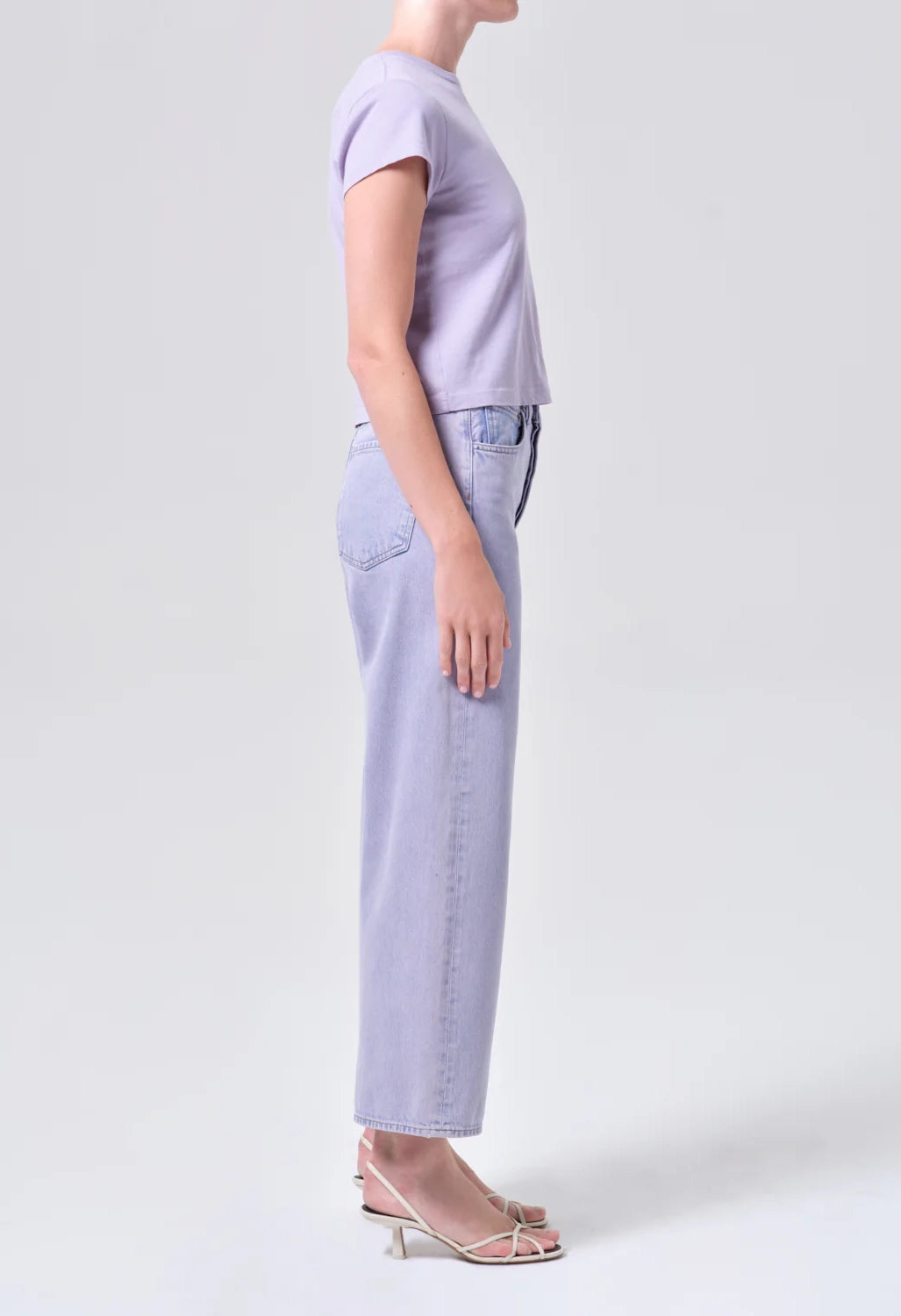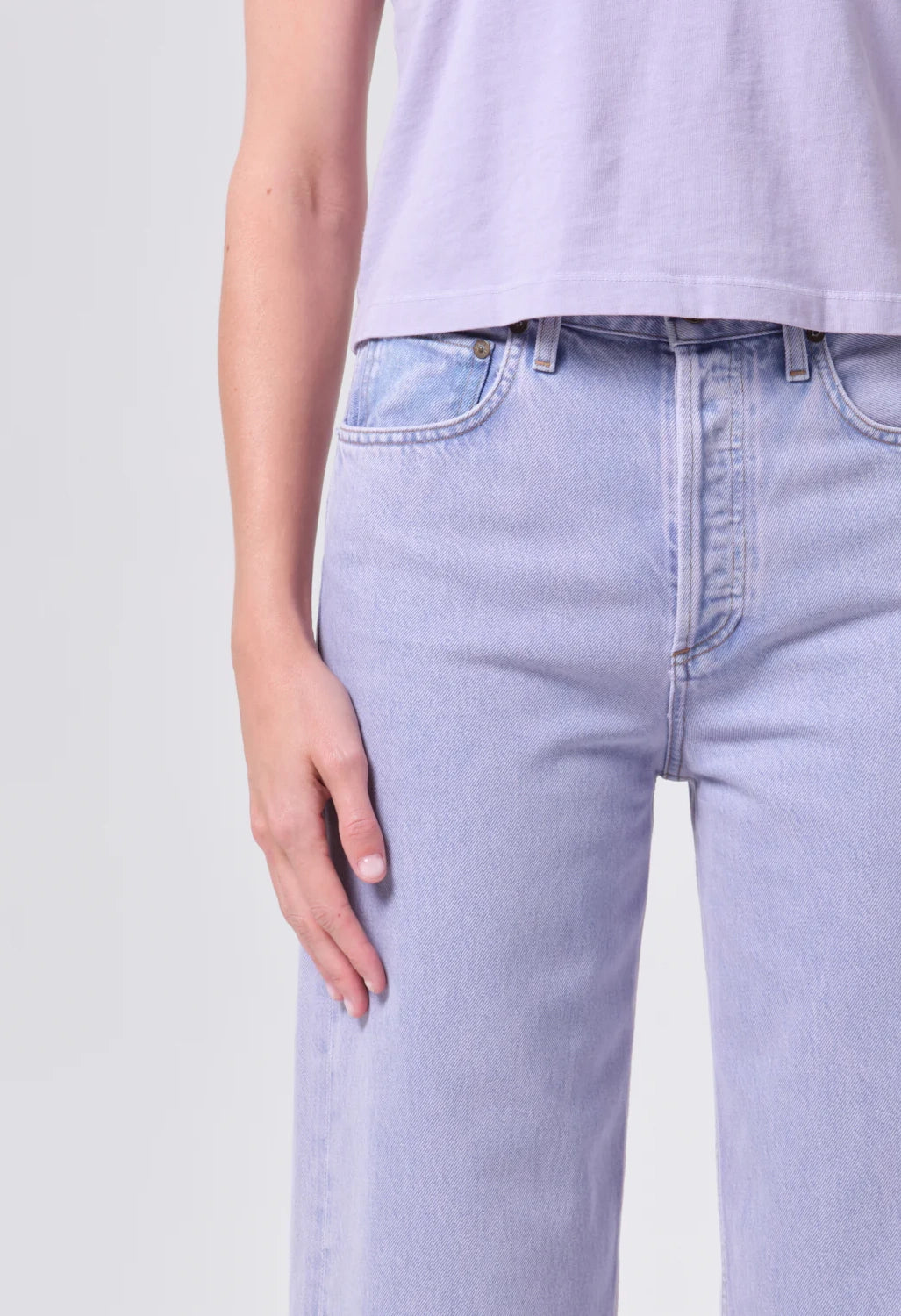 The Ren Jean features a high-rise, wide-leg cut with a flattering waist and relaxed fit. Made from a rigid cotton blend of regenerative and recycled materials, it holds its shape while feeling soft against the skin. The medium overdyed lavender wash adds a subtle, sophisticated color to this timeless style.