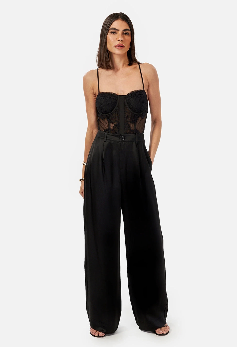 Featuring a sheer tulle body and lace detailing, this corset bodysuit offers a sultry yet elegant look. The boning and underwire construction provide support and shaping, while the adjustable straps and invisible zipper allow for a customizable fit.