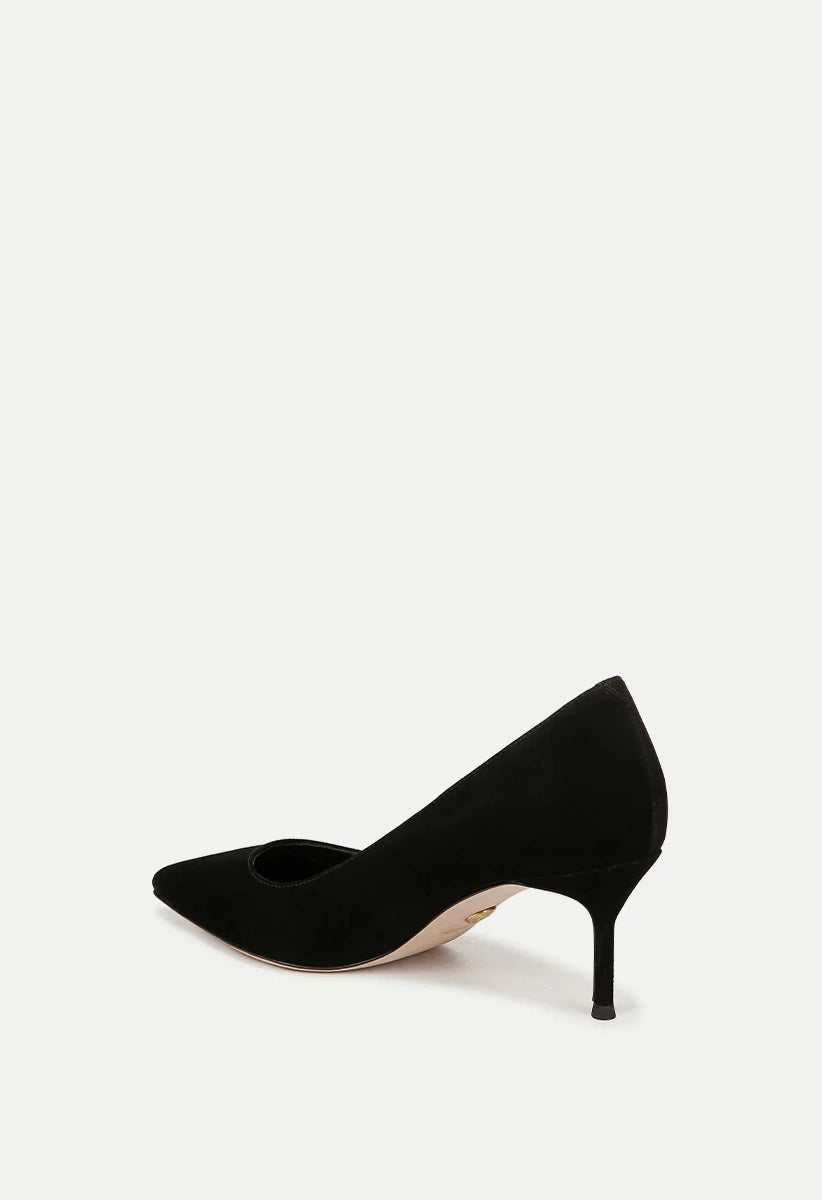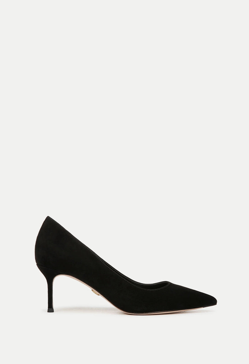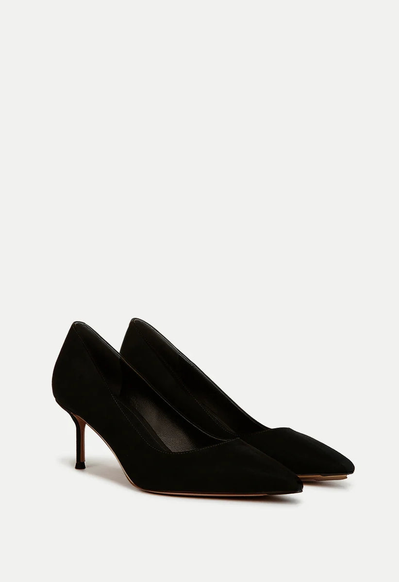Introducing your new essential pump. Meticulously made with premium suede, this classic design boasts a 2.5" heel, pointed toe, and comfortable leather footbed. Perfect for the office or social events.