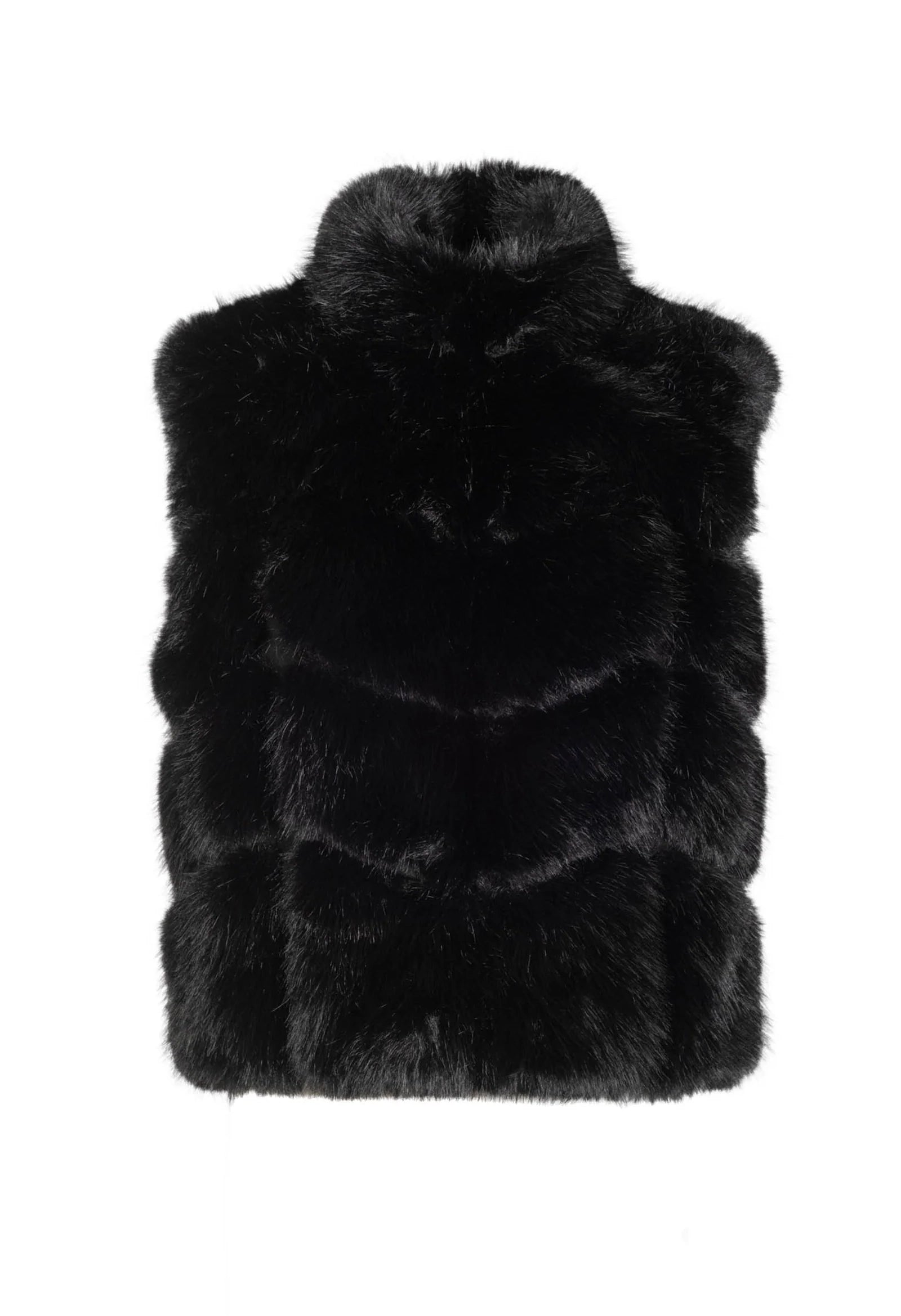 This chic faux fur vest keeps you cozy while elevating your outfit. Ideal for layering over tops and sweaters, it offers a sophisticated yet relaxed style. Its deep black hue and soft, plush fabric make it a versatile addition to both casual and dressy ensembles.