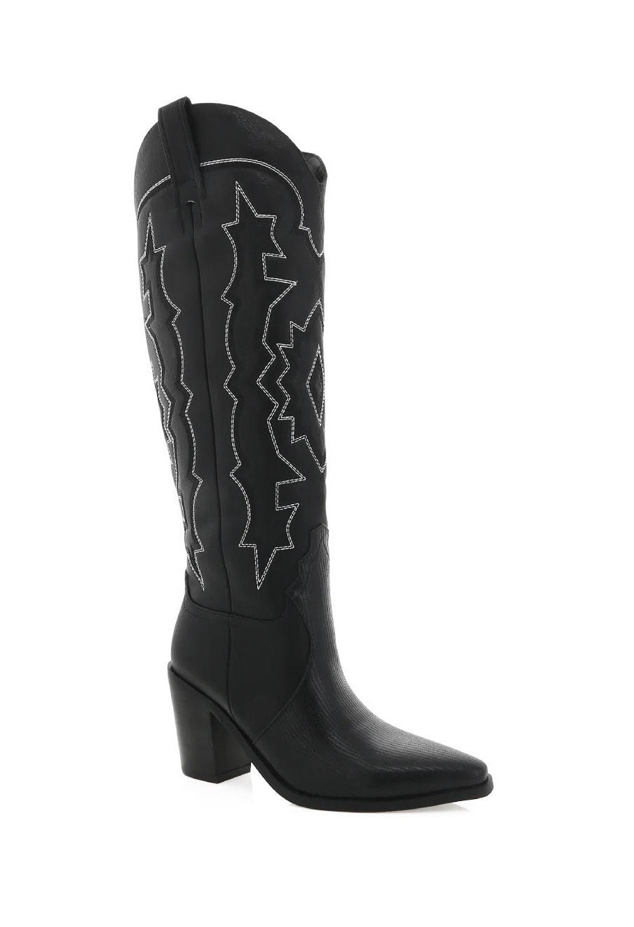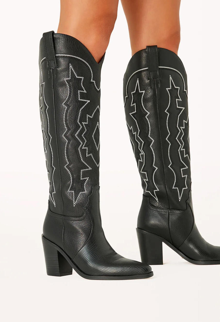 Elevate your after-dark dressing with this glam western boot, finished with a shiny scale texture and statement embroidery.