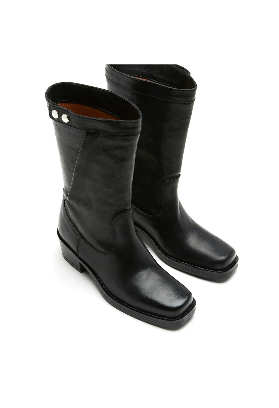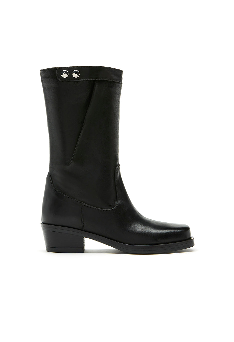 The Sadie boot offers a modern twist on the classic biker style, featuring soft draped uppers and distinctive silver snaps for a refined look. Designed with a low heel and squared toe, these boots provide comfortable all-day wear, seamlessly transitioning from day to evening with effortless sophistication.
