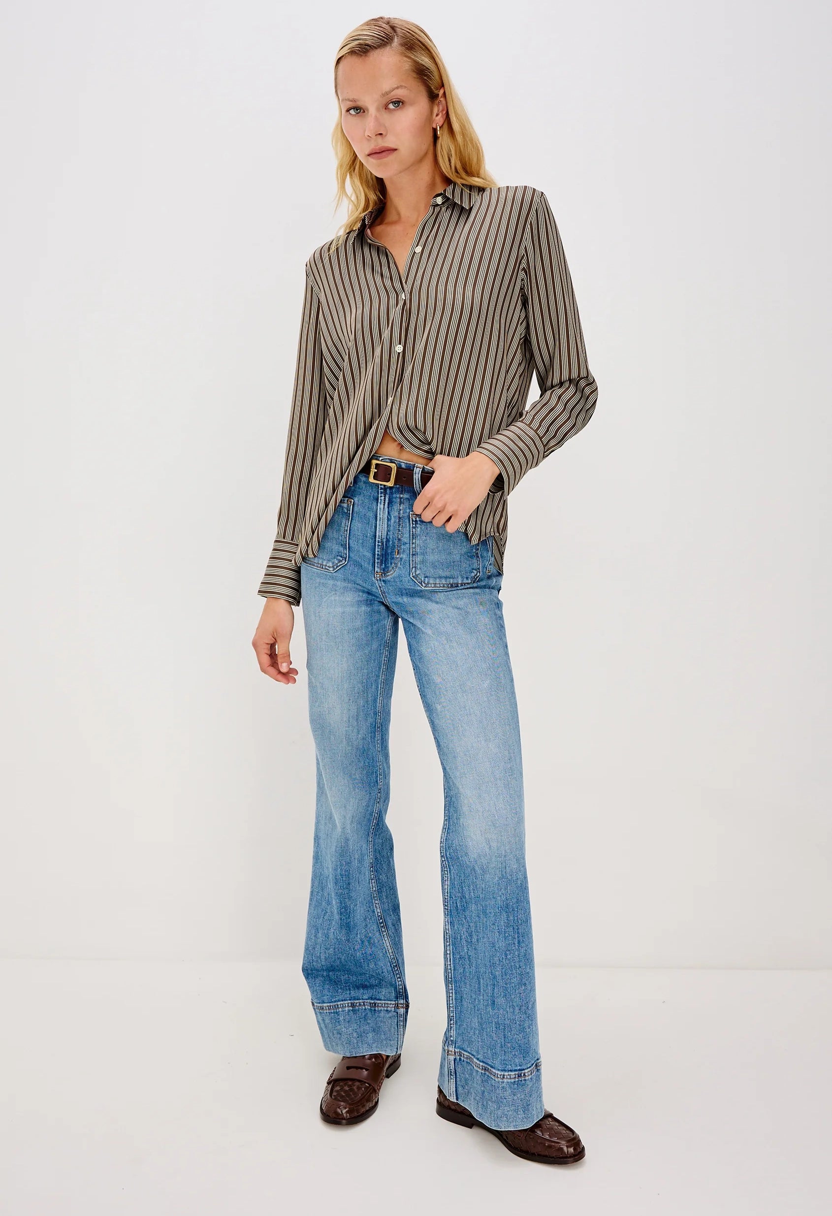 The Saige is the ultimate lightweight layer, made from supple, shiny twill. Contrasting collars and cuffs nod to heritage styles, making this the button-down you’ll reach for all season.