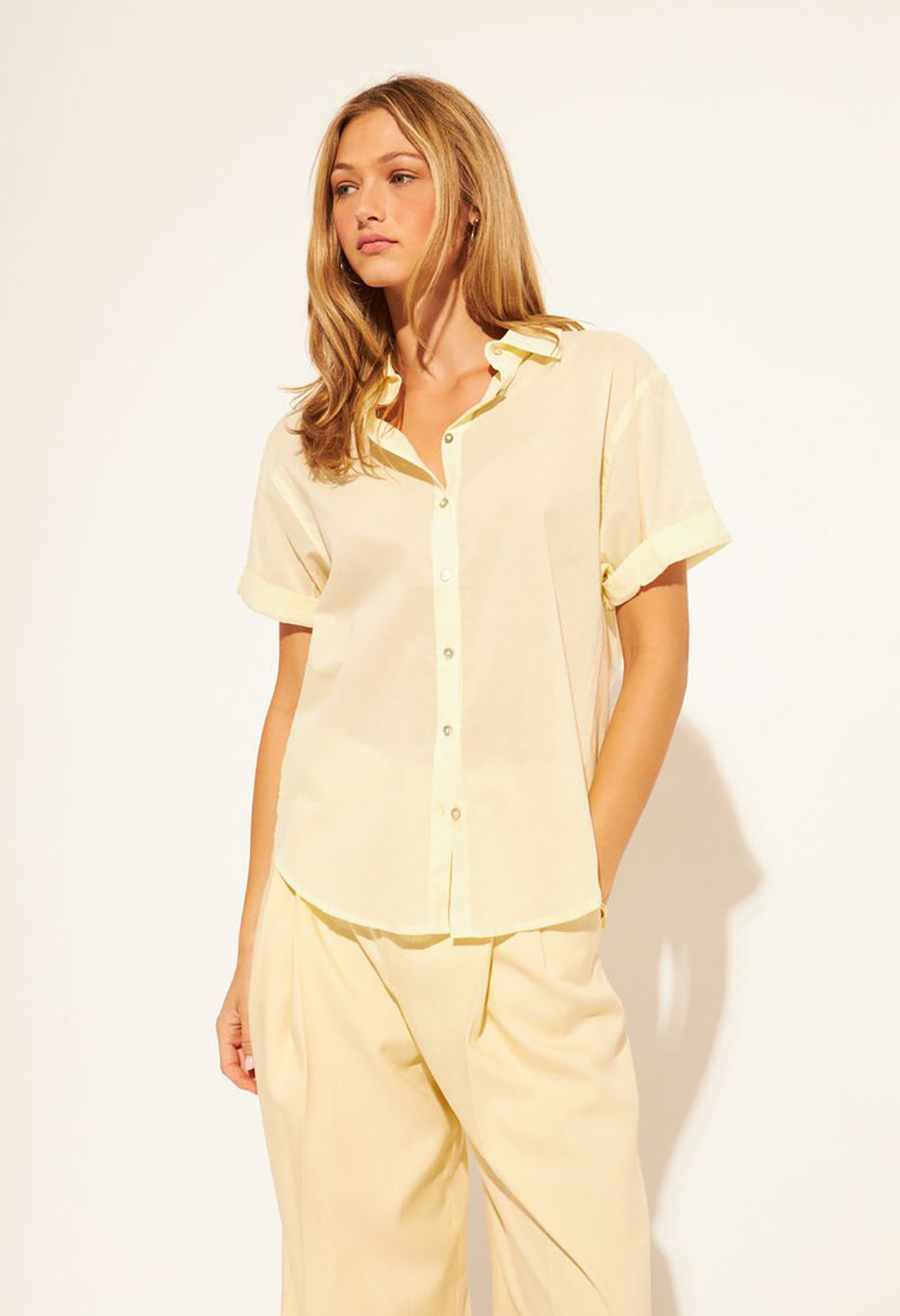 The Shay is a timeless short sleeve button-up shirt in a warm butter yellow that brings effortless sunshine to any wardrobe. Perfect for layering or wearing solo, this versatile piece transitions seamlessly from casual weekends to relaxed office settings. The classic button-front design offers easy styling, while the soft fabric ensures all-day comfort. A wardrobe essential that pairs with everything from denim to tailored trousers.