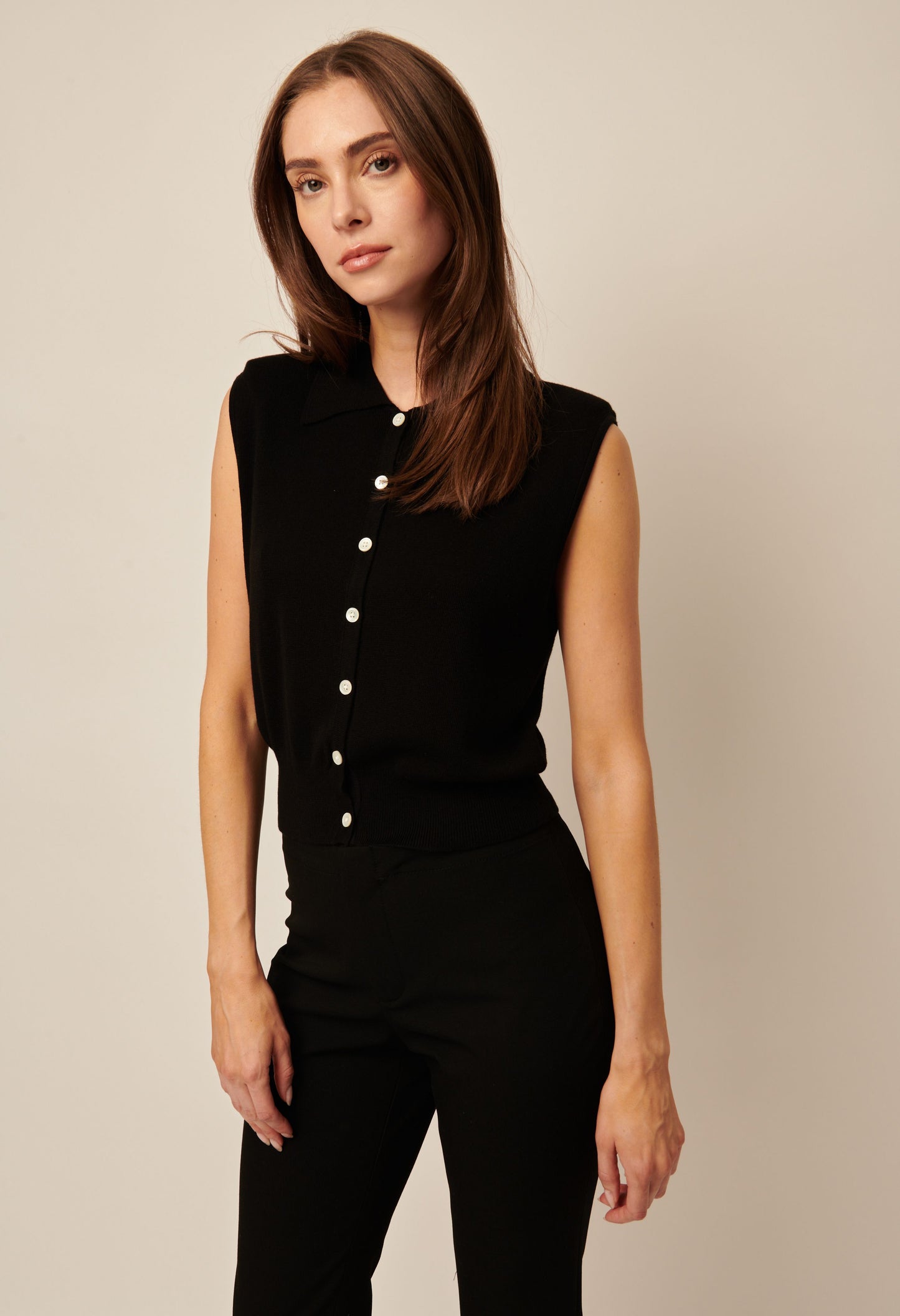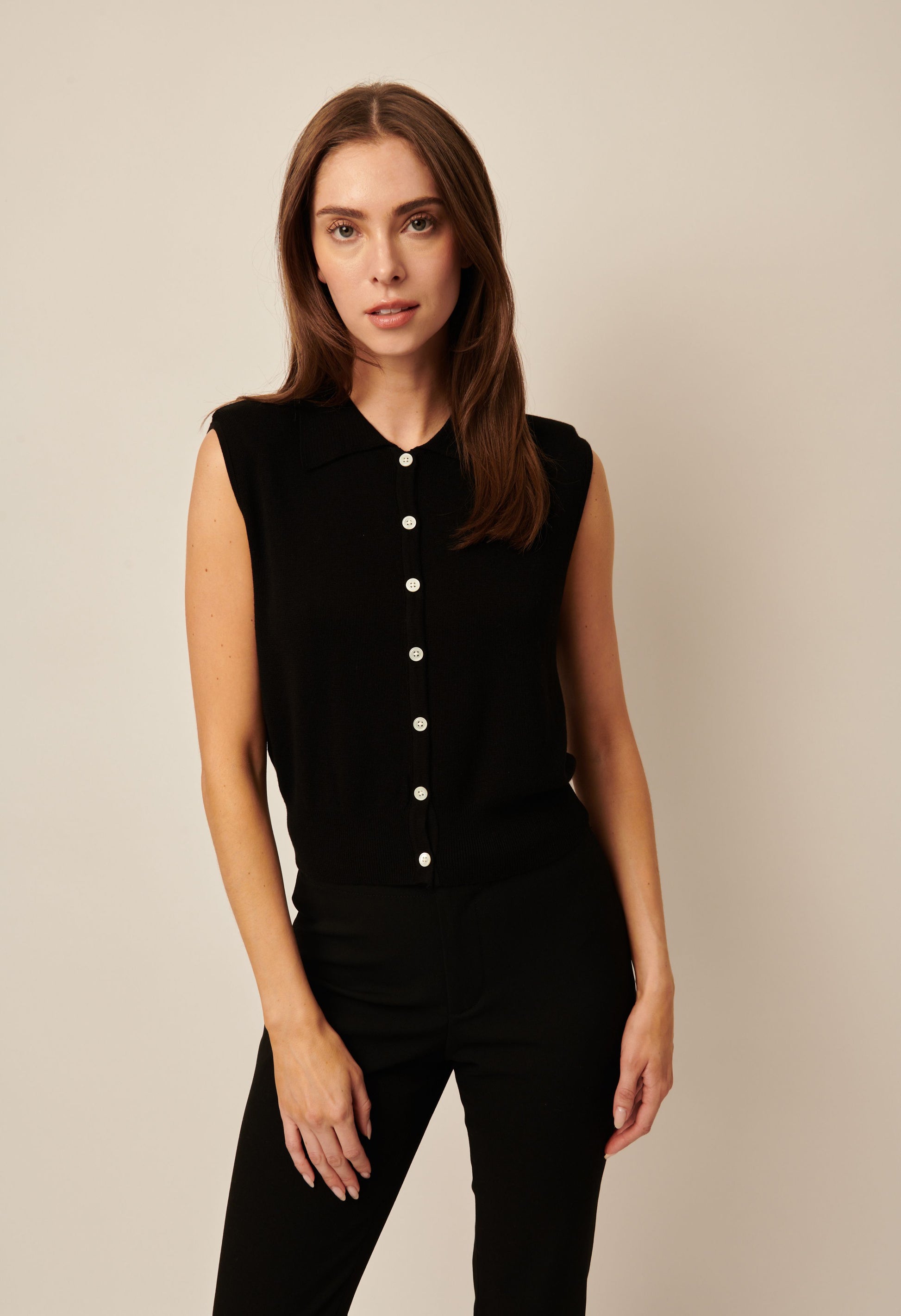Elevate your professional wardrobe with Shiloh, a collared sweater vest that adds a touch of sophistication to any outfit. This versatile piece provides effortless style and comfort, making it a must-have for any fashion-forward individual. Look polished and put-together in Shiloh.
