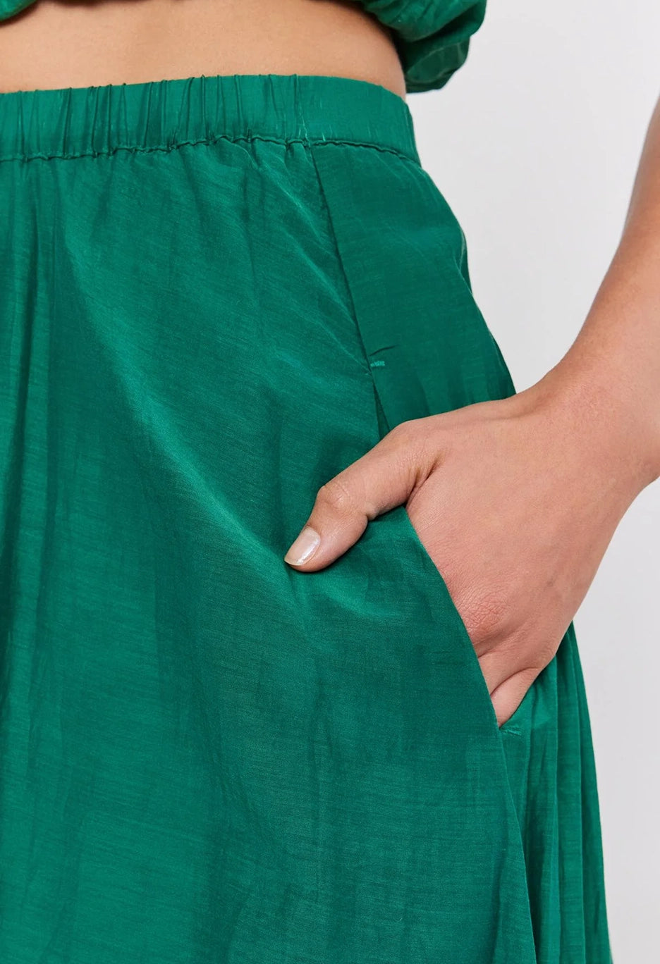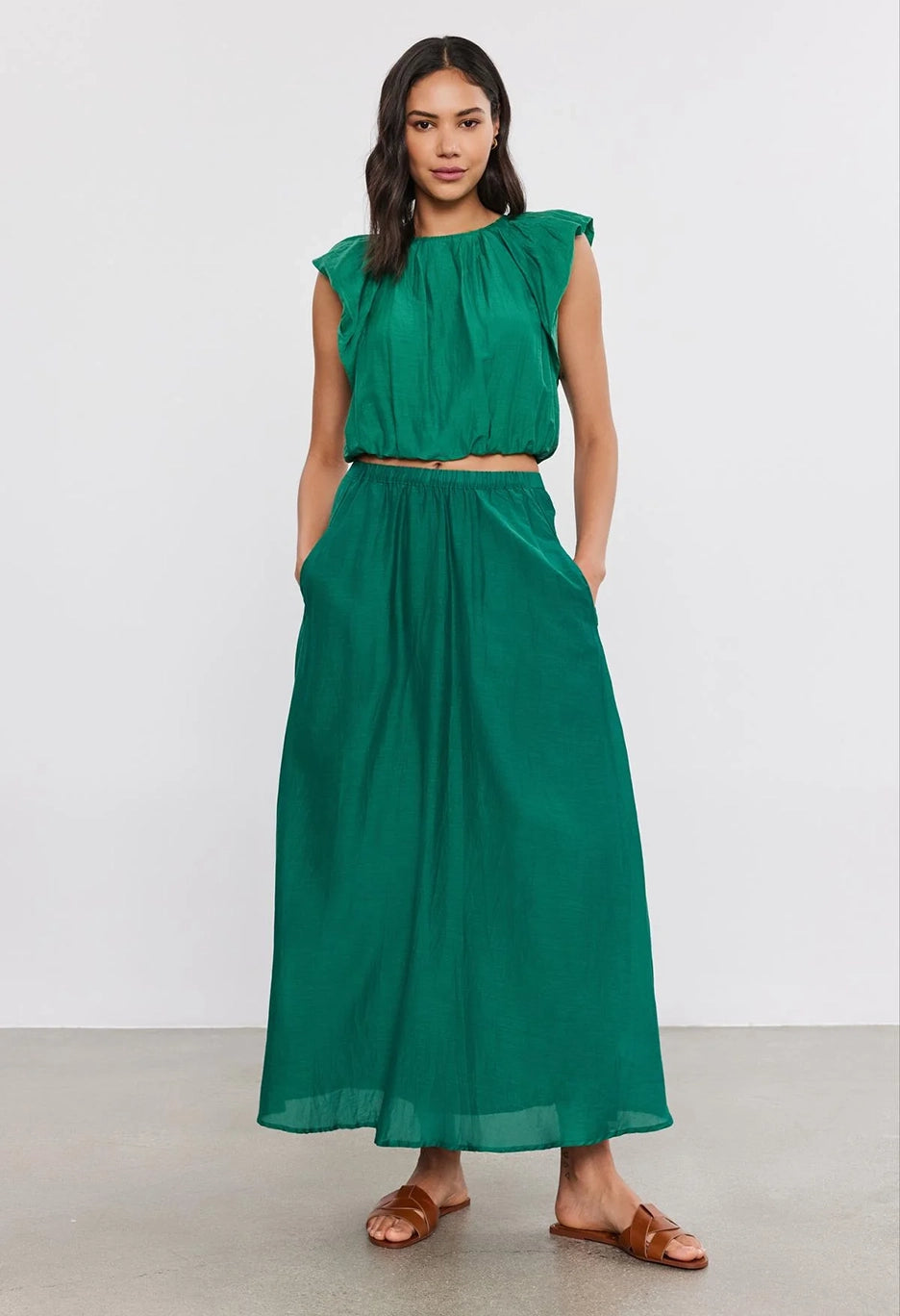 A new silhouette for now and later. Crafted from a silk cotton voile that has a hint-of-sheen, this lined maxi has a beautiful drape, as well as the always-needed pockets. Dress it up or down.