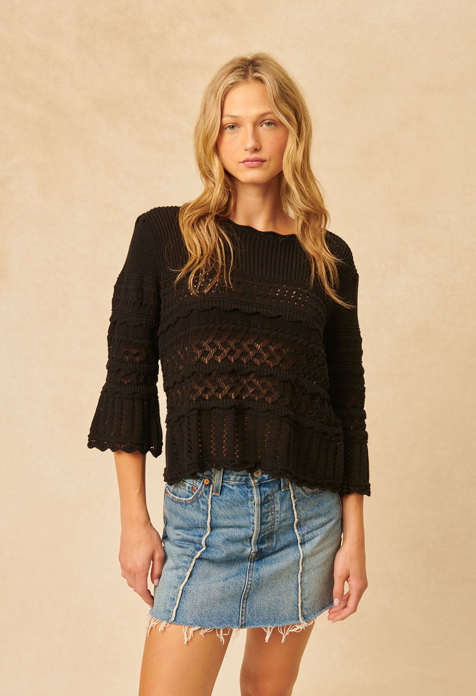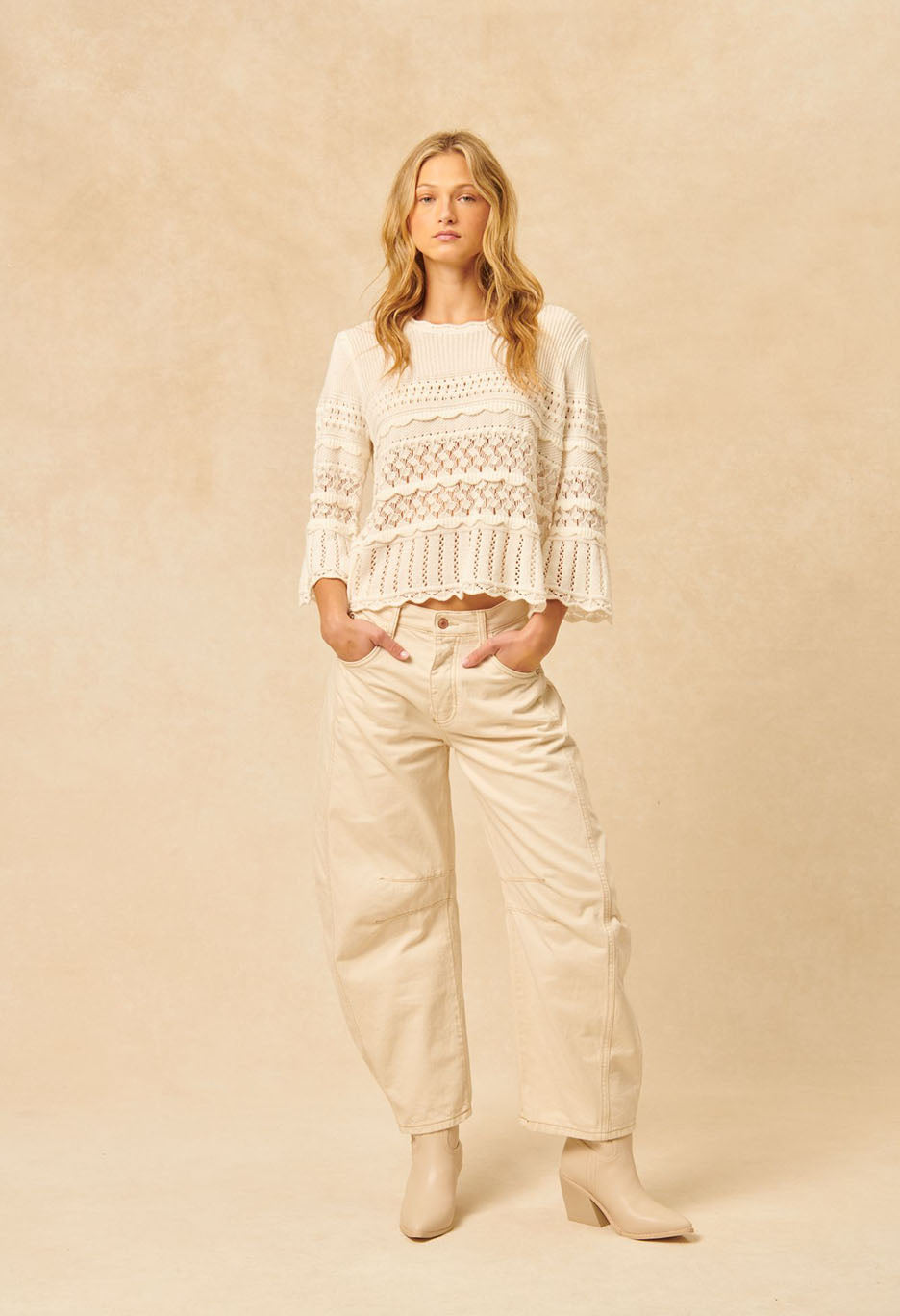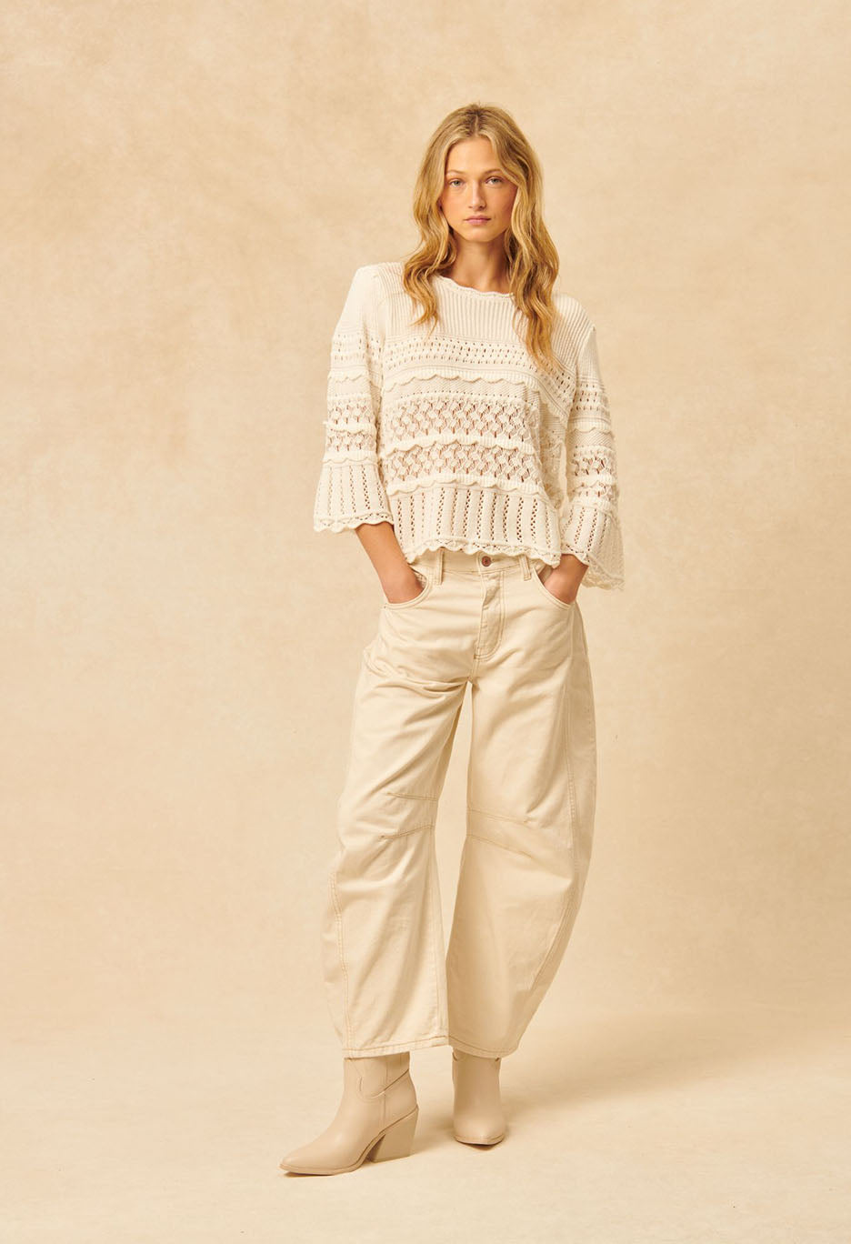 Add a touch of elegance to your wardrobe with the feminine Silver sweater. With 3/4 length sleeves, this sweater is perfect for any occasion. Stay stylish and comfortable at the same time.