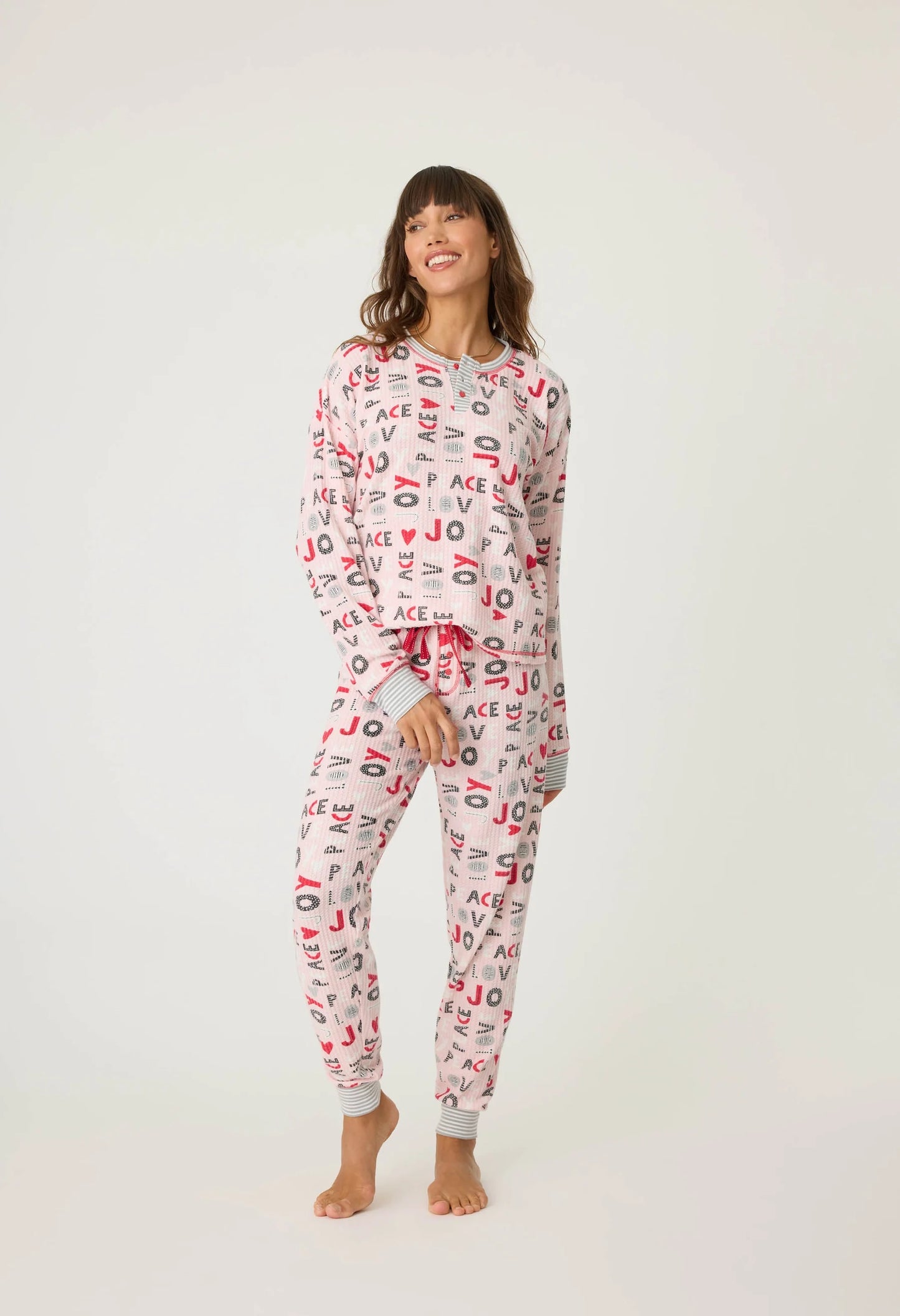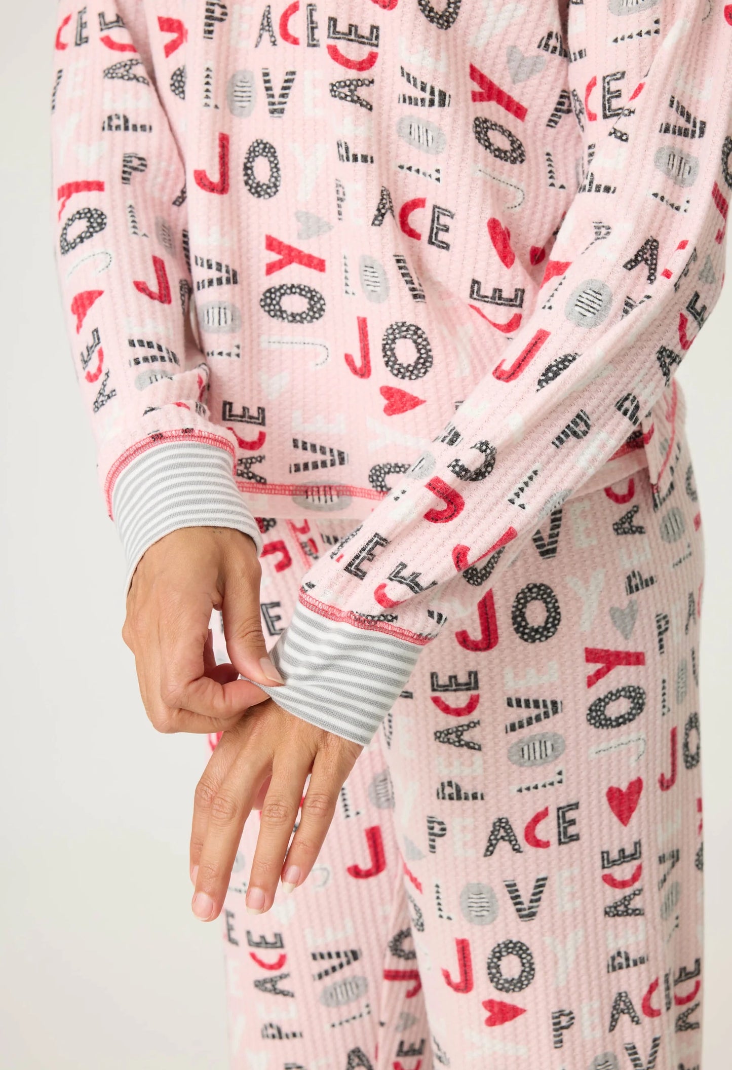 Spread a little holiday magic in a classics ski jammie set featuring an uplifting pattern. These cozy ski jammies are perfect for festive gatherings or relaxing at home while celebrating the season. With soft brushed thermal fabric that feels as warm as your holiday spirit, these winter PJs are the ideal choice for spreading cheer and comfort during this wonderful time of year!
