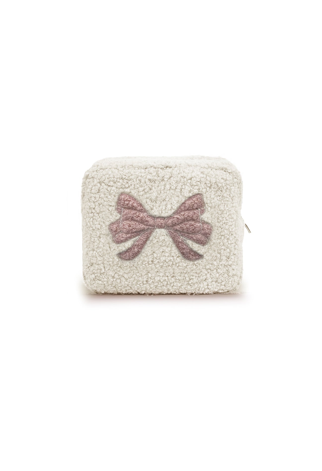 The Small Bow Bag is the perfect accessory for stylishly storing your cosmetics. Made from plush chenille, this bag features a cute bow detail that adds a touch of charm to your collection. Keep your beauty essentials organized and easily accessible while on the go.