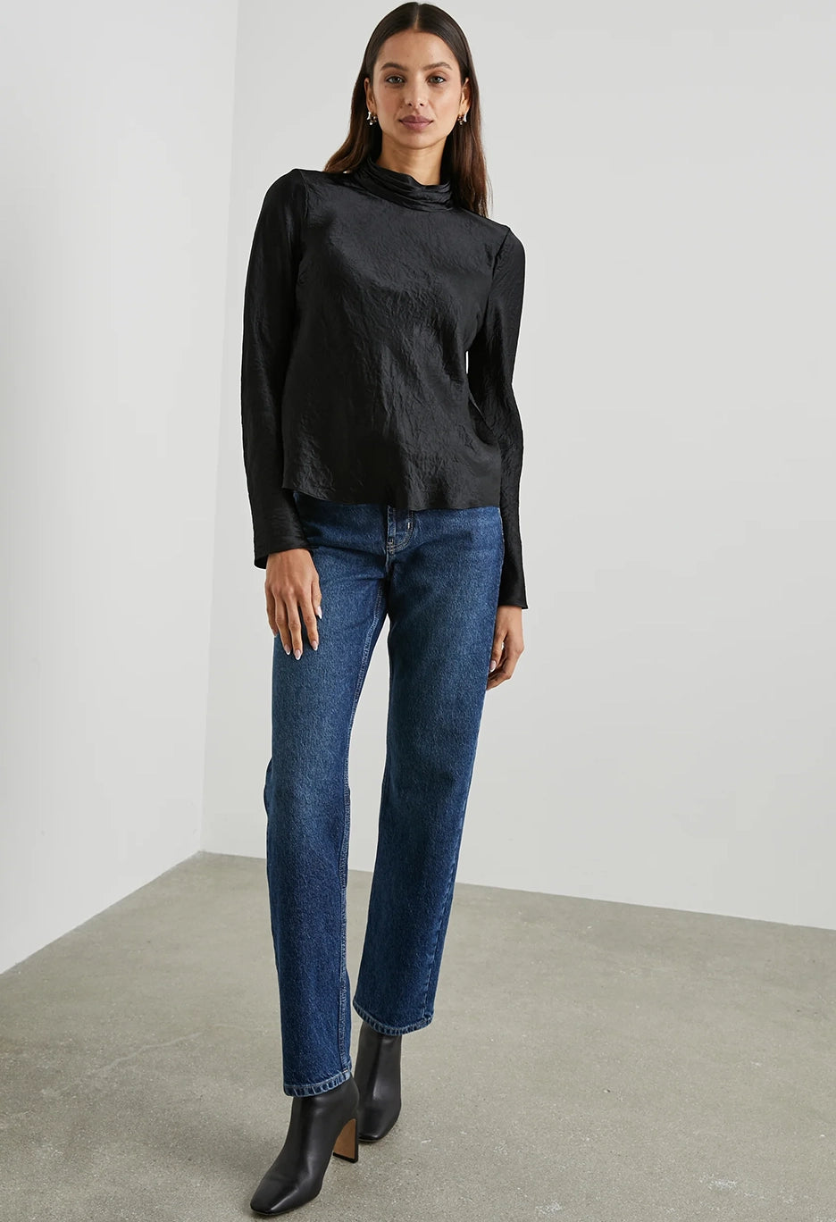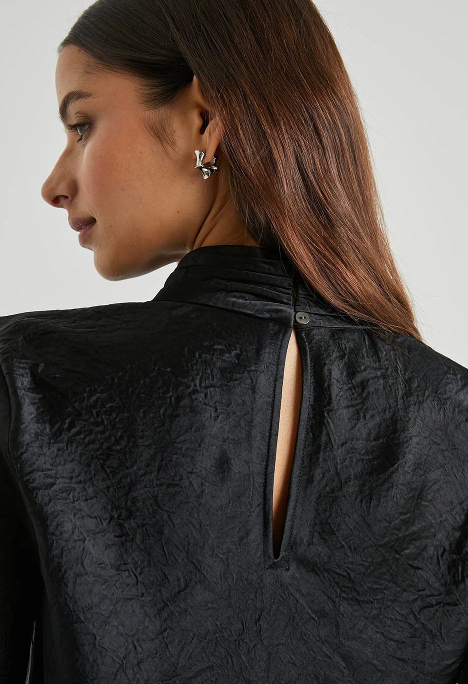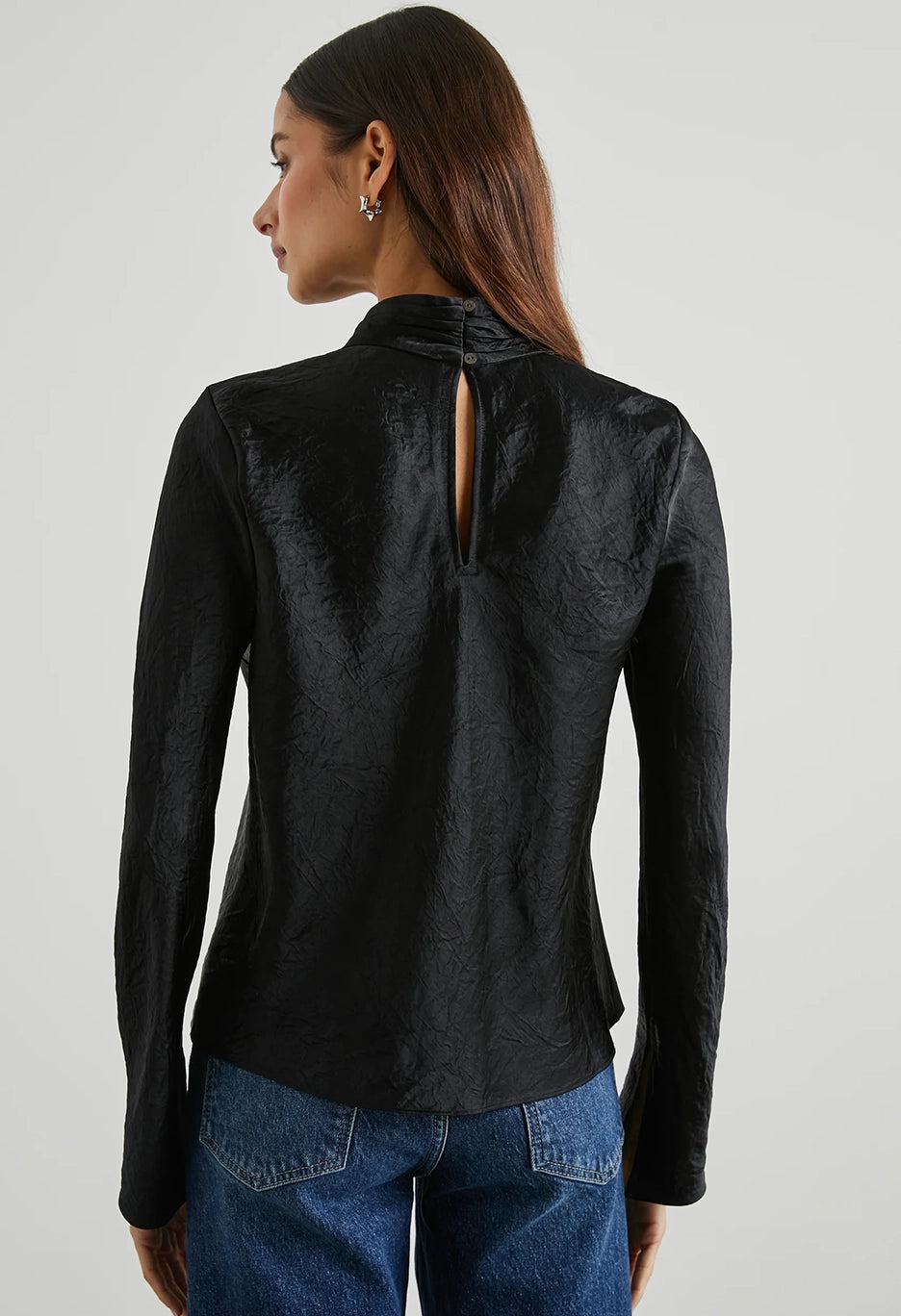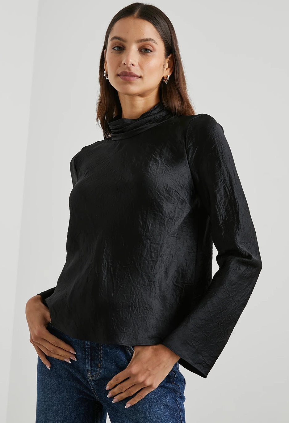 On crisp evenings, opt for this stunning shiny top cut from luxe crinkle satin. With a ruched turtleneck-style collar and full-length sleeves, the Soleil is both simple and sophisticated. Pair yours with denim, slacks, or the matching Ebony Skirt.