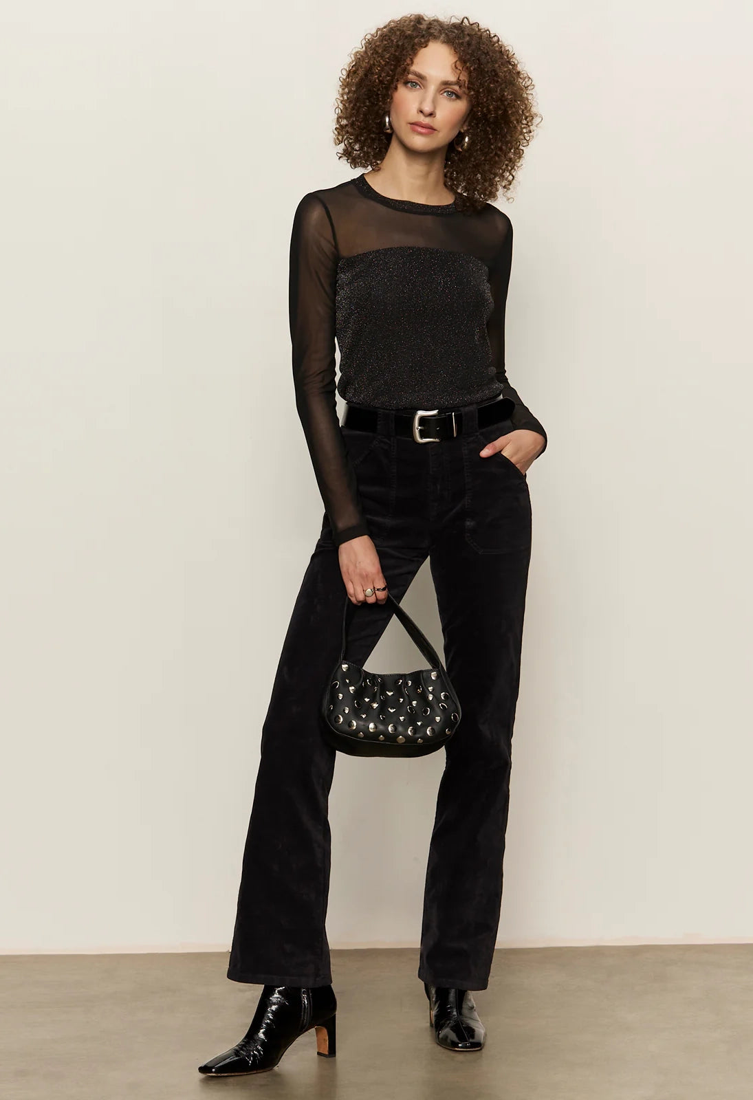 The Sparkle Mesh Crew Tee combines contemporary style with everyday comfort. This lightweight long sleeve top features a shimmering sparkle bodice that catches the light beautifully, paired with breathable mesh construction for all-day wearability. The fitted silhouette flatters your frame while the crew neckline offers classic versatility. Simply pull it on for effortless dressing—perfect for layering or wearing solo. Whether you're heading to the office or out for the evening, this piece adds a touch of glamour to any wardrobe.
