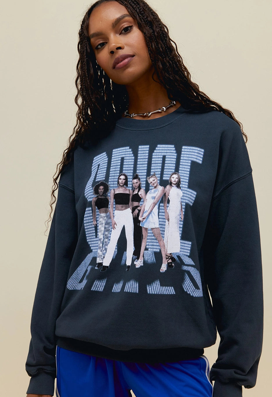 Consider this your Spicemania souvenir. Still holding a special place in the hearts of their female fanbase around the globe, the Spice Girls rose to serious fame and the world never looked back. An iconic portrait of the girl group hits this versatile crew featuring their group name in what’s reminiscent of live stage letters.