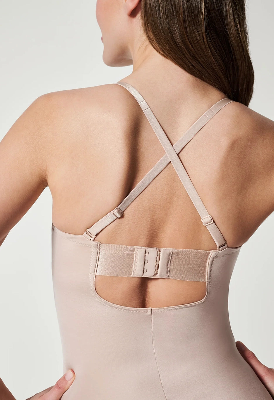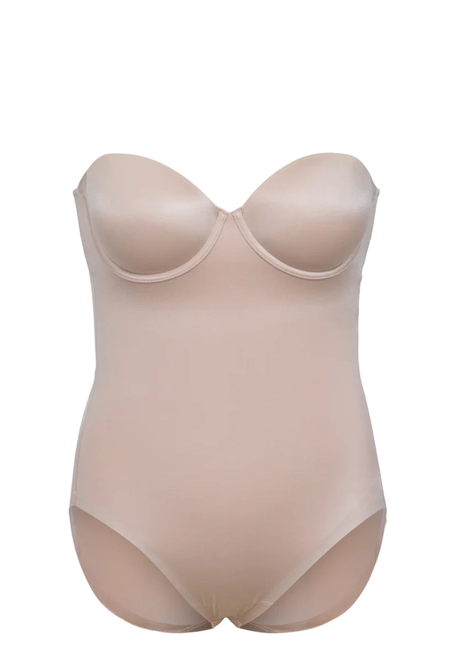 The Suit Your Fancy Strapless Cupped Panty Bodysuit is the ultimate strapless solution for when you’re getting glam! Plus, the panty construction is the perfect solution for shorter hemlines and high-slits. Removable, adjustable, and convertible straps offer versatility, while the sleek shaping fabric works its magic “backstage” to ensure your style gets all the applause.