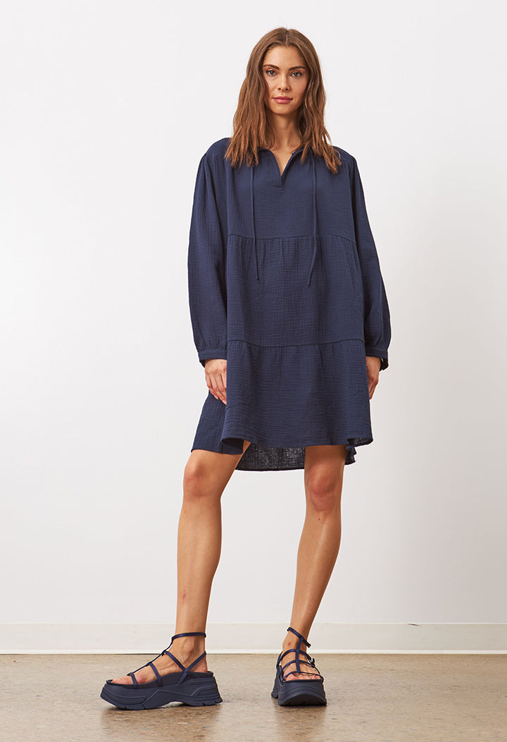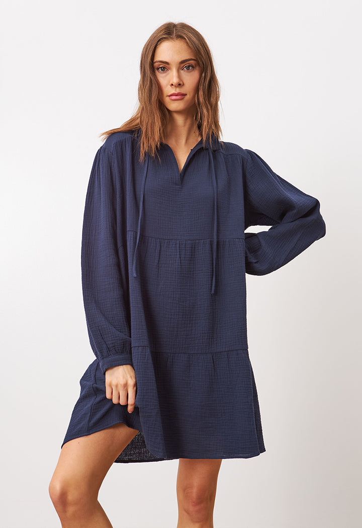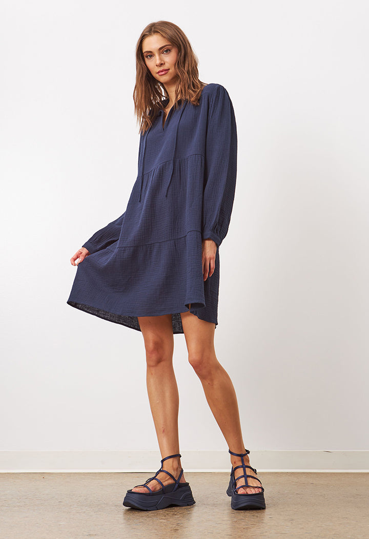 Experience effortless style and comfort with the Sunny dress. Made from lightweight cotton, this dress features soft tiering throughout the silhouette for a flattering and flowy look. Perfect for any occasion, the Sunny dress is a must-have addition to your wardrobe.