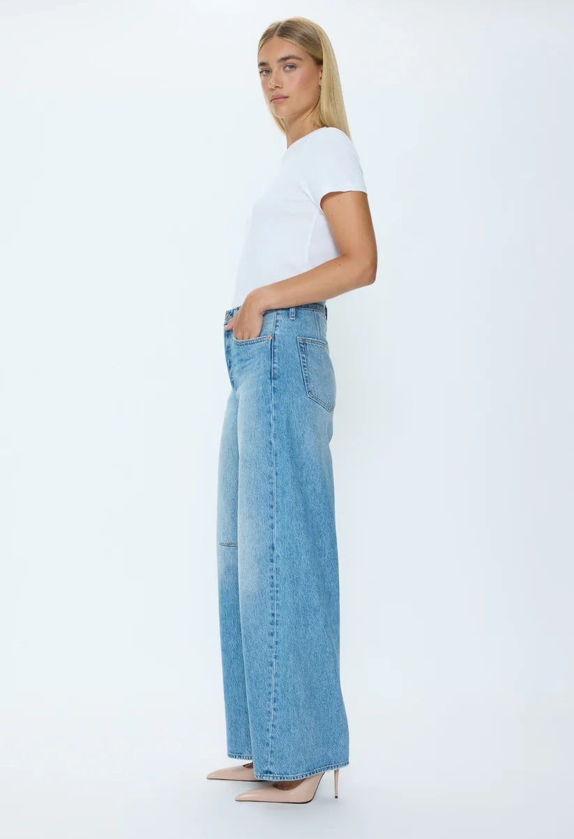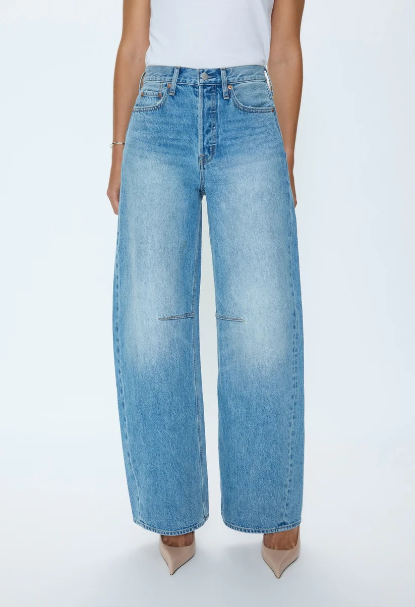 The Sydney Pant reimagines classic wide-leg denim with a bold silhouette. Crafted from sturdy 100% cotton, it features a high-rise waist and dramatically curved legs that add striking dimension to your everyday wardrobe. The full-length hem creates an elongated, proportioned look while delivering contemporary style with timeless appeal.