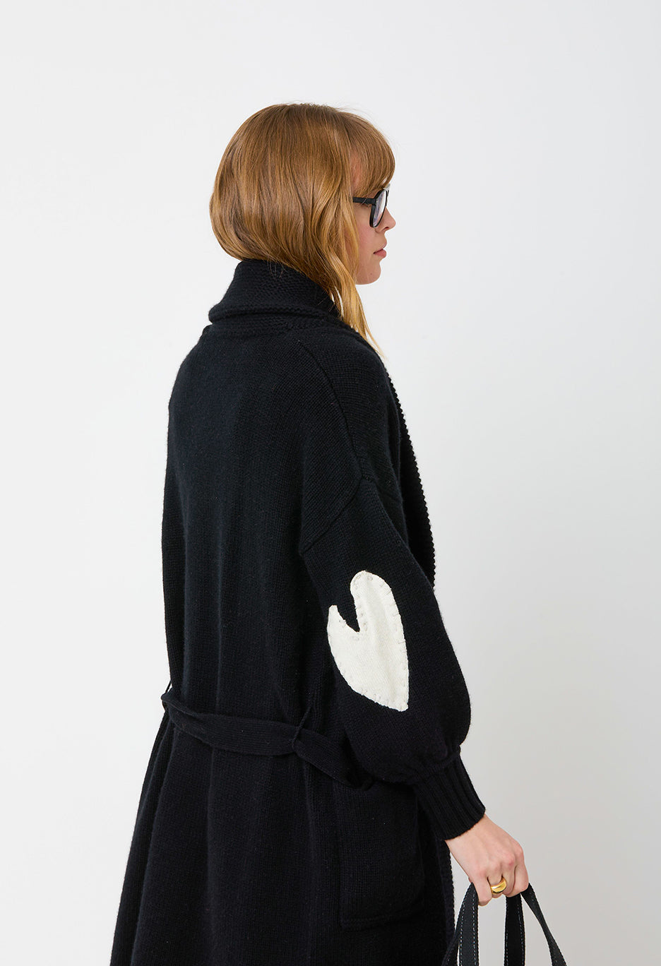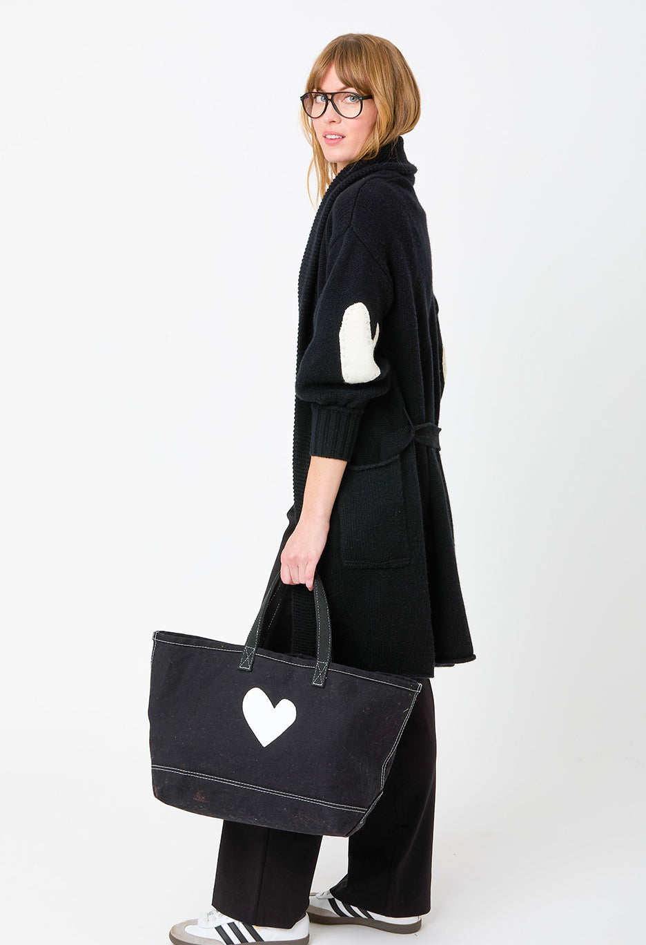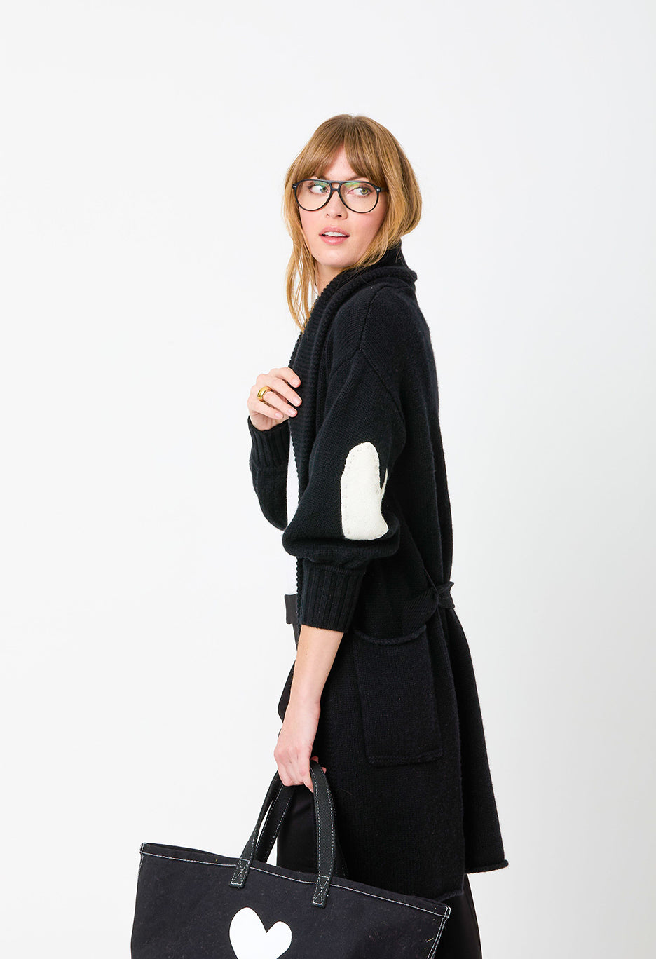 The Take Away Duster is 100% cotton. Whether you are heading away for the weekend or simply out and about, this shawl-collar duster with 'imperfect heart' elbow patches completes any and every look!