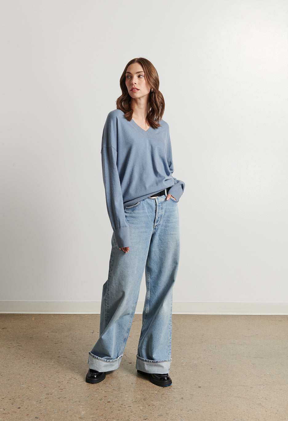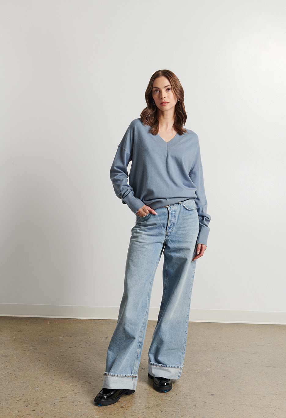 The Taylor Sweater offers a relaxed, loose fit combined with a casual v-neck design, perfect for layering or wearing on its own. Crafted for comfort and everyday style, this sweater provides a versatile addition to your wardrobe that effortlessly blends ease and sophistication.