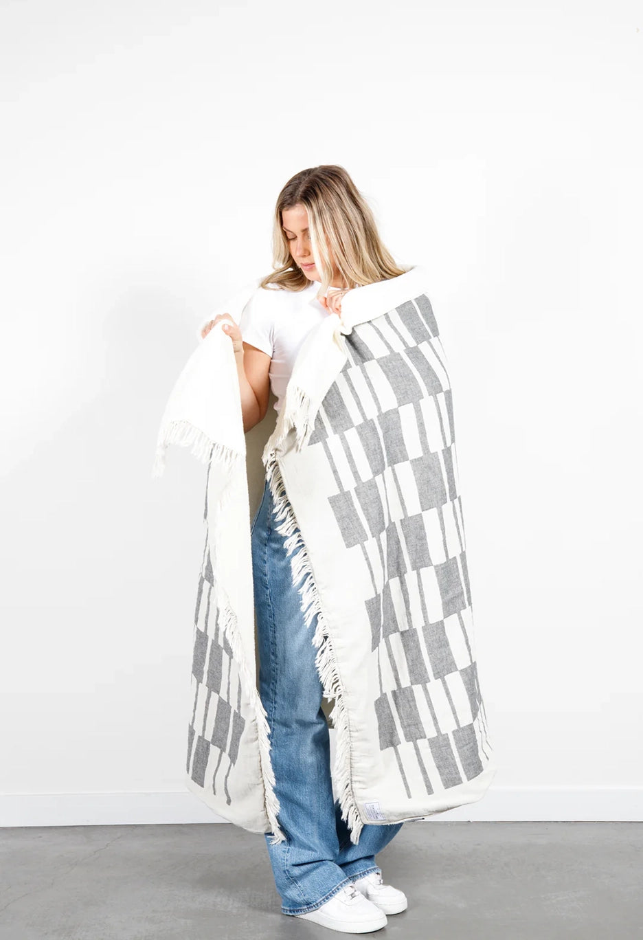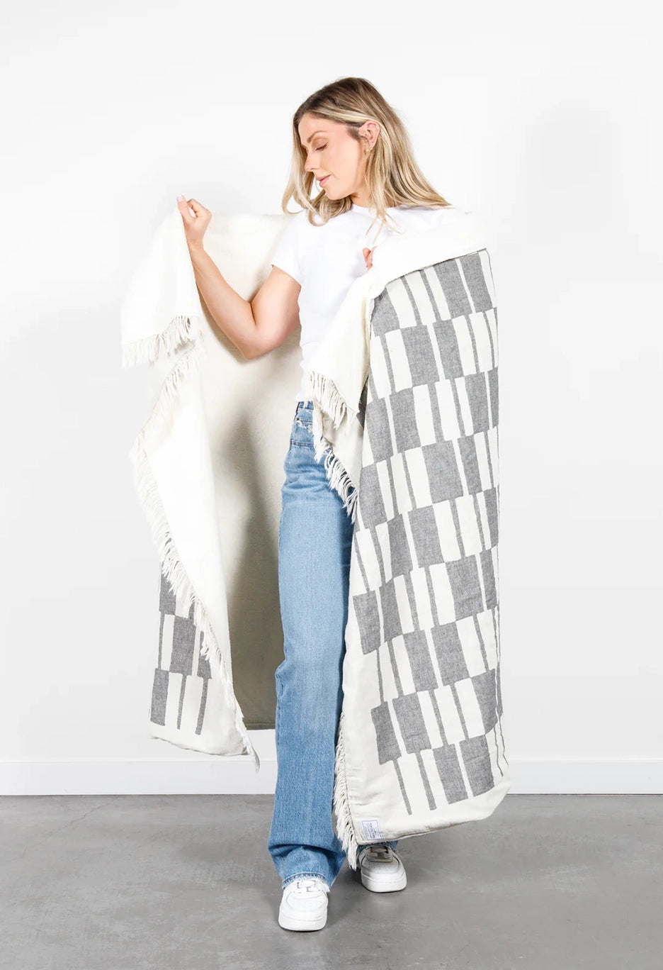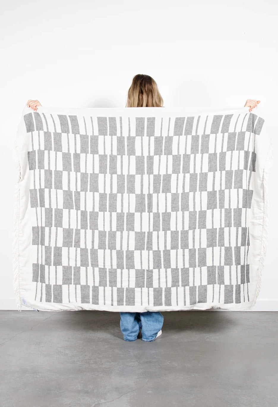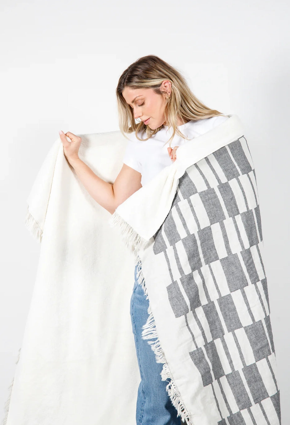 The Vance Fleece Throw adds cozy texture to your home with its abstract plaid design in neutral tones. Featuring woven Turkish cotton on one side and super soft cotton fleece on the other, this throw is perfect for cuddling up on chilly days. A versatile gift or addition to any cozy space.