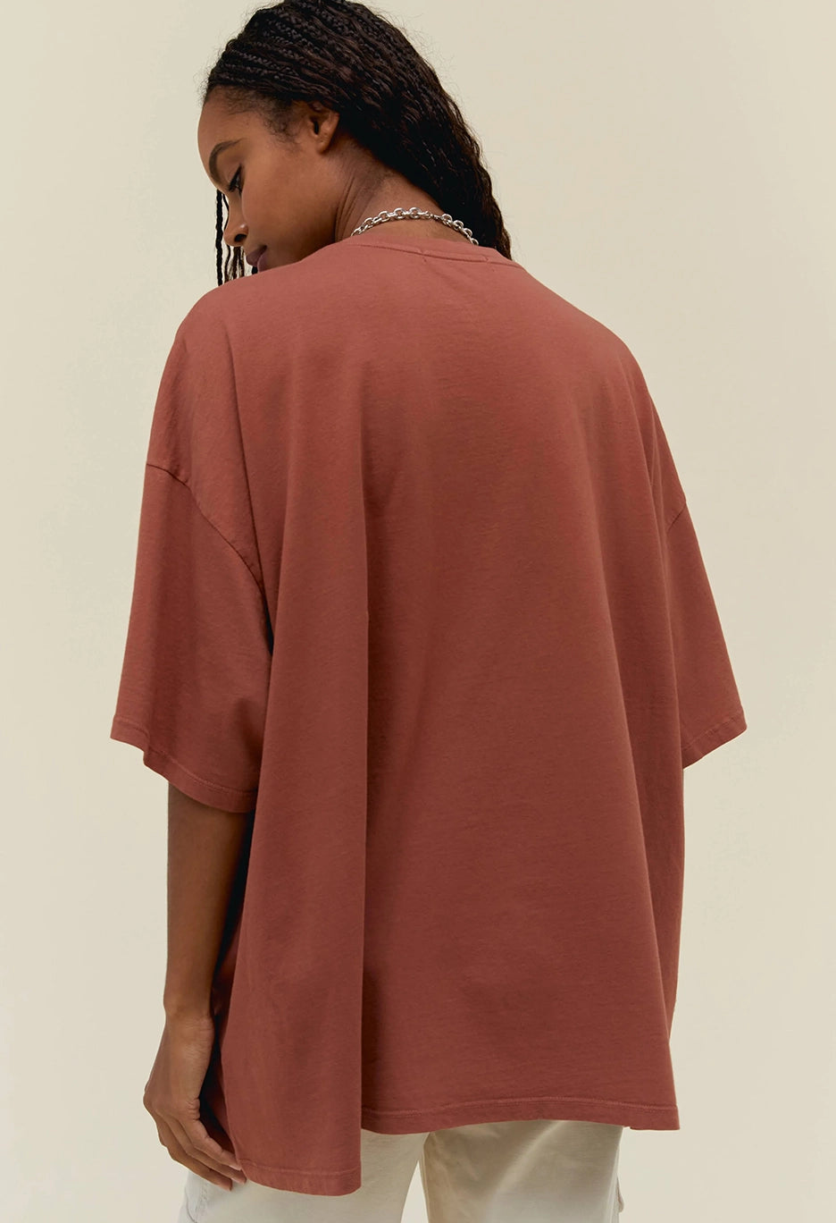 - Exaggerated oversized tee that can be worn baggy with denim or perfect with a pair of bike shorts