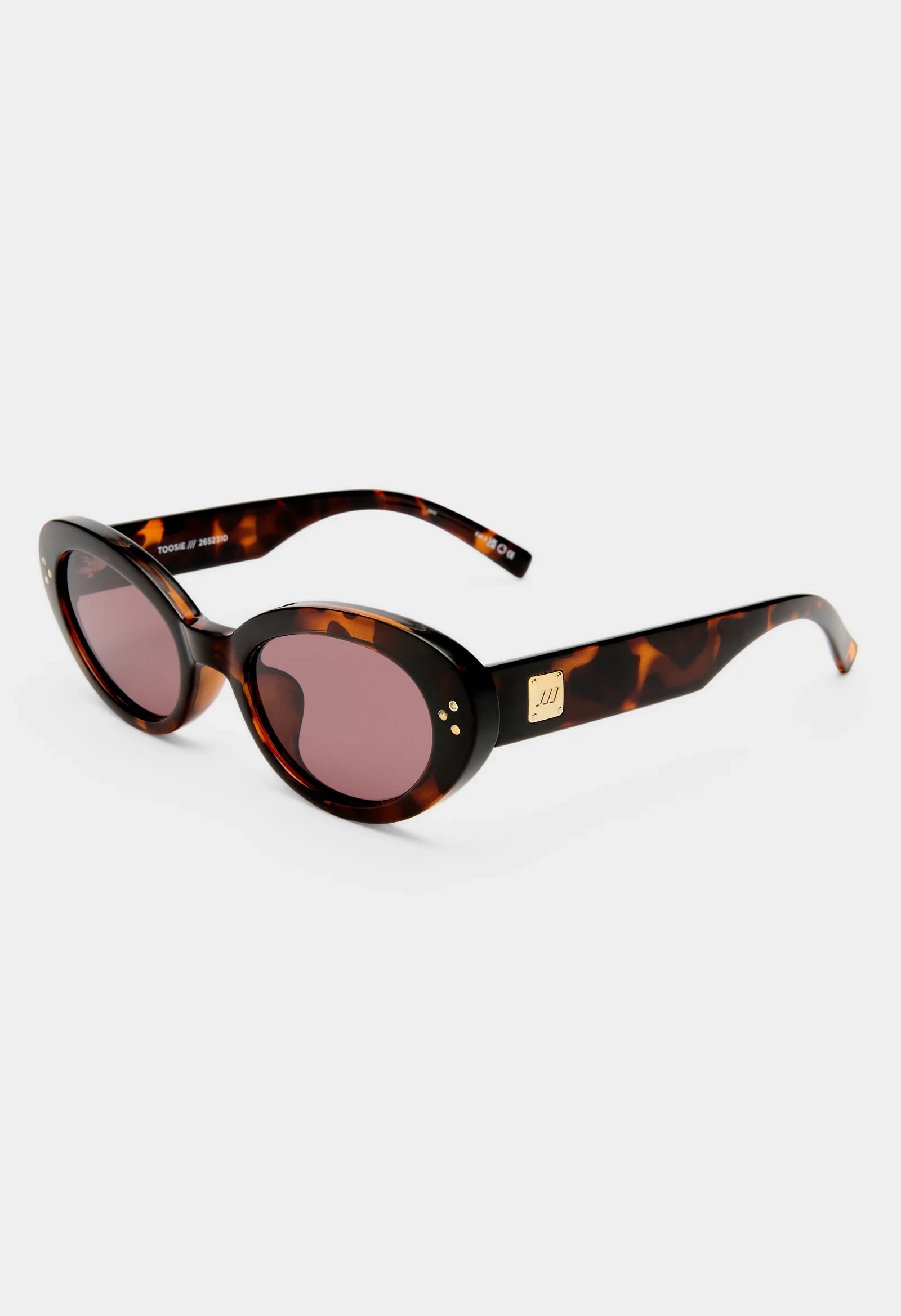 TOOTSIE reimagines the classic cat-eye with playful curves and an uplifted, expressive silhouette. Wide temples and Le Specs' iconic metal logo detail create a bold, retro-inspired frame that balances sculptural design with feminine charm.