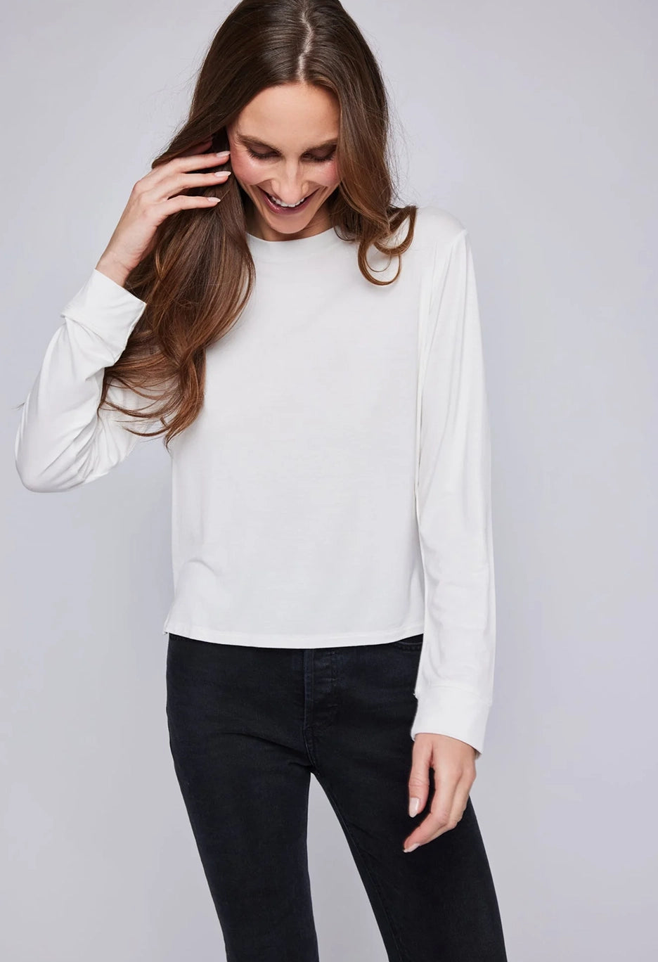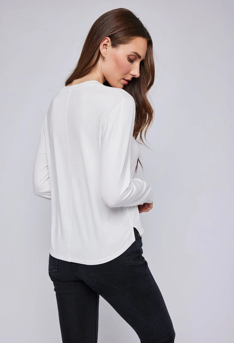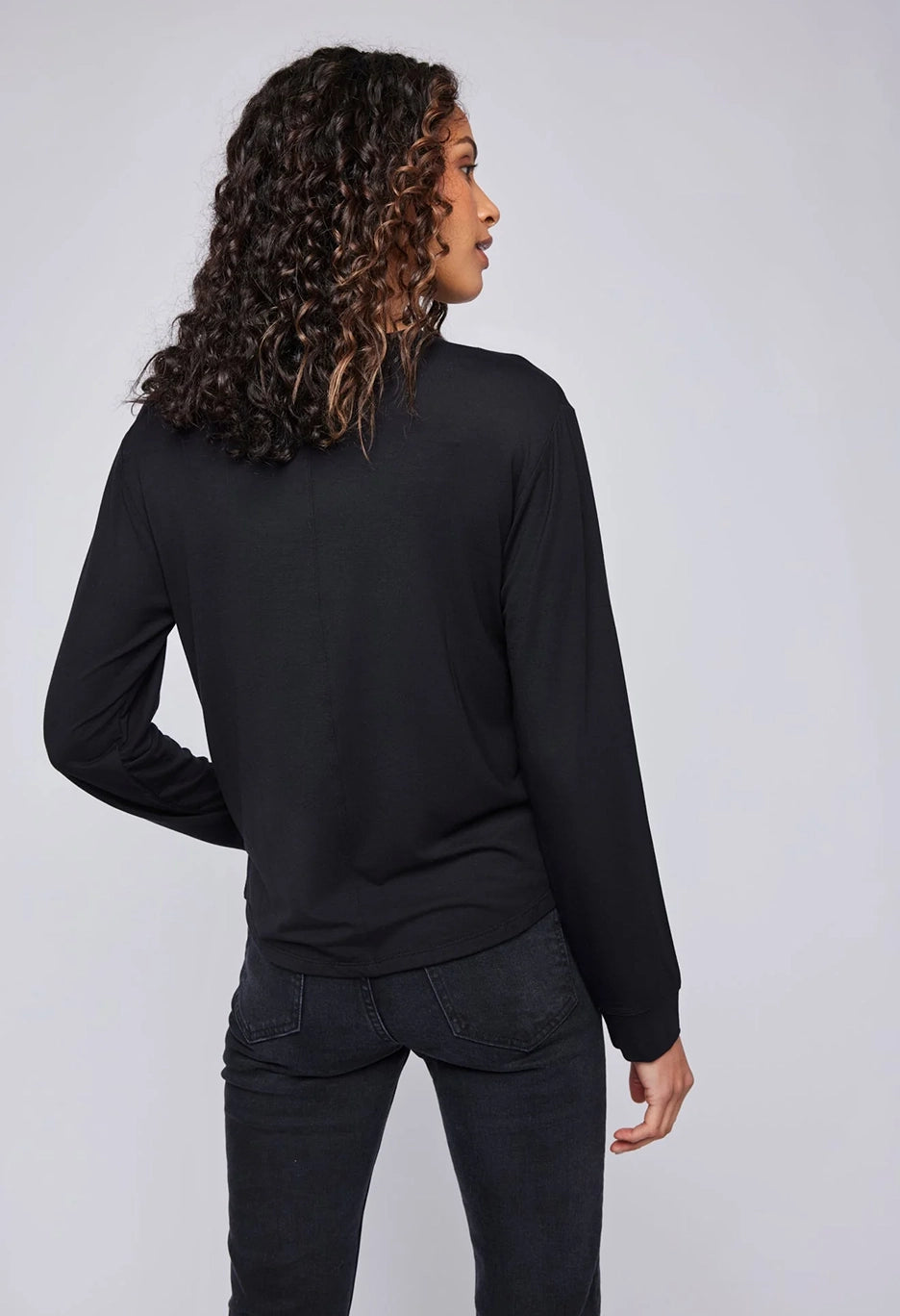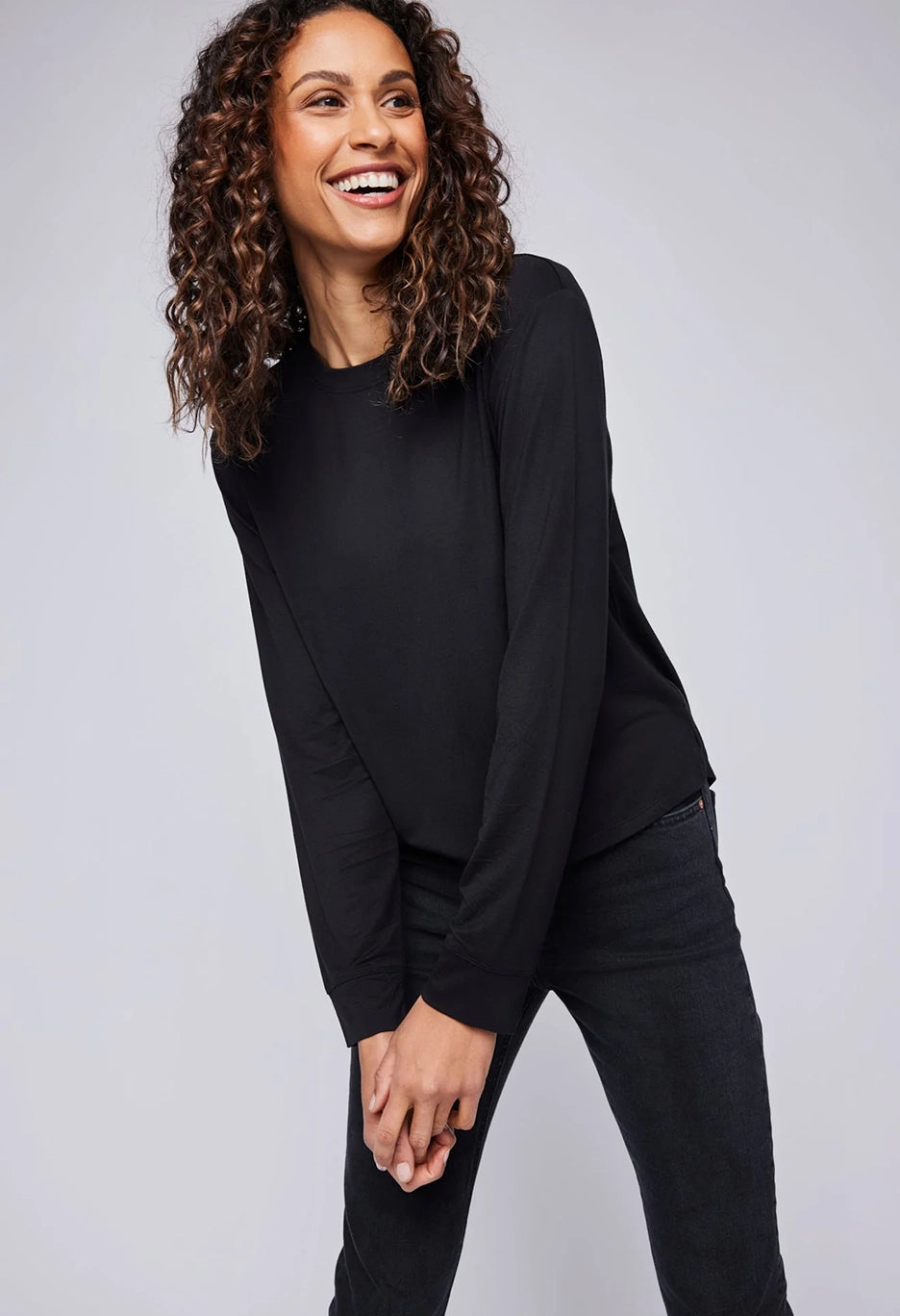 The Trudy is made of super soft EcoVero rayon jersey. Features include a crew neckline and side slits