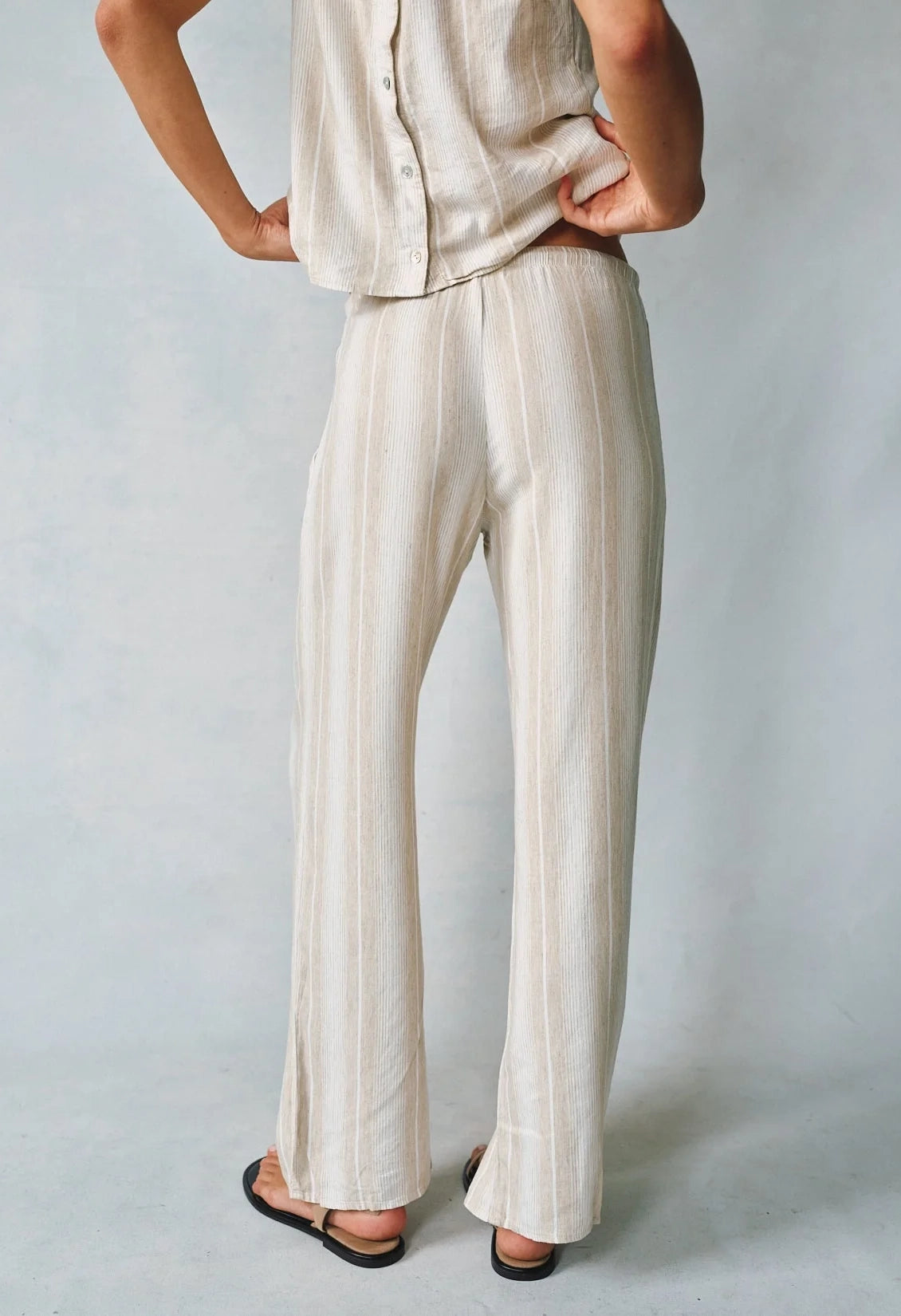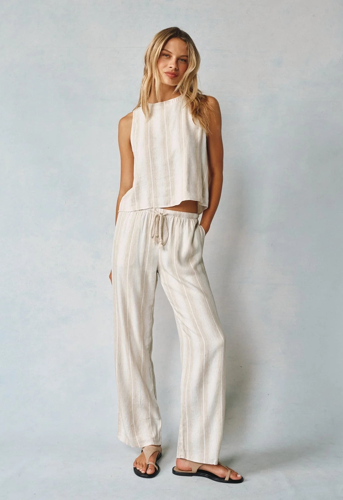 Introducing the Wide Leg Pant, perfect for sun-filled days and breezy evenings. This must-have piece is designed to keep you cool and stylish all summer long. With its drawcord, you can adjust the fit to your liking, making it a versatile addition to your wardrobe.