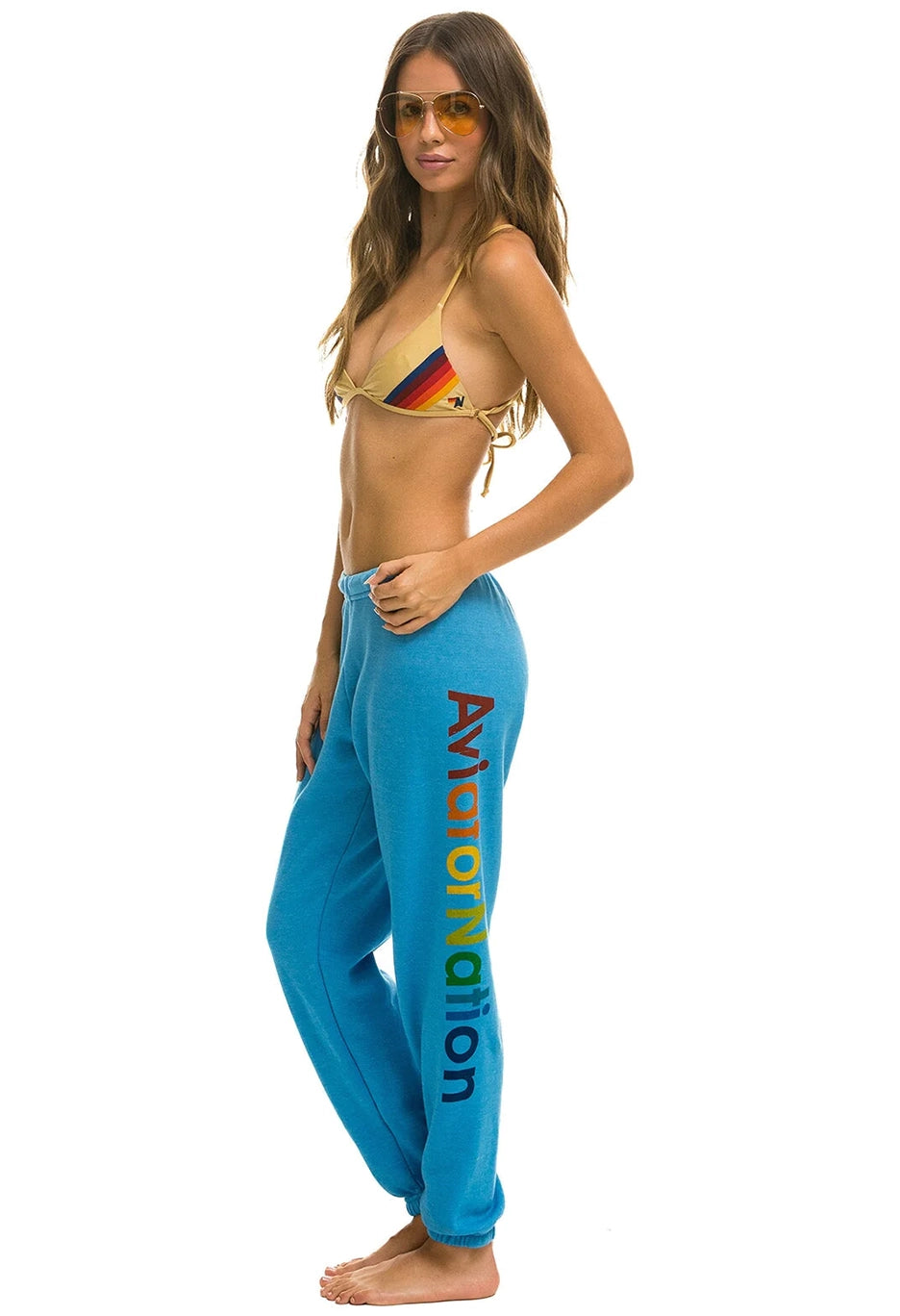 The most comfortable sweatpants you'll ever own. The single needle stitch work gives each garment a unique, one of a kind effect. All Aviator Nation products go through an intense breaking-down process that gives them a vintage feel you'll love because it's broken in from day one of wearing it. You're going to live in these sweats.