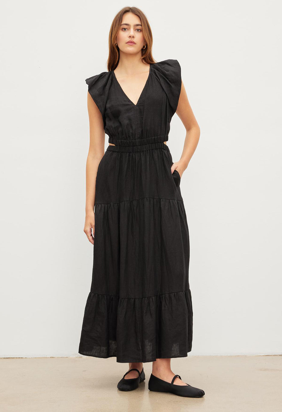 Enhance your summer wardrobe with the Ginger Woven Linen Tired Skirt Dress. Made of high-quality linen material, this dress offers both style and comfort. The unique tiered skirt design and side cutouts adds a touch of elegance and movement to your look. Perfect for any occasion, this dress is a must-have for the fashion-forward individual.